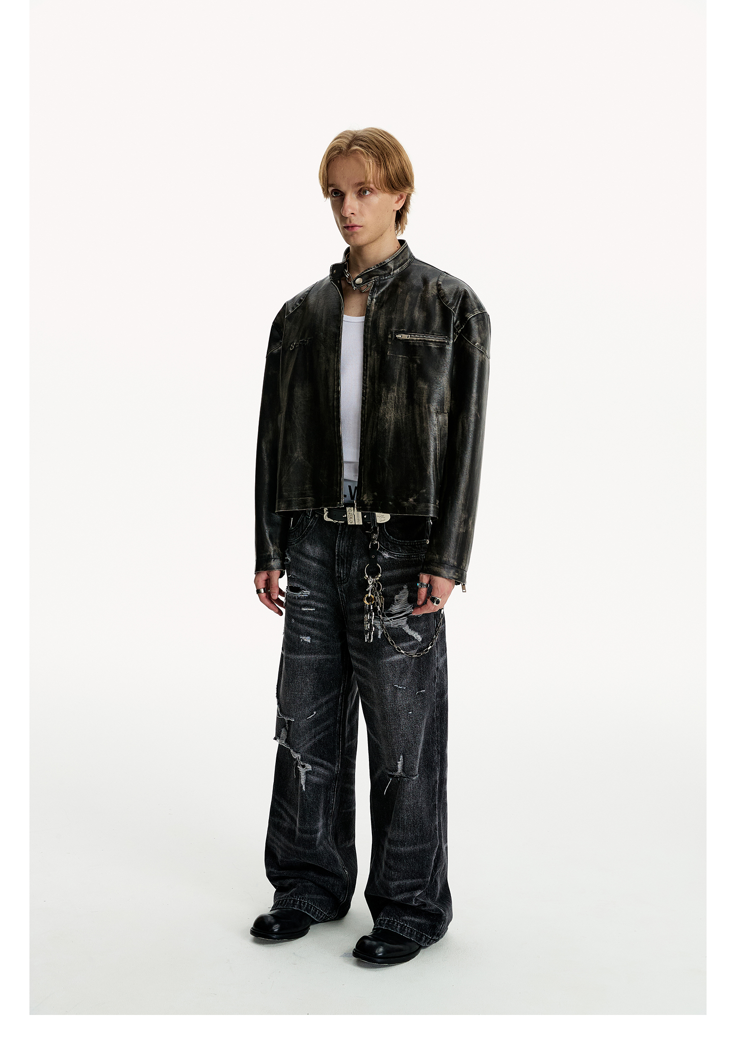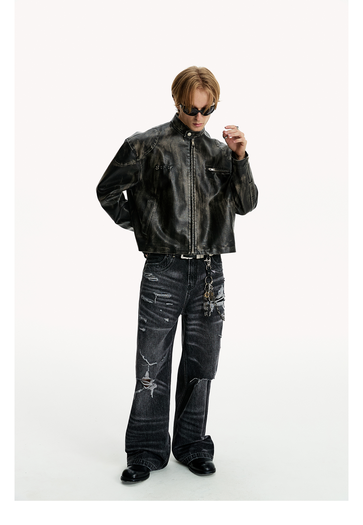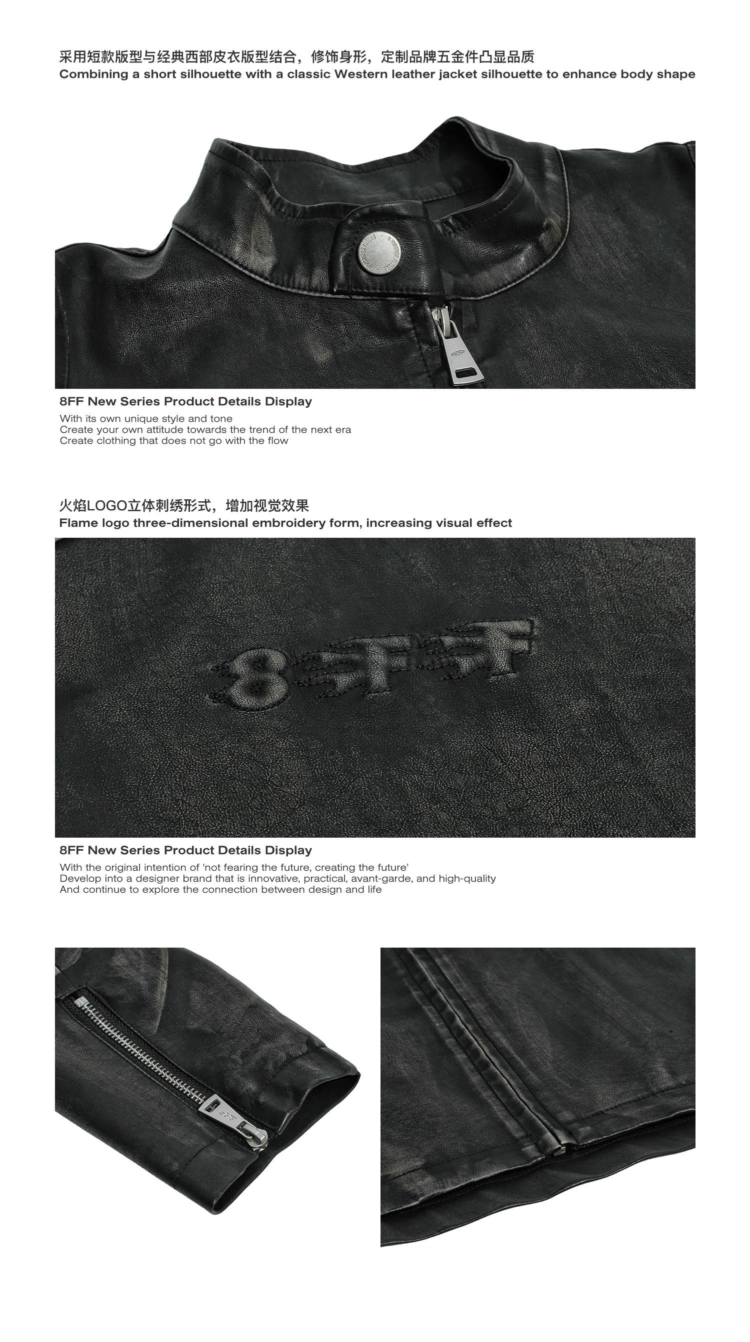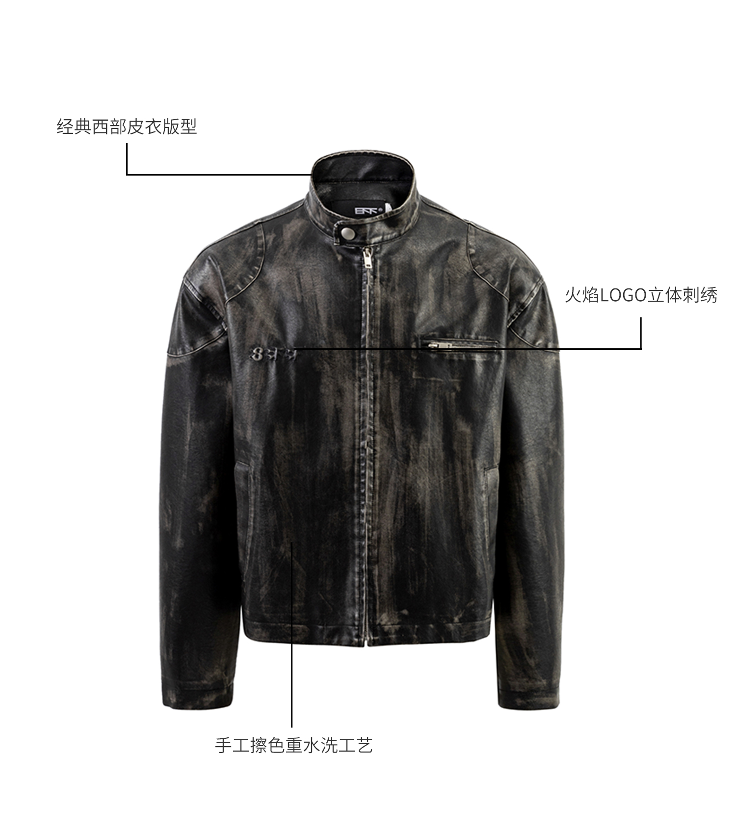 8Ff/25Ss Wang Xingyue Style American Retro Stand Collar Biker Jacket Loose Distressed Short Leather Jacket Trendy