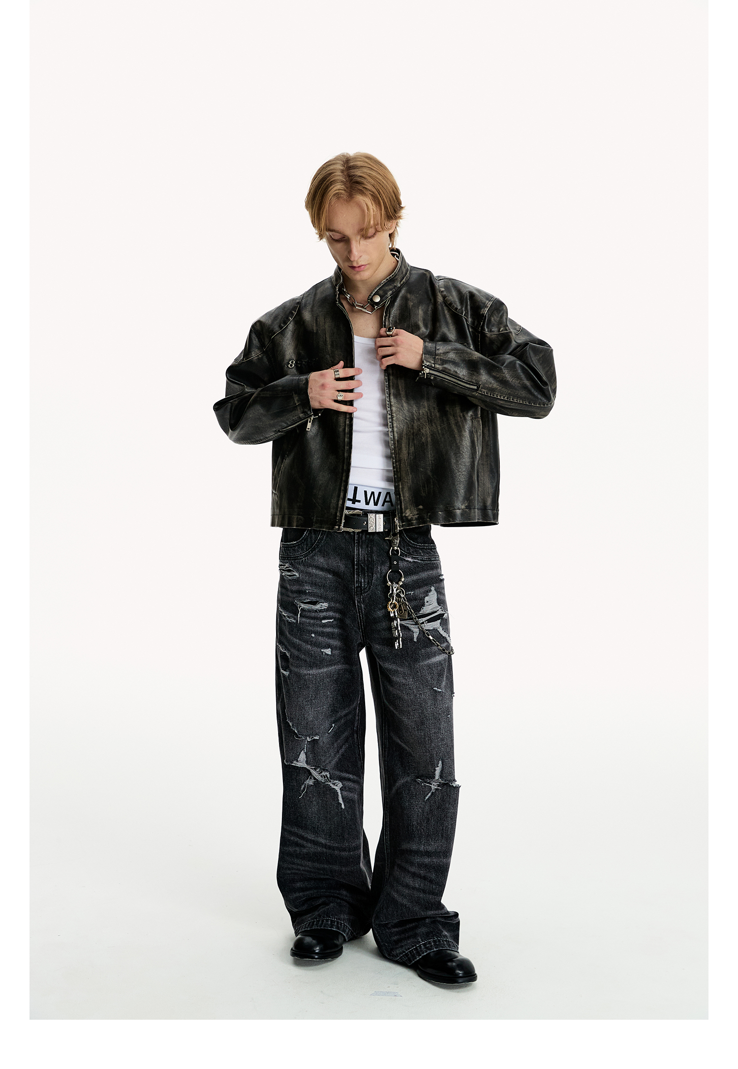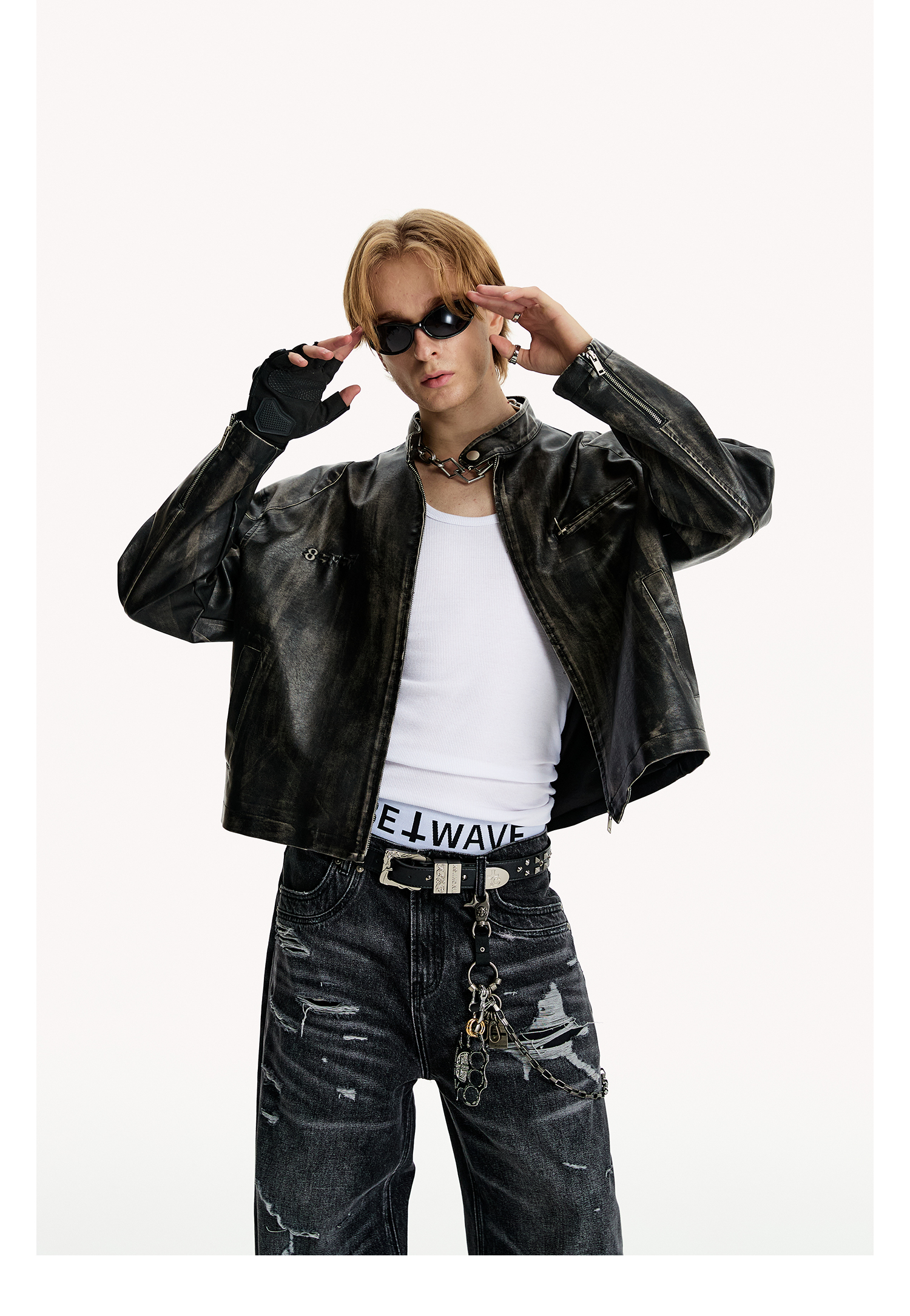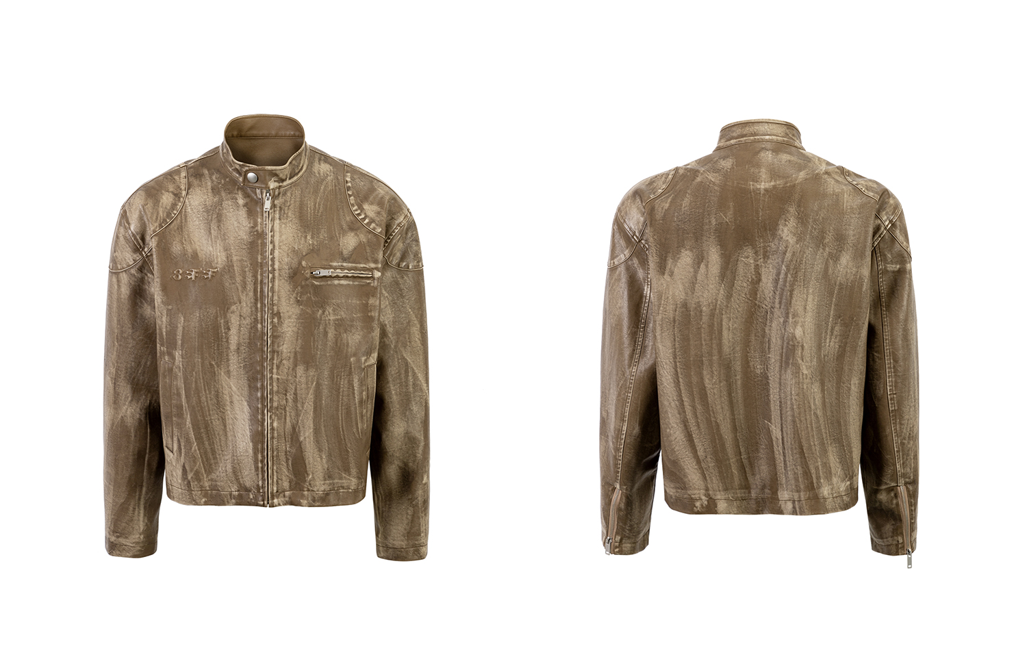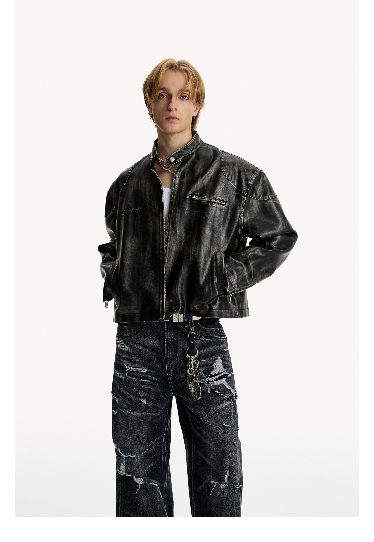 8Ff/25Ss Wang Xingyue Style American Retro Stand Collar Biker Jacket Loose Distressed Short Leather Jacket Trendy