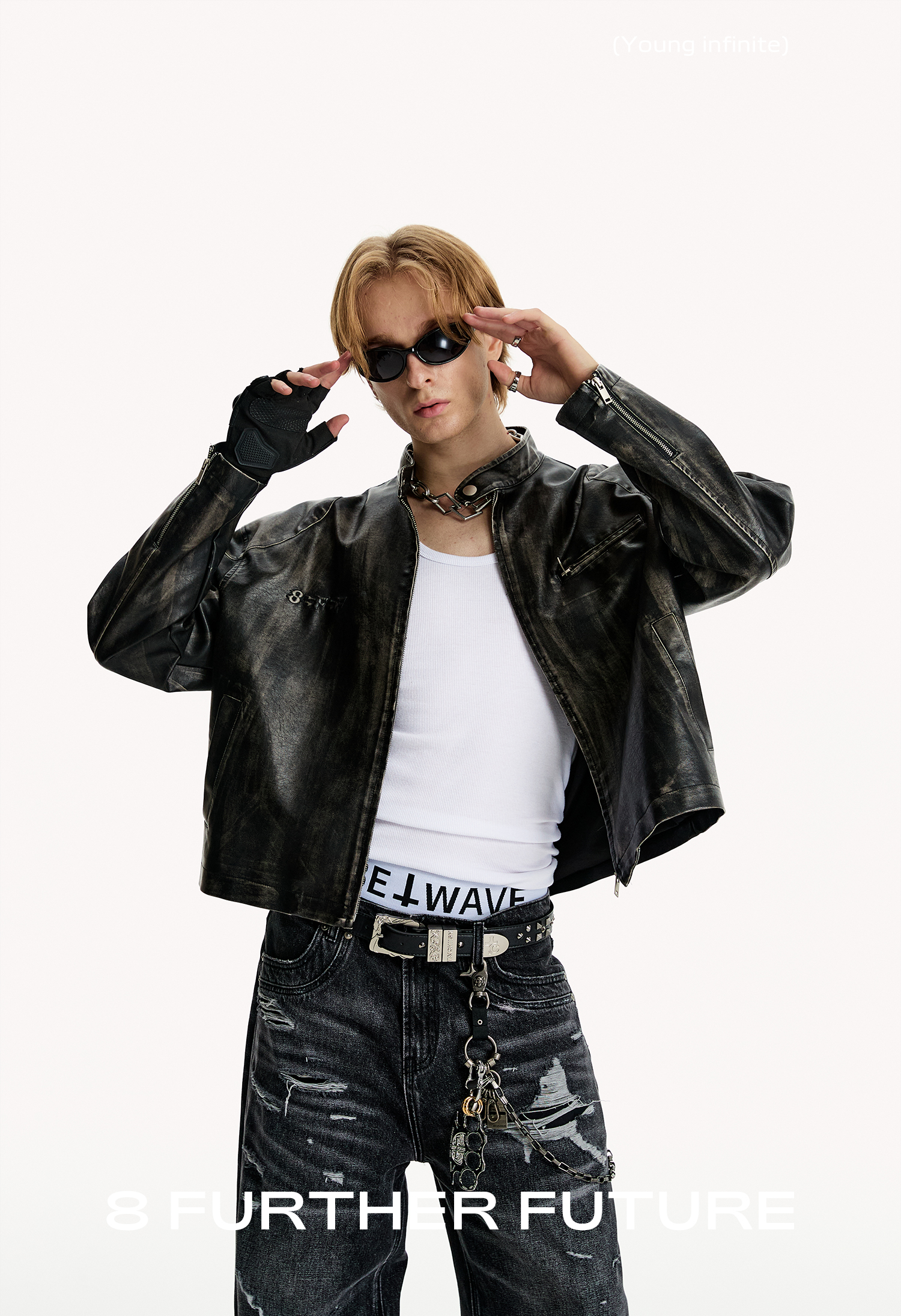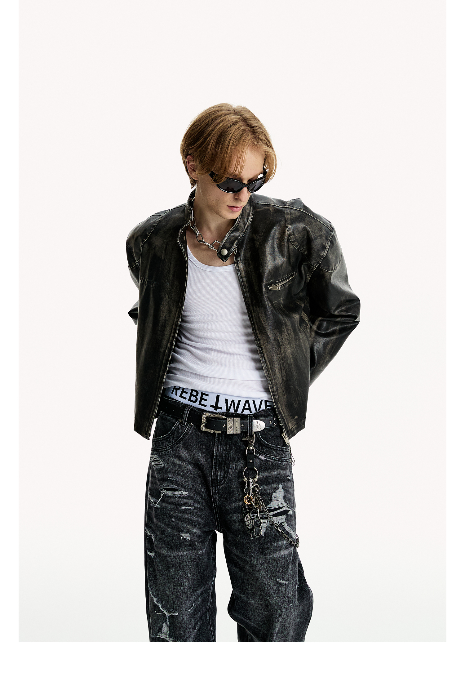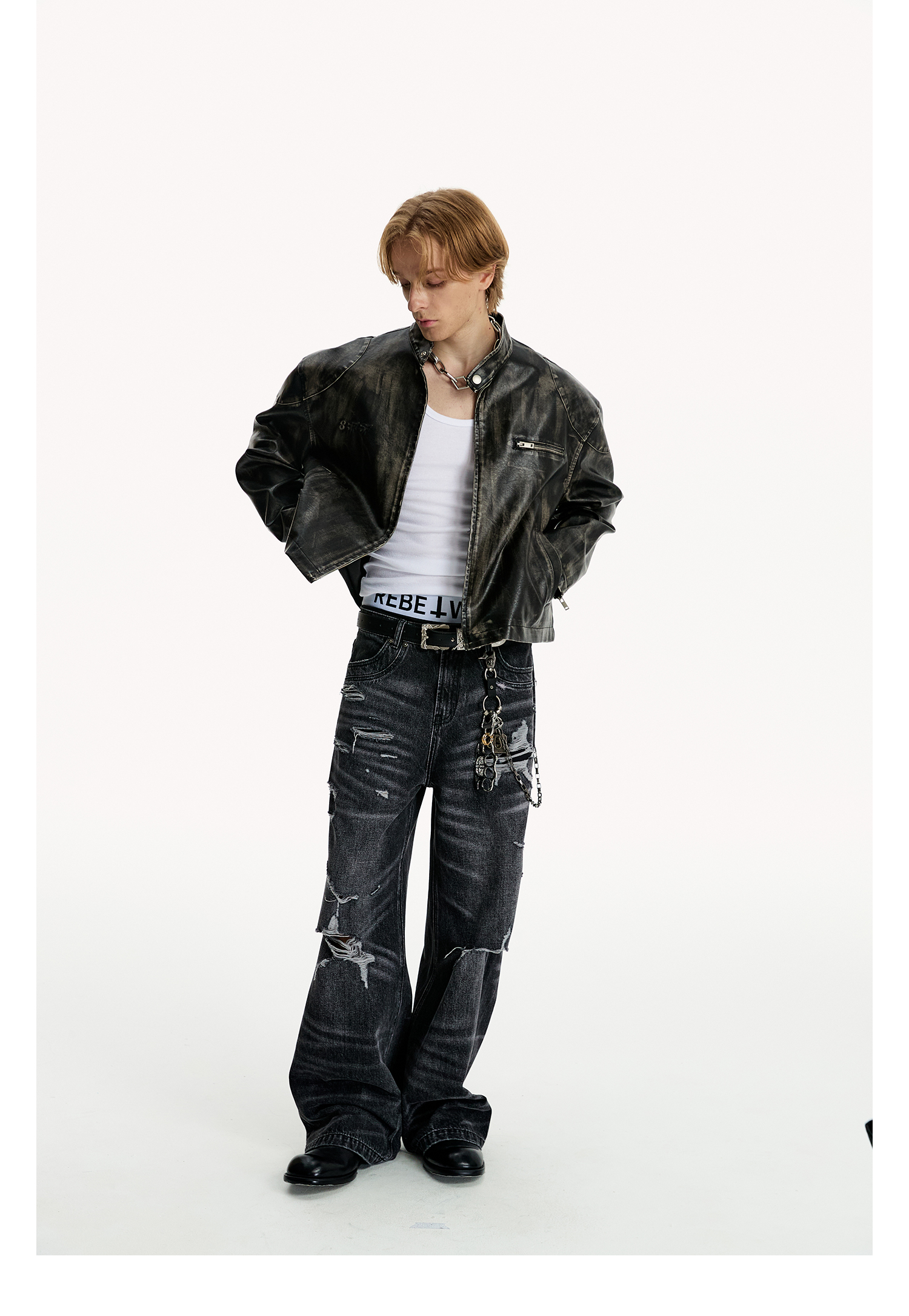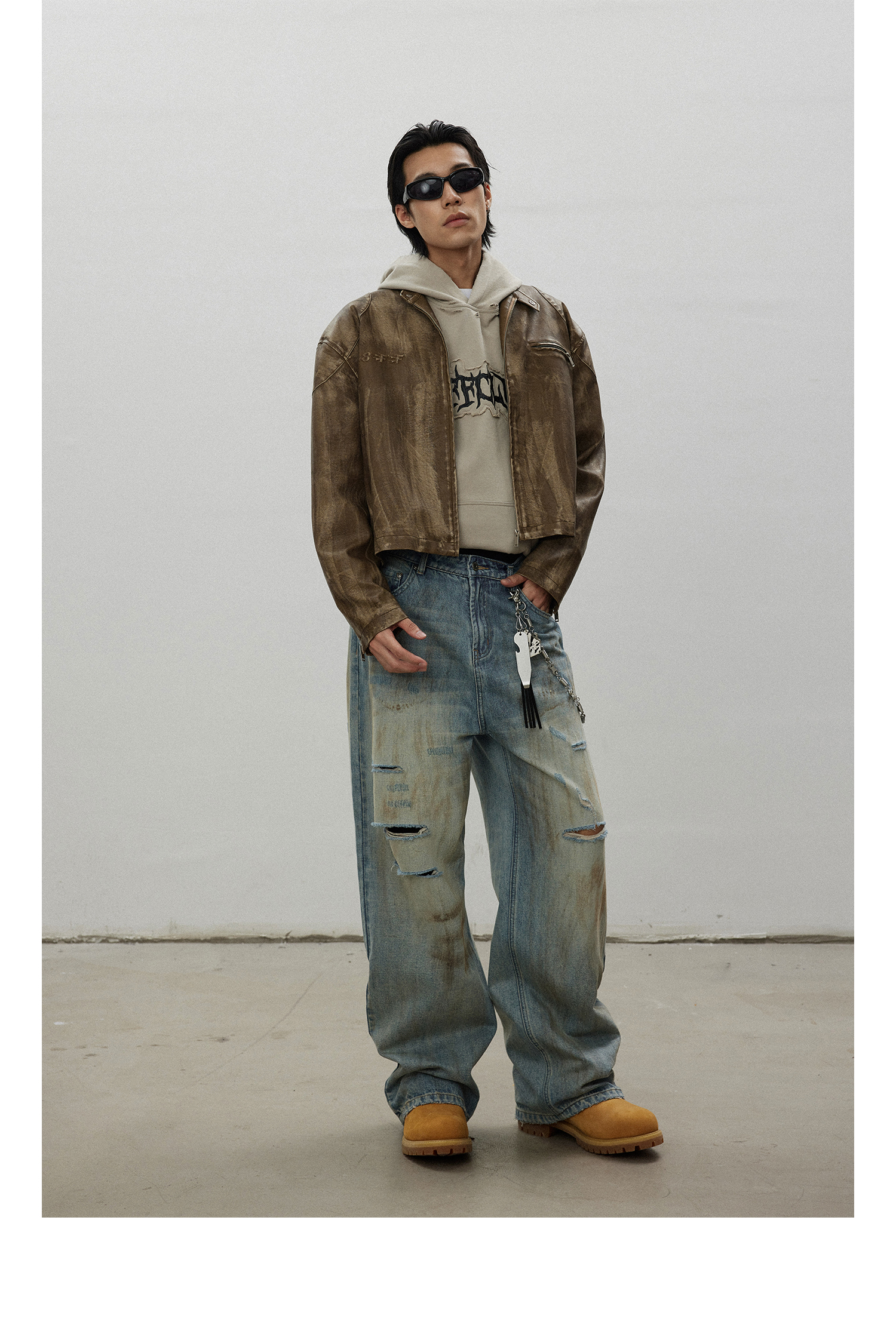 8Ff/25Ss Wang Xingyue Style American Retro Stand Collar Biker Jacket Loose Distressed Short Leather Jacket Trendy