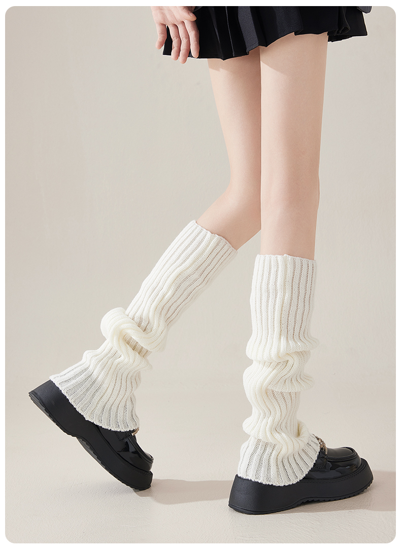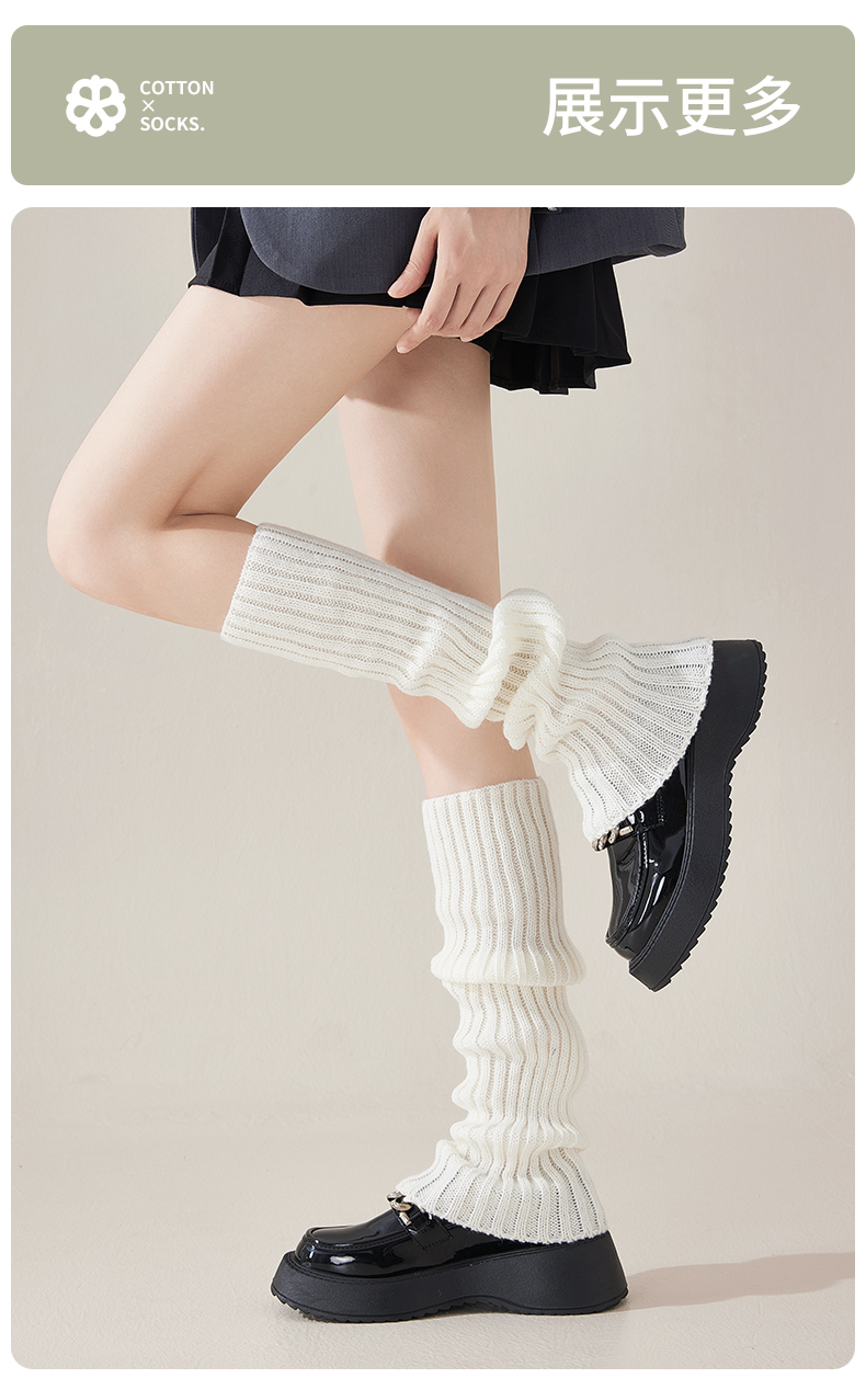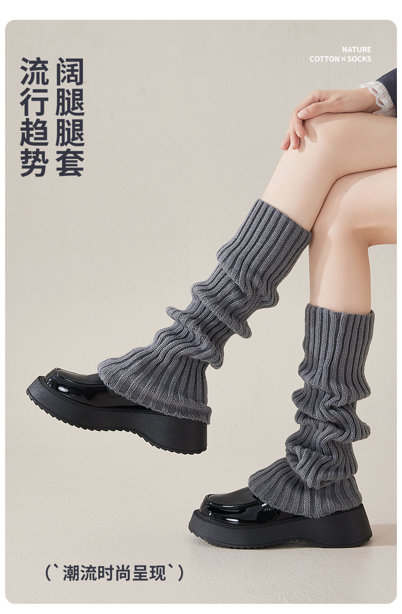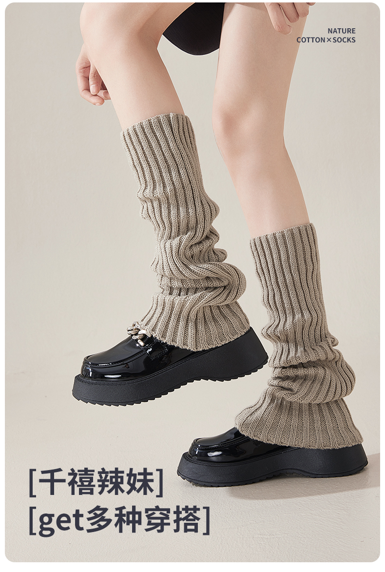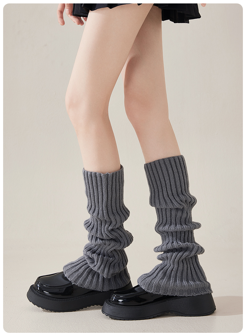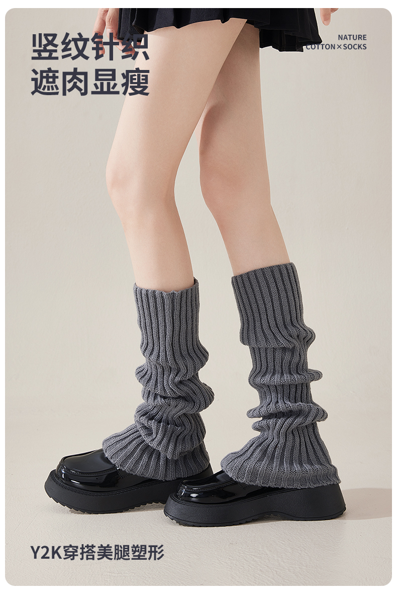 Grey Socks Women's Knitting Leg Socks Spring and Autumn Slim Looking Long Barrel Stacked Socks Fall and winter Shoes with Small Leather Shoes