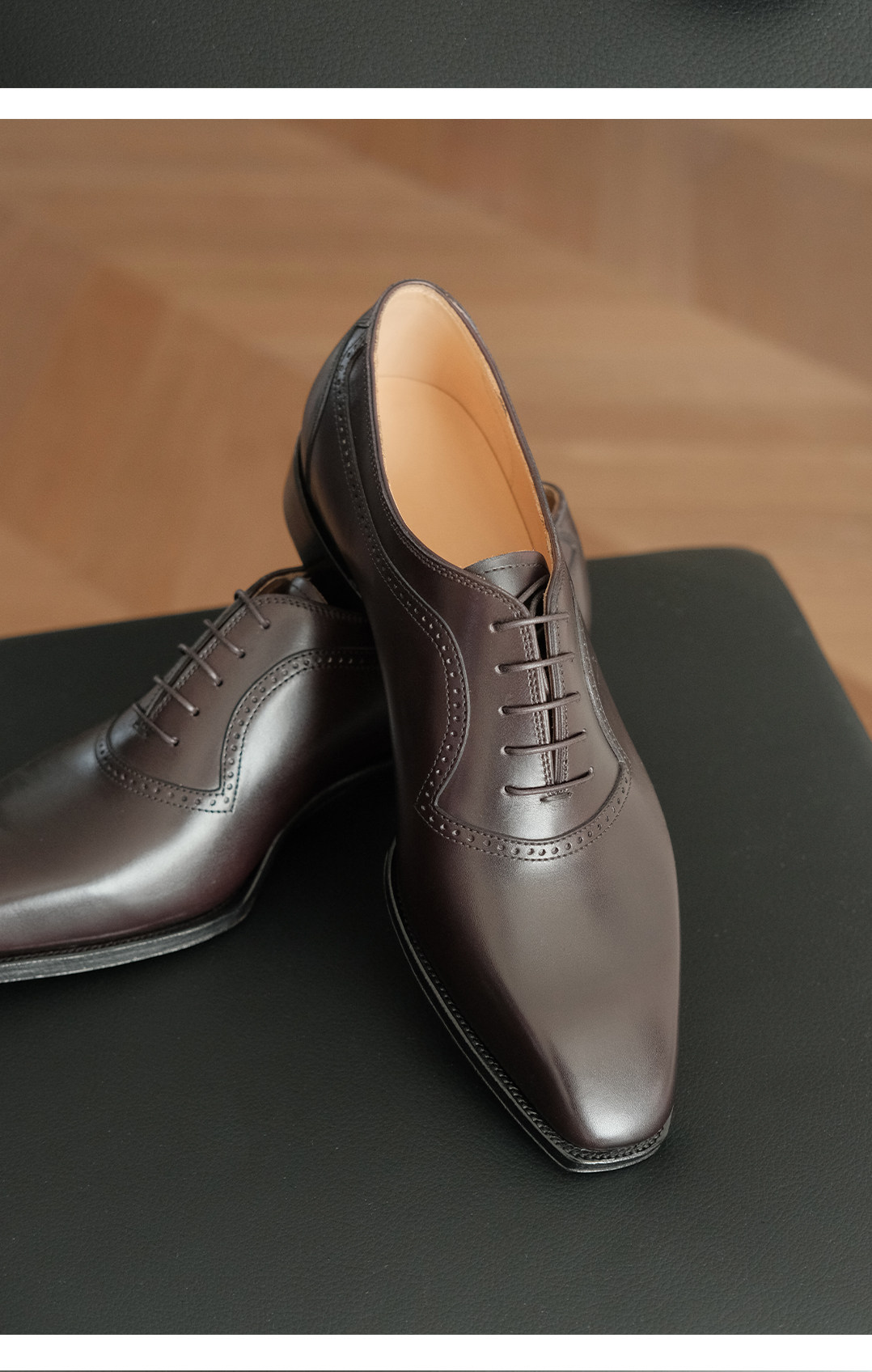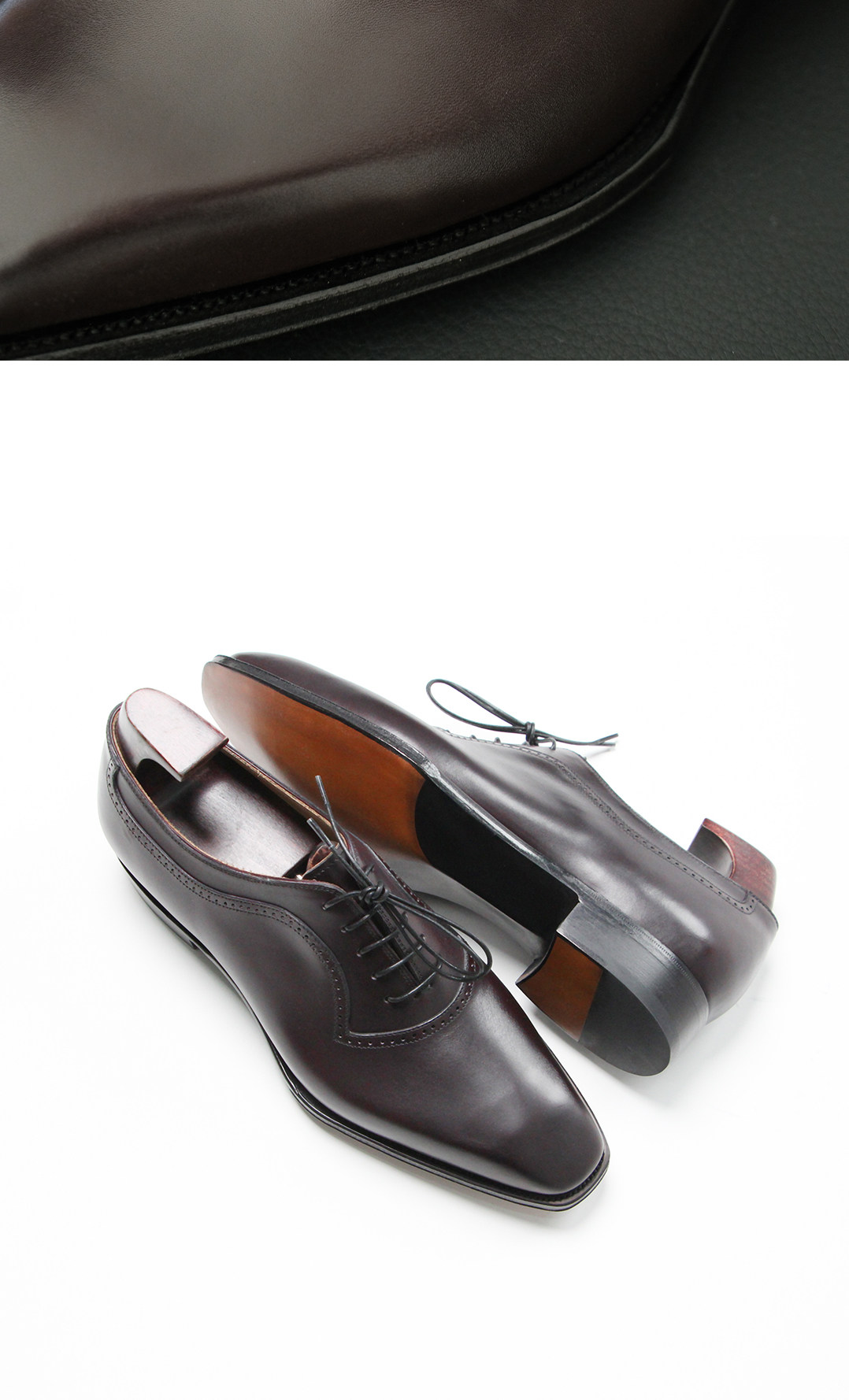 Yasheng Axen Handmade Goodyear Leather Shoes, Top Layer Zonta Burgundy Red, Hand-Stitched Edge, Piano Sole Oxford Shoes