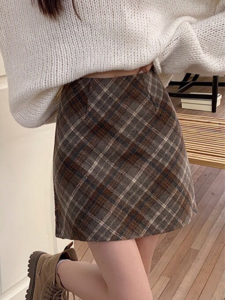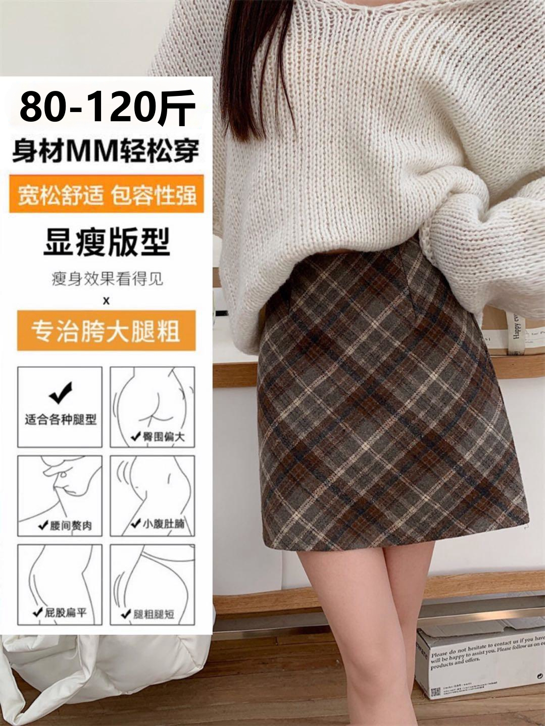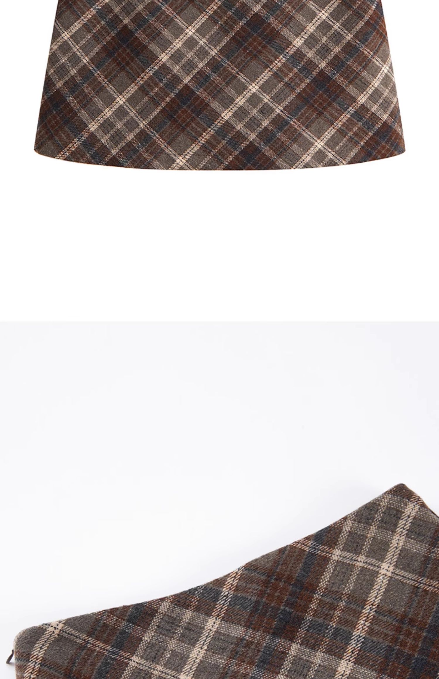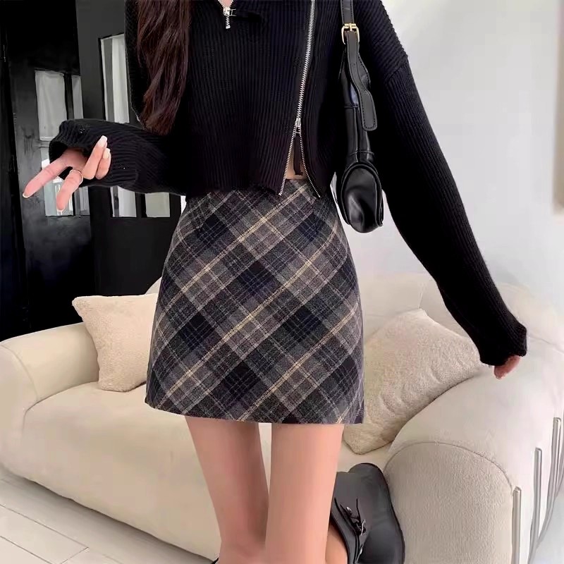 Woolen Plaid Skirt for Women 2025 Autumn and Winter New Retro High-Waisted Slimming A-Line Skirt Hip-Hugging Skirt Plaid Short Skirt