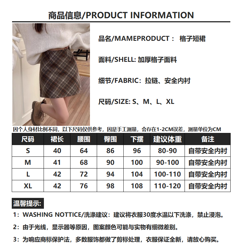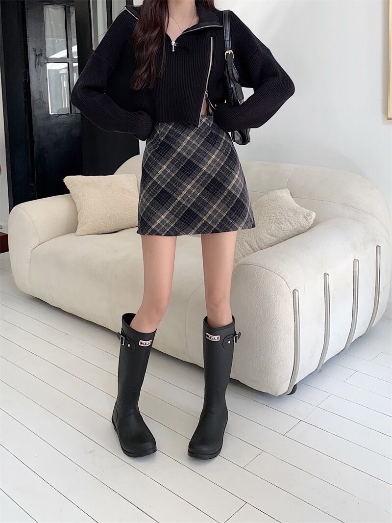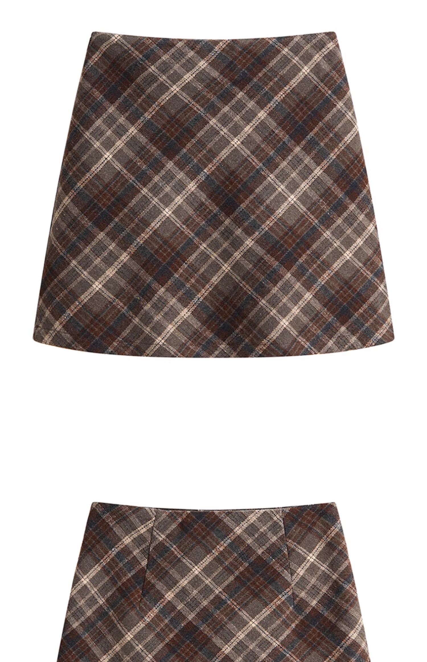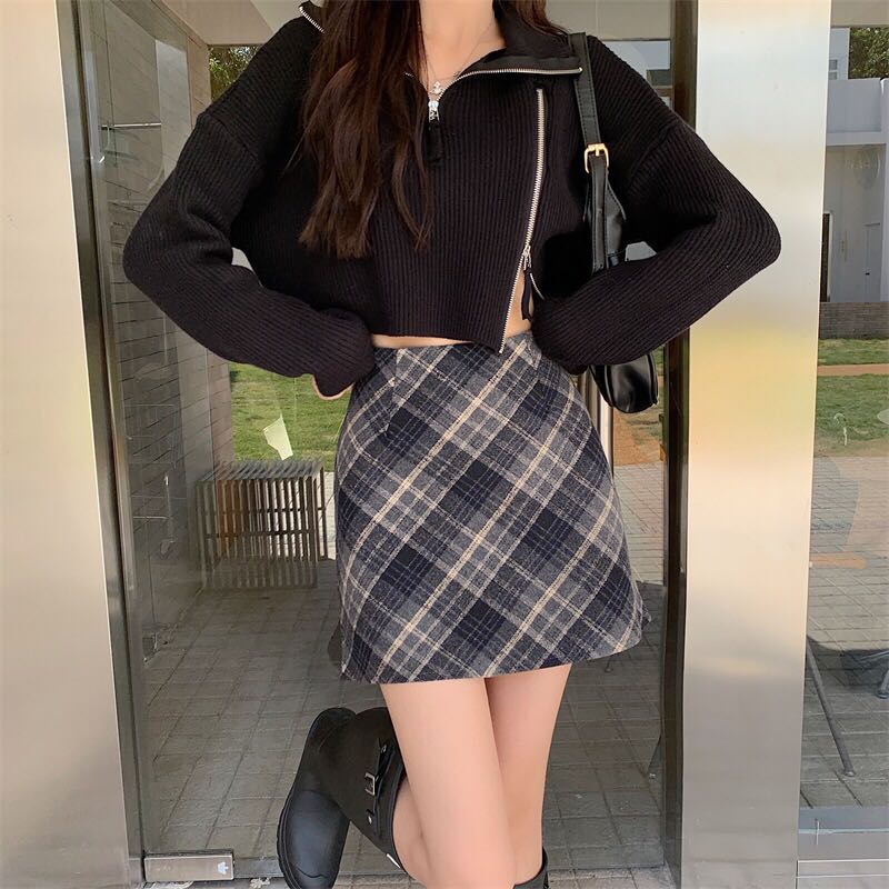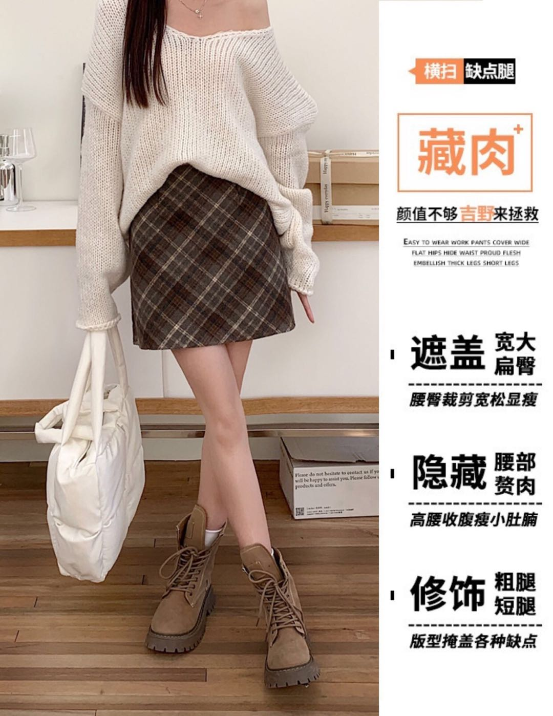 Woolen Plaid Skirt for Women 2025 Autumn and Winter New Retro High-Waisted Slimming A-Line Skirt Hip-Hugging Skirt Plaid Short Skirt