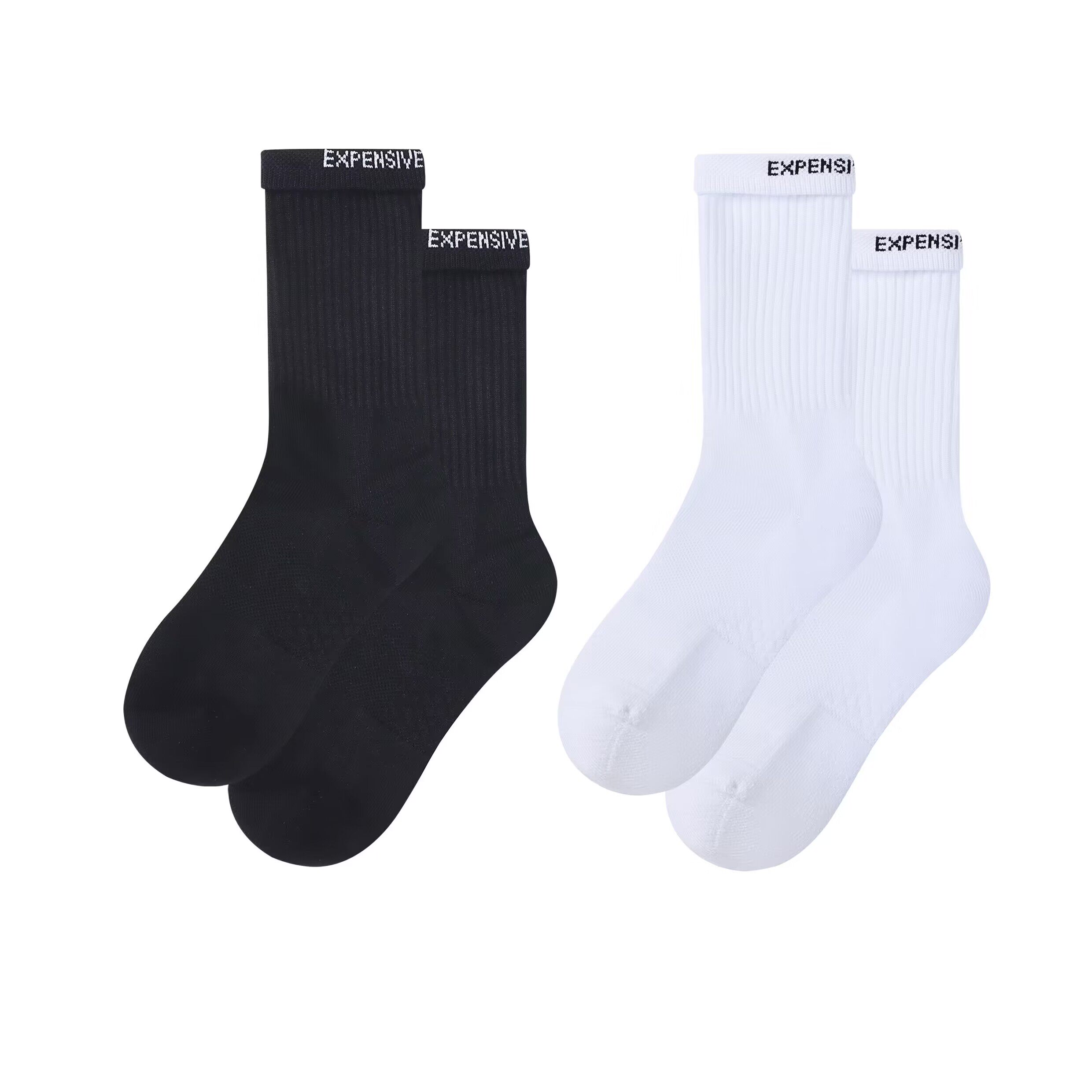 [Domestic Stock] Chaozuo Expensive Taste Et Basic Solid Color Mid-Calf Socks, Two Pairs/Set