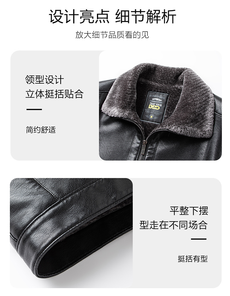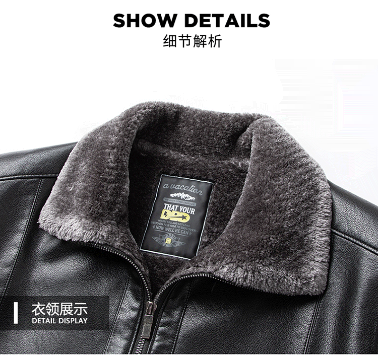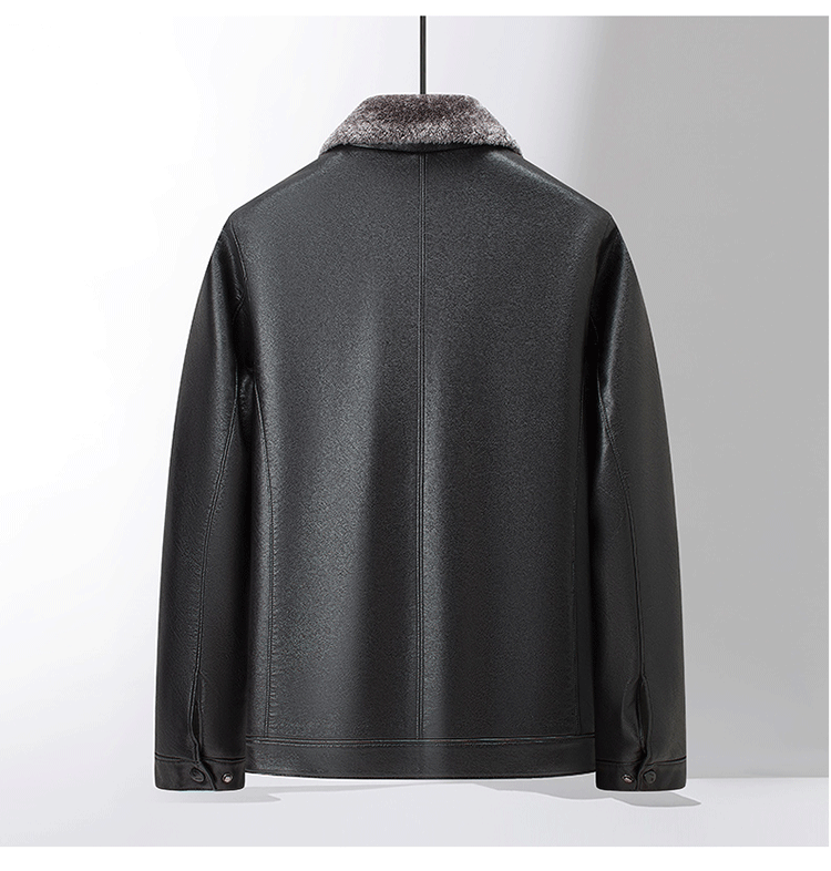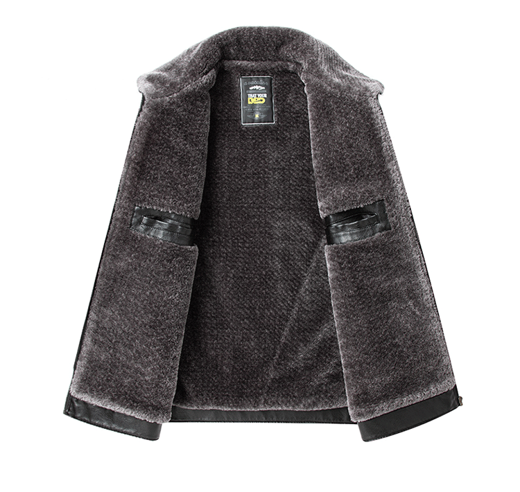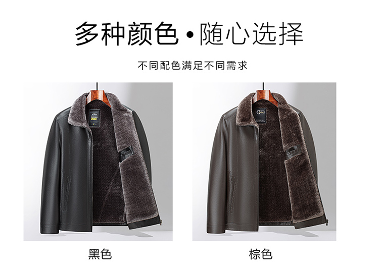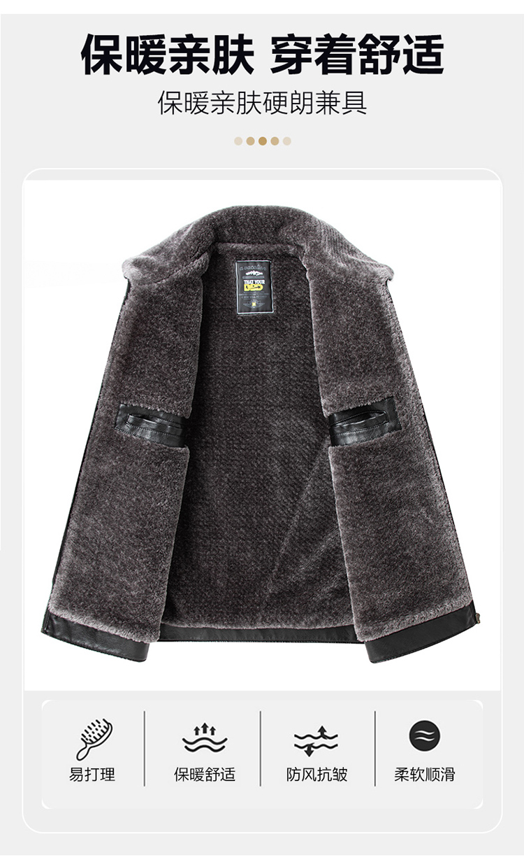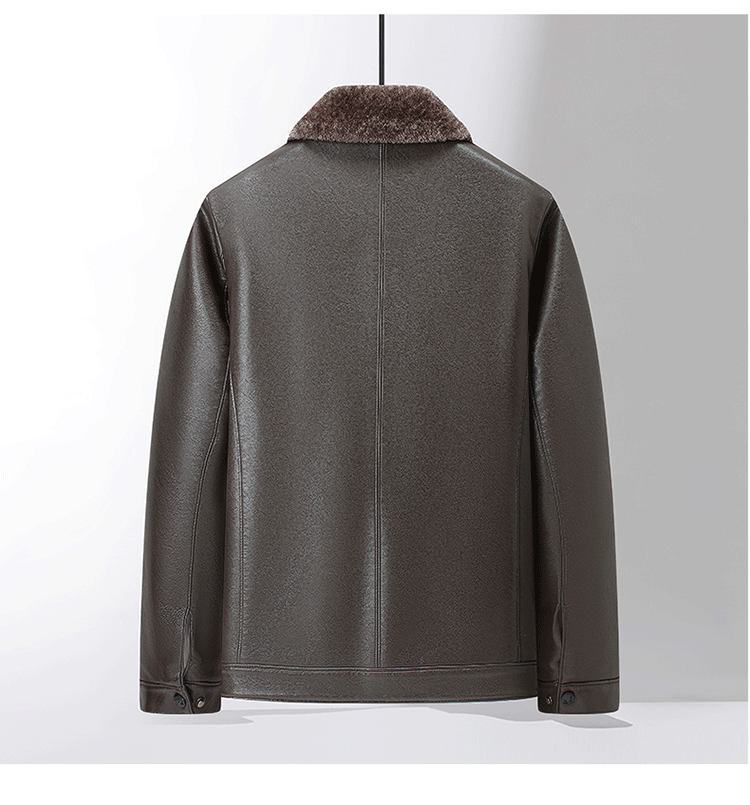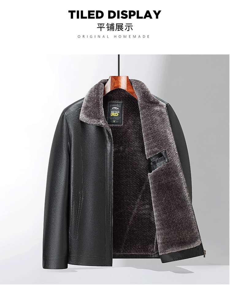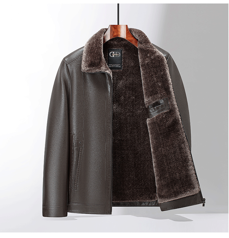 Hengyuanxiang Men's Genuine Sheepskin Leather Jacket, Warm New Style for Middle-Aged and Elderly, Fleece-Lined and Thickened Leather Jacket