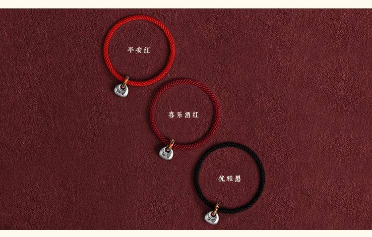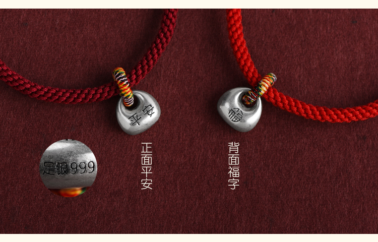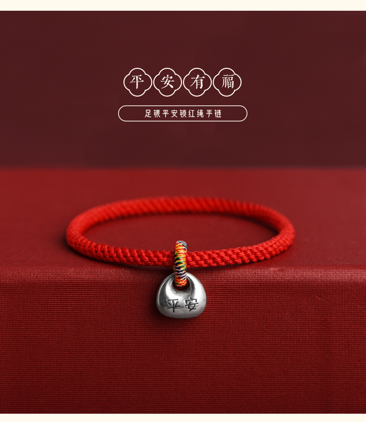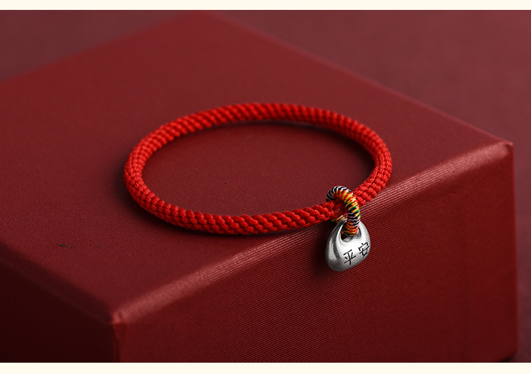 Solid 999 Pure Silver Peace Lock Red String Bracelet for Men and Women, Hand-Woven Corn Knot Bracelet for Good Luck in the Year of Birth