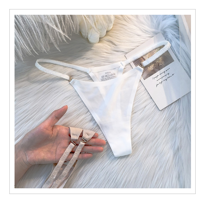 Thin Strap Seamless Ice Silk Panties for Women with Cotton Crotch 2024 New Sexy Hot Pure Desire Triangle Briefs Mid-Low Waist Plus Size