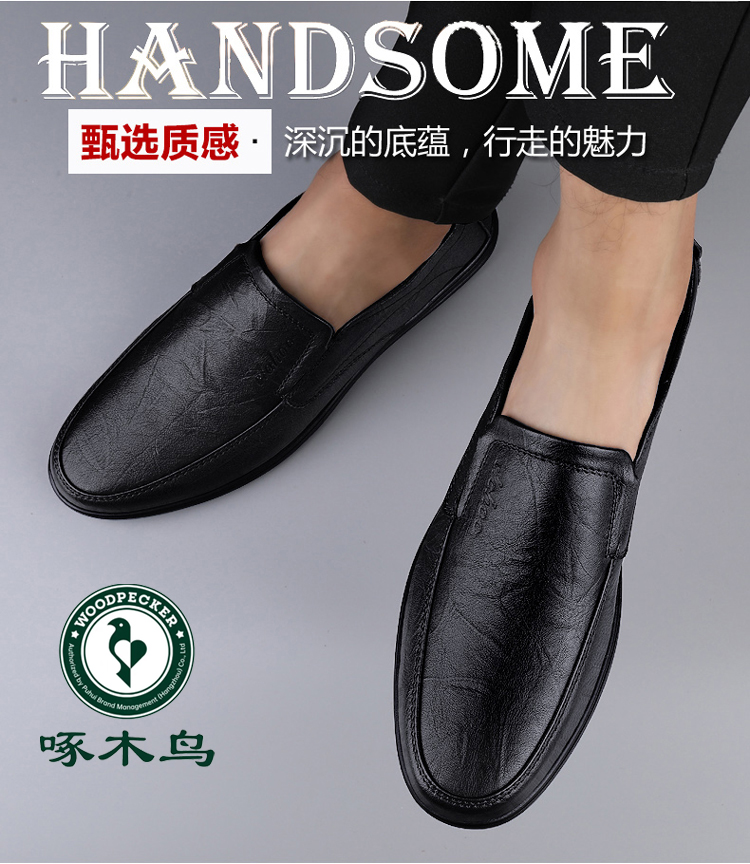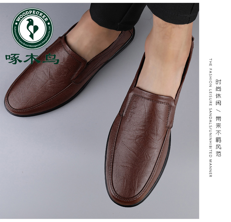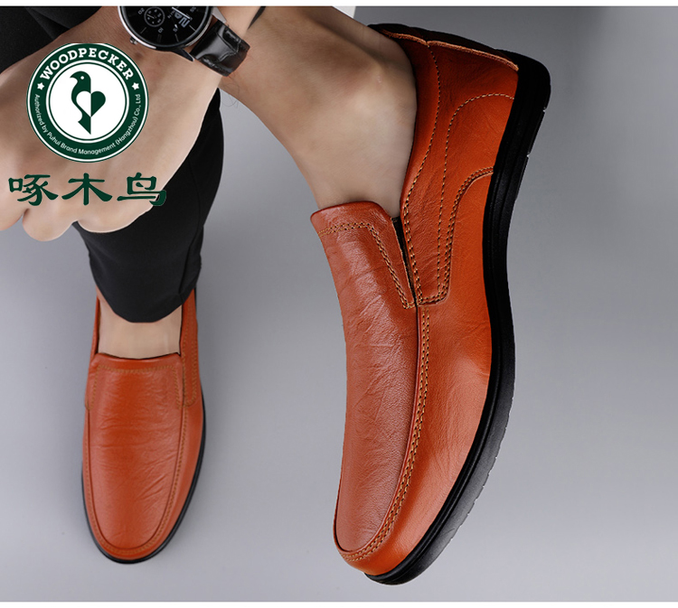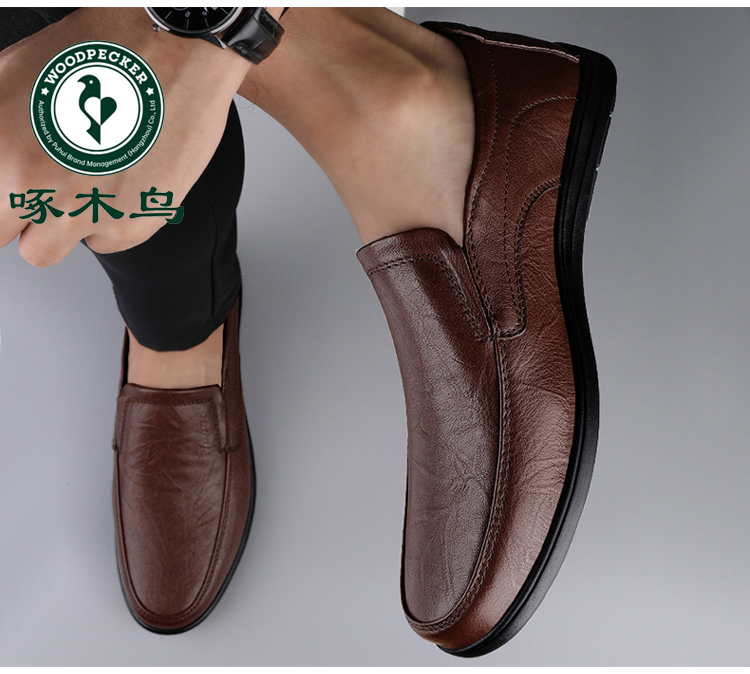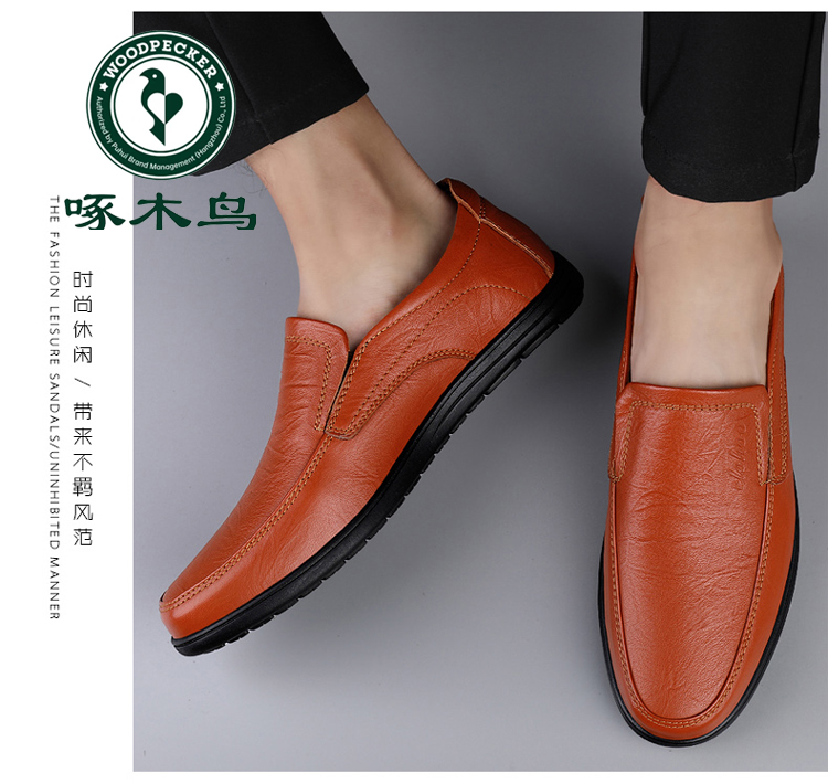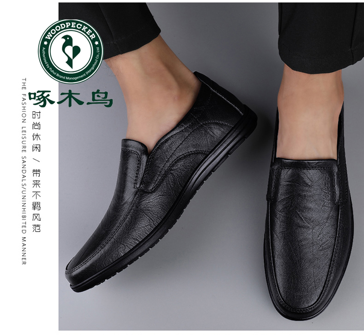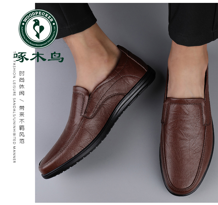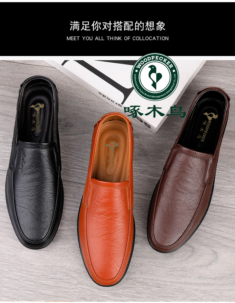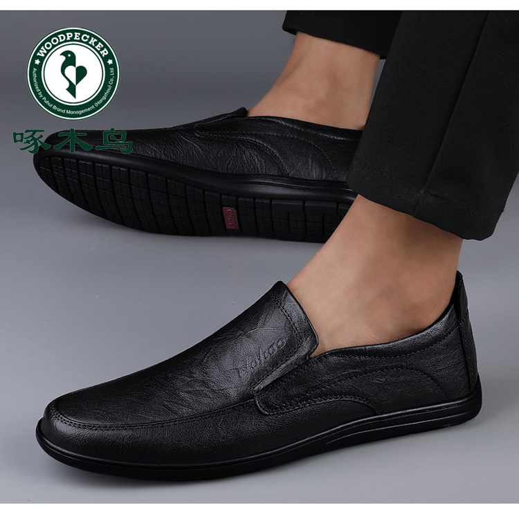 Woodpecker Genuine Men's Casual Leather Shoes with Plush Lining, Slip-On Soft Sole, Soft Leather Driving Loafers for Men