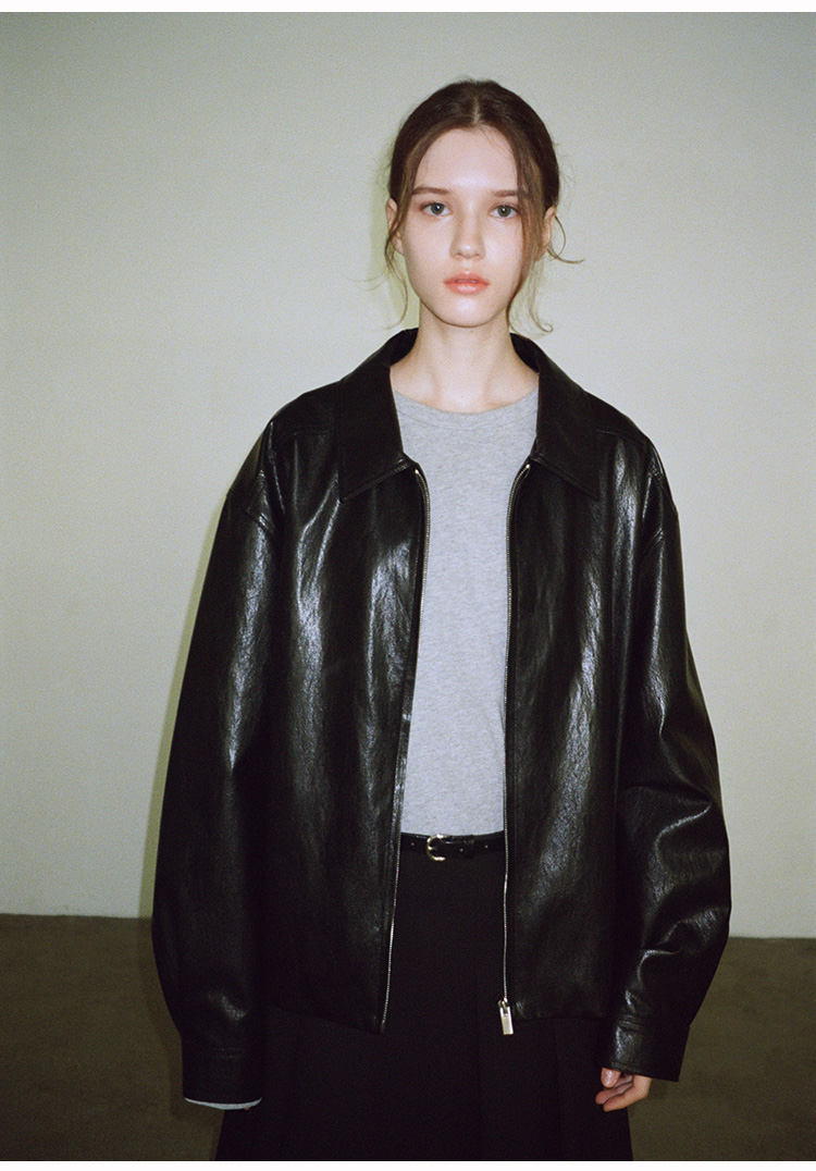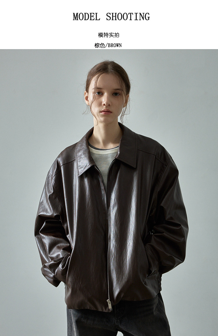 Facade Pattern Leather Jacket for Women 2025 Autumn and Winter Nothing Written Petite Jacket