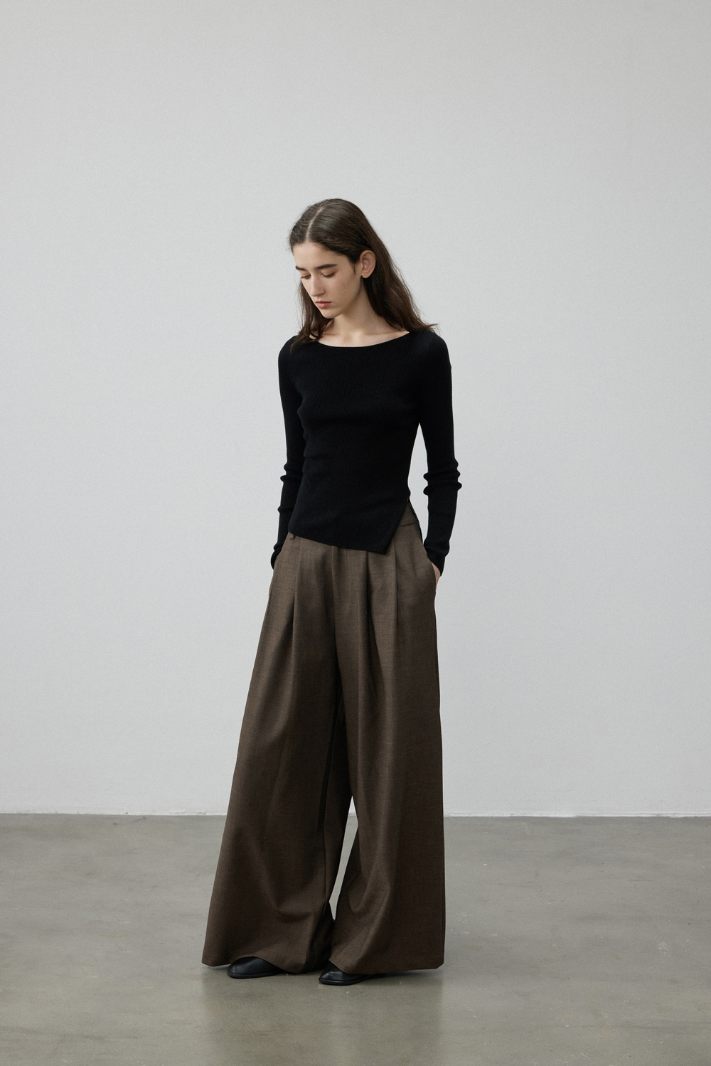 Sonders Workplace Ultra-Relaxing High-Waisted Pleated Textured Wide-Leg Drape Casual Commuter Suit Pants
