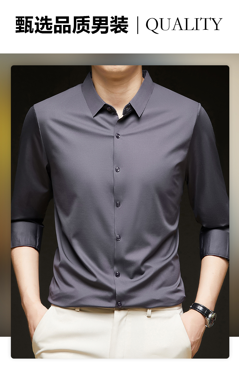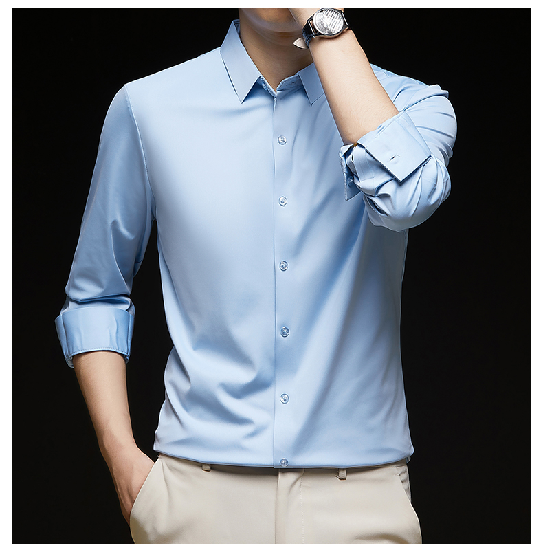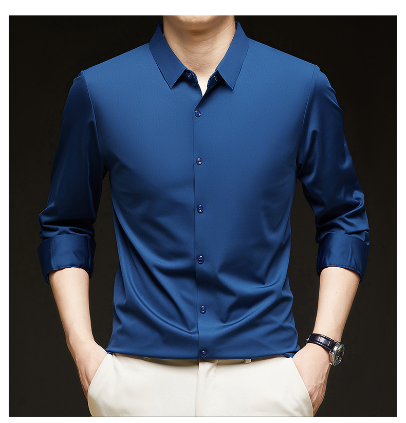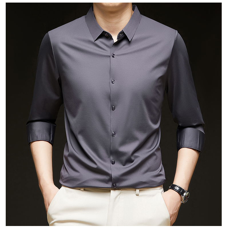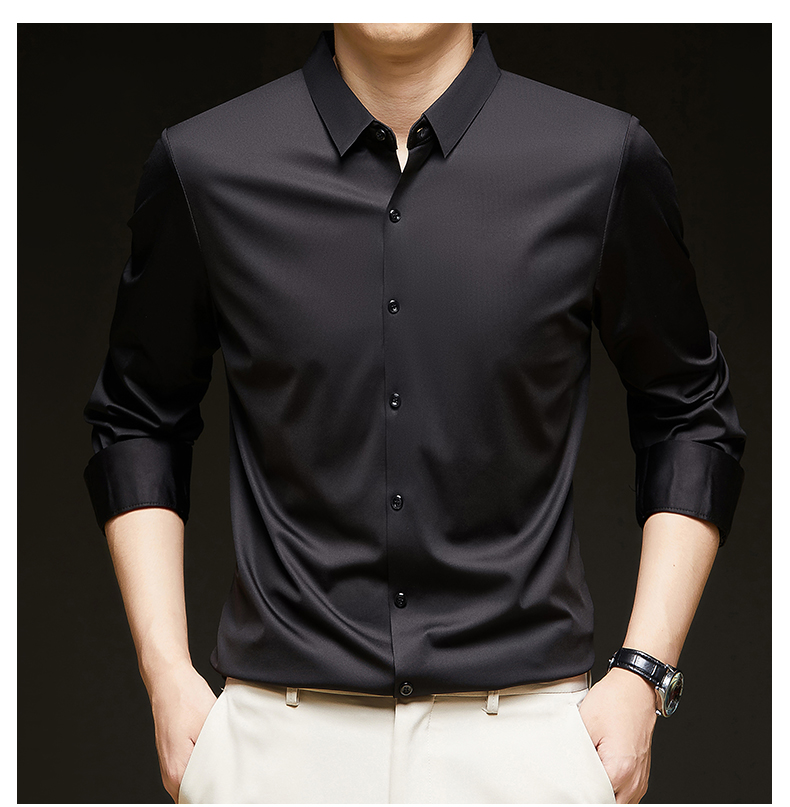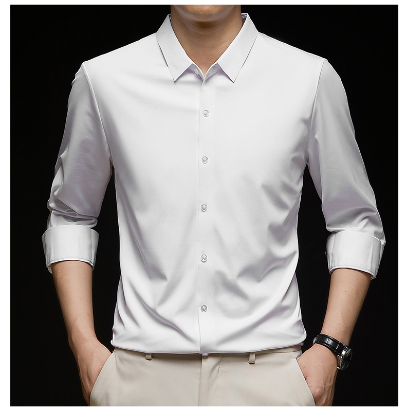 Woodpecker Brand Men's Long-Sleeve Silk Shirt, Wrinkle-Free, Business Casual, High-End Silk Suit, Sophisticated Inner Wear for Autumn