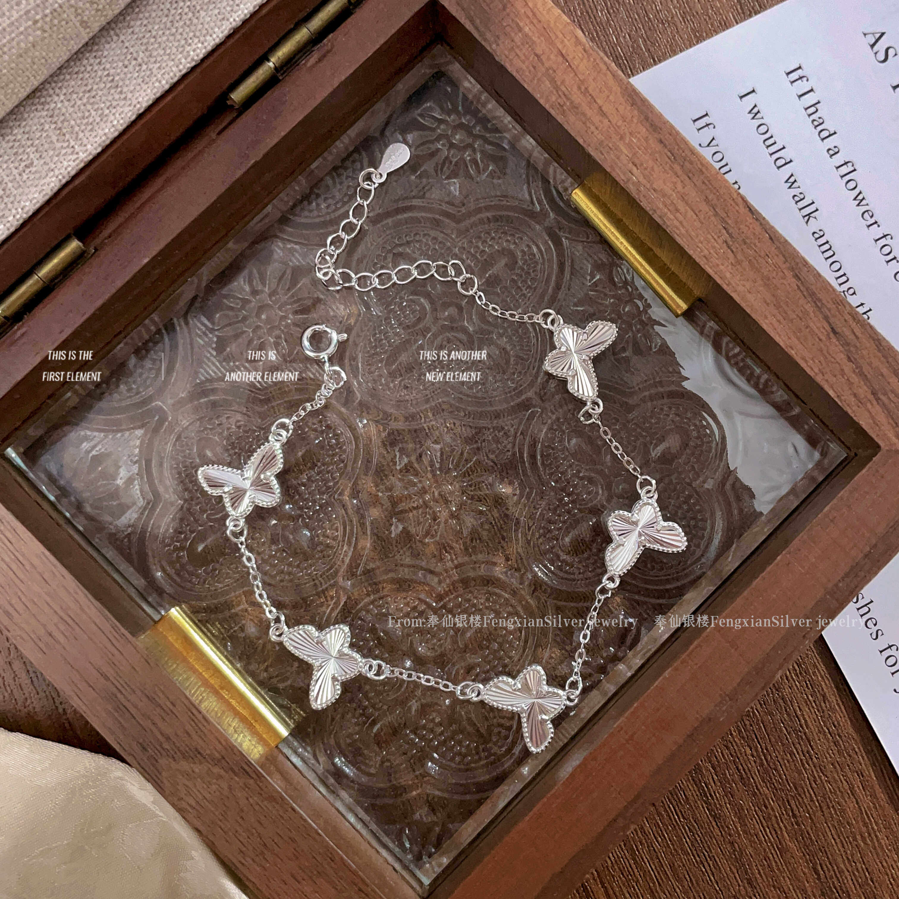 Butterfly Sterling Silver Bracelet for Women, 990 Pure Silver, Fashionable Niche Design, High-End Silver Bracelet, Birthday Gift for Girlfriend
