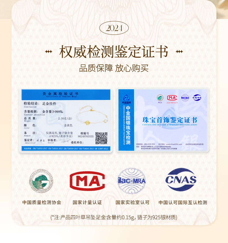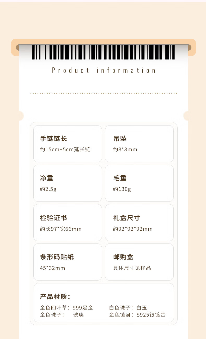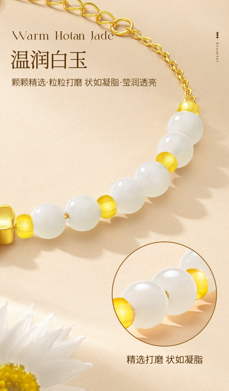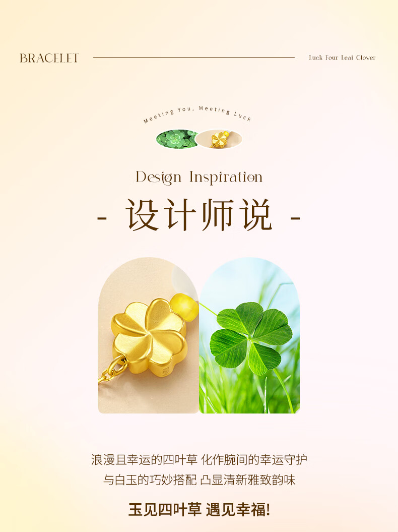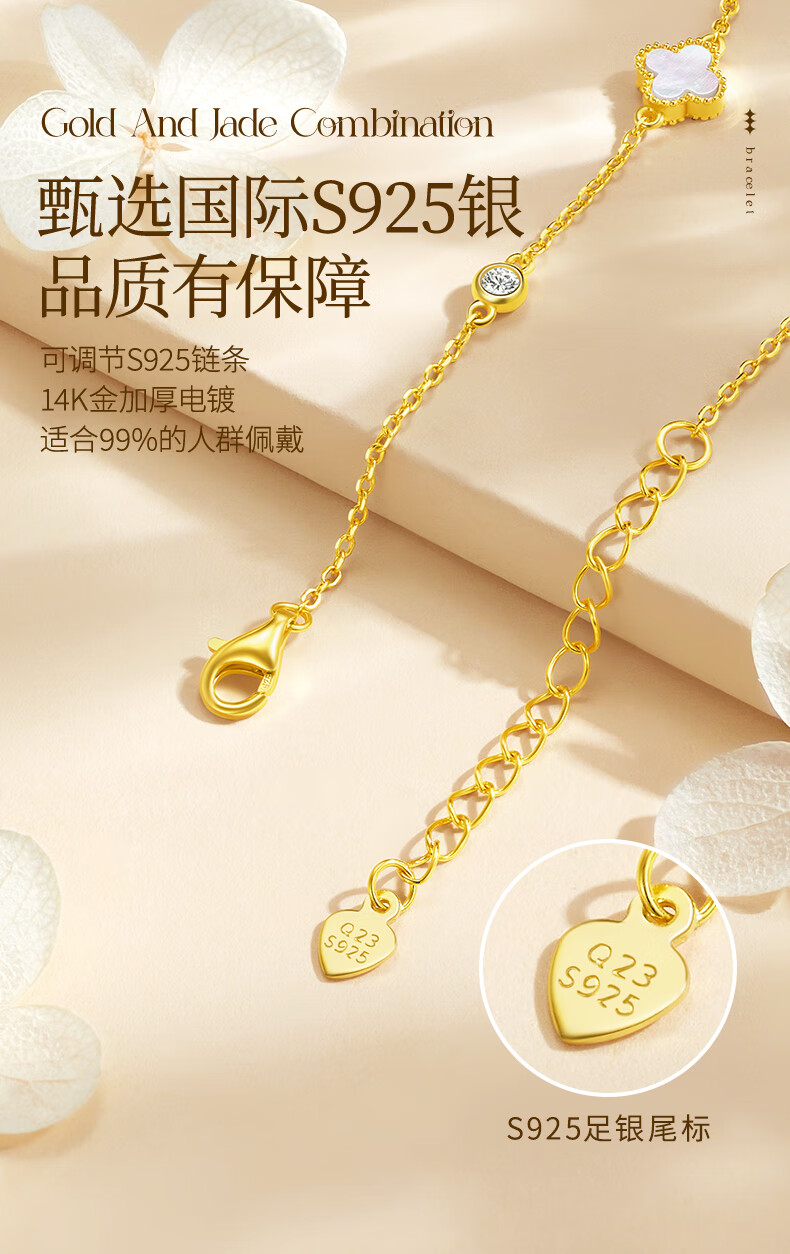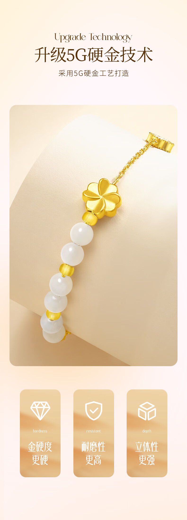 999 Pure Gold Four-Leaf Clover Gold Bracelet, Birthday Gift for Girls, Chinese Valentine's Day Gift for Girlfriend or Wife