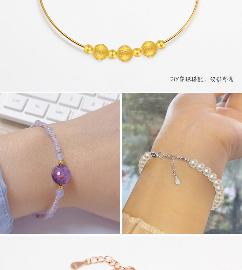 Can Be Used with Small Hole Beads, Sterling Silver Thin Bracelet, DIY Semi-Finished Bracelet, String of Gold and Silver Beads, Pearl and Jade Beads