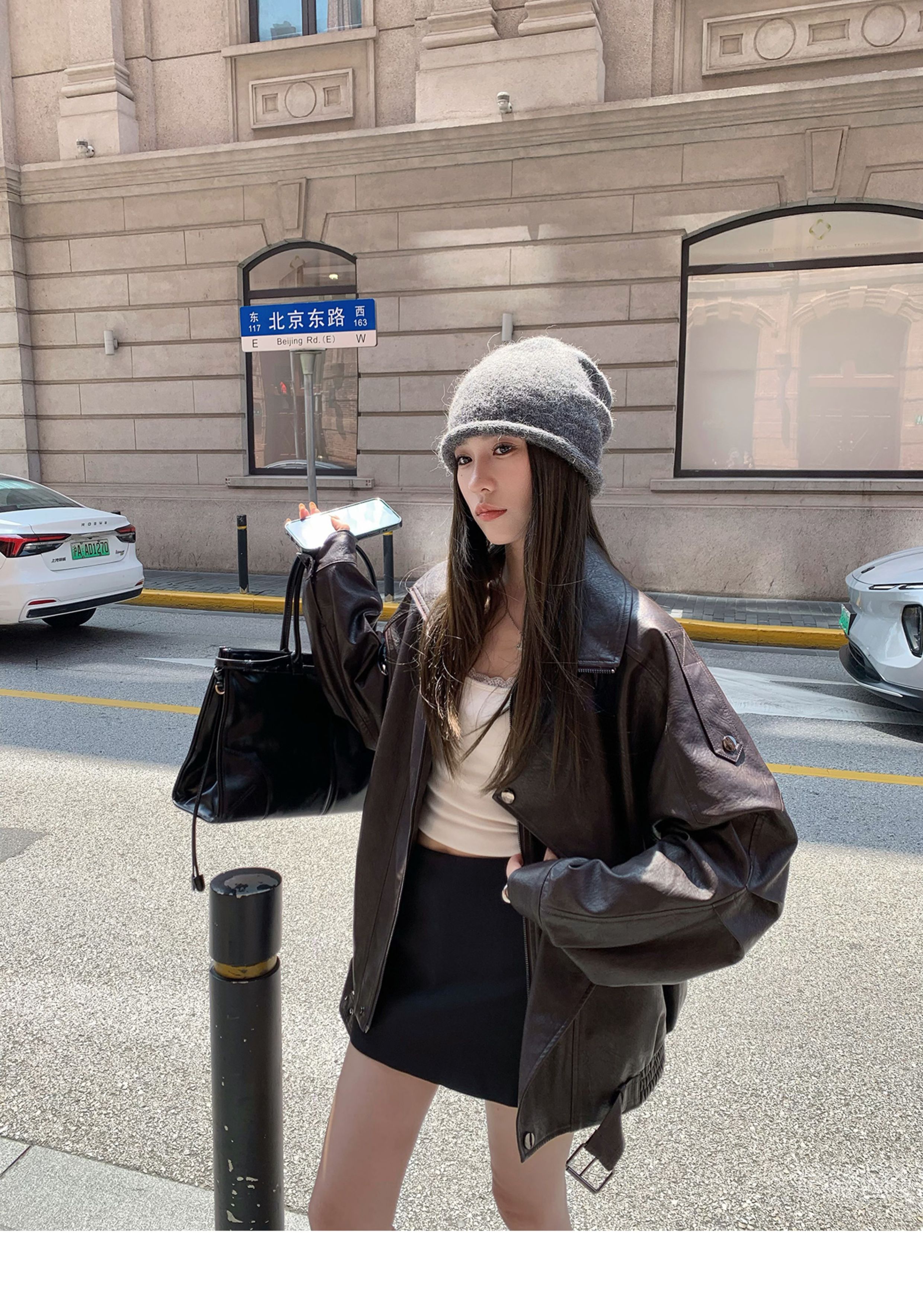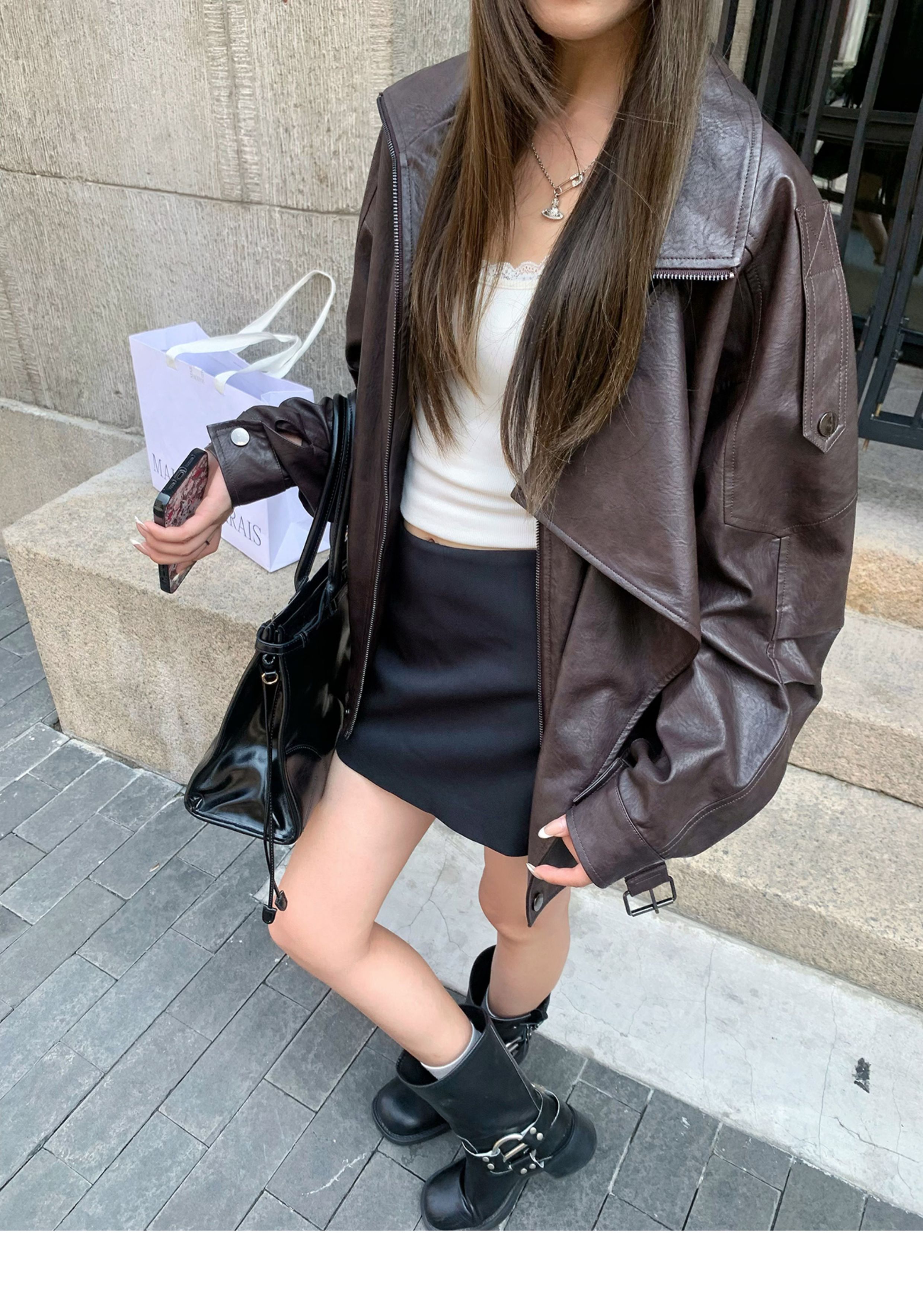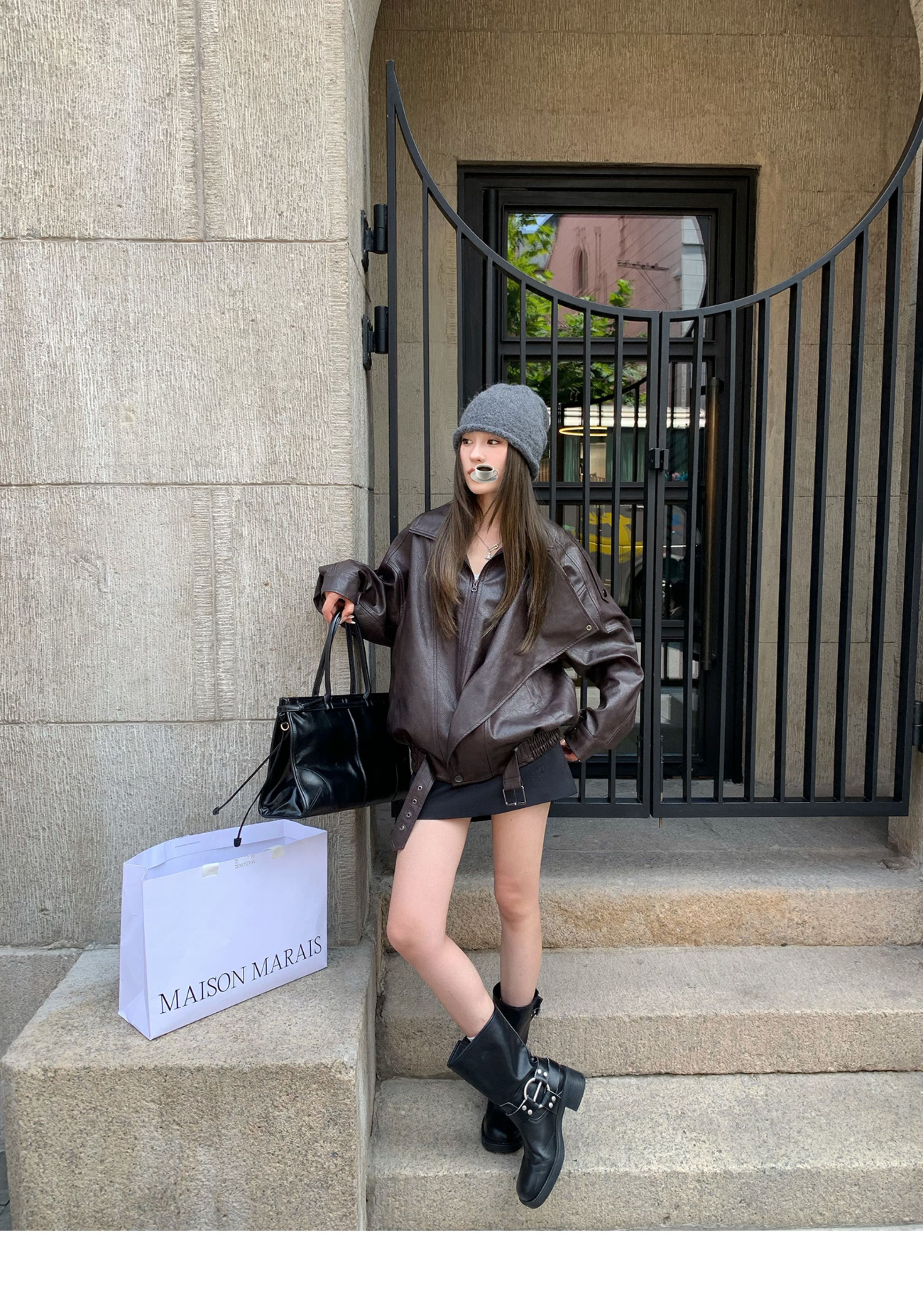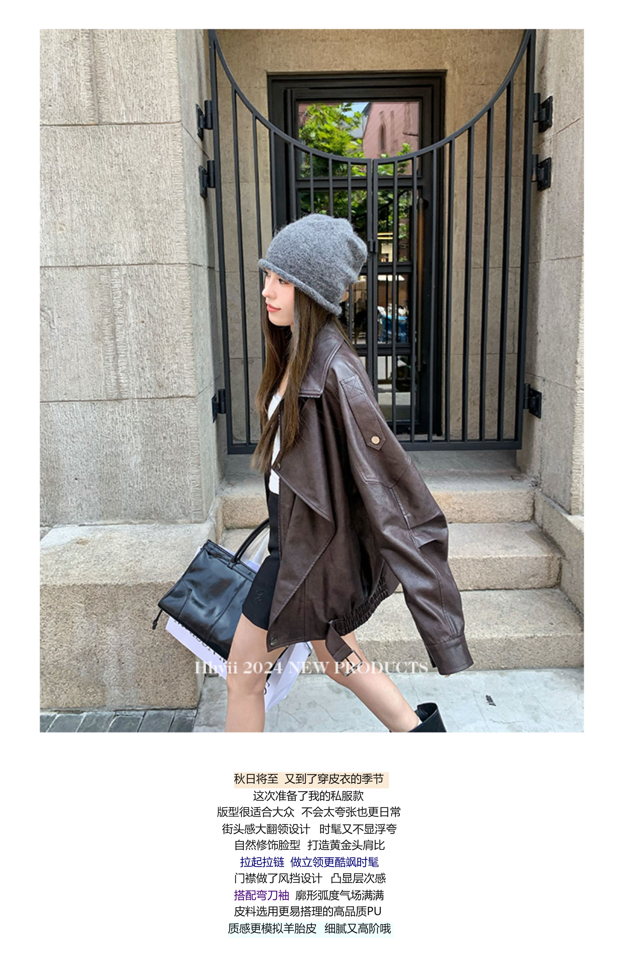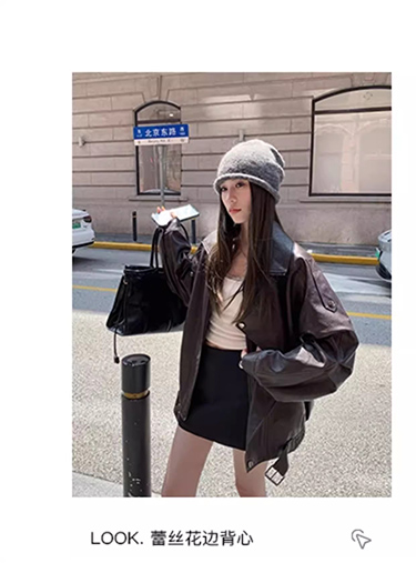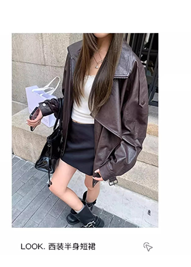 Hhyii Manhattan Brown Leather Jacket for Women, New Spring and Autumn American-Style Biker Jacket with a High-End Silhouette