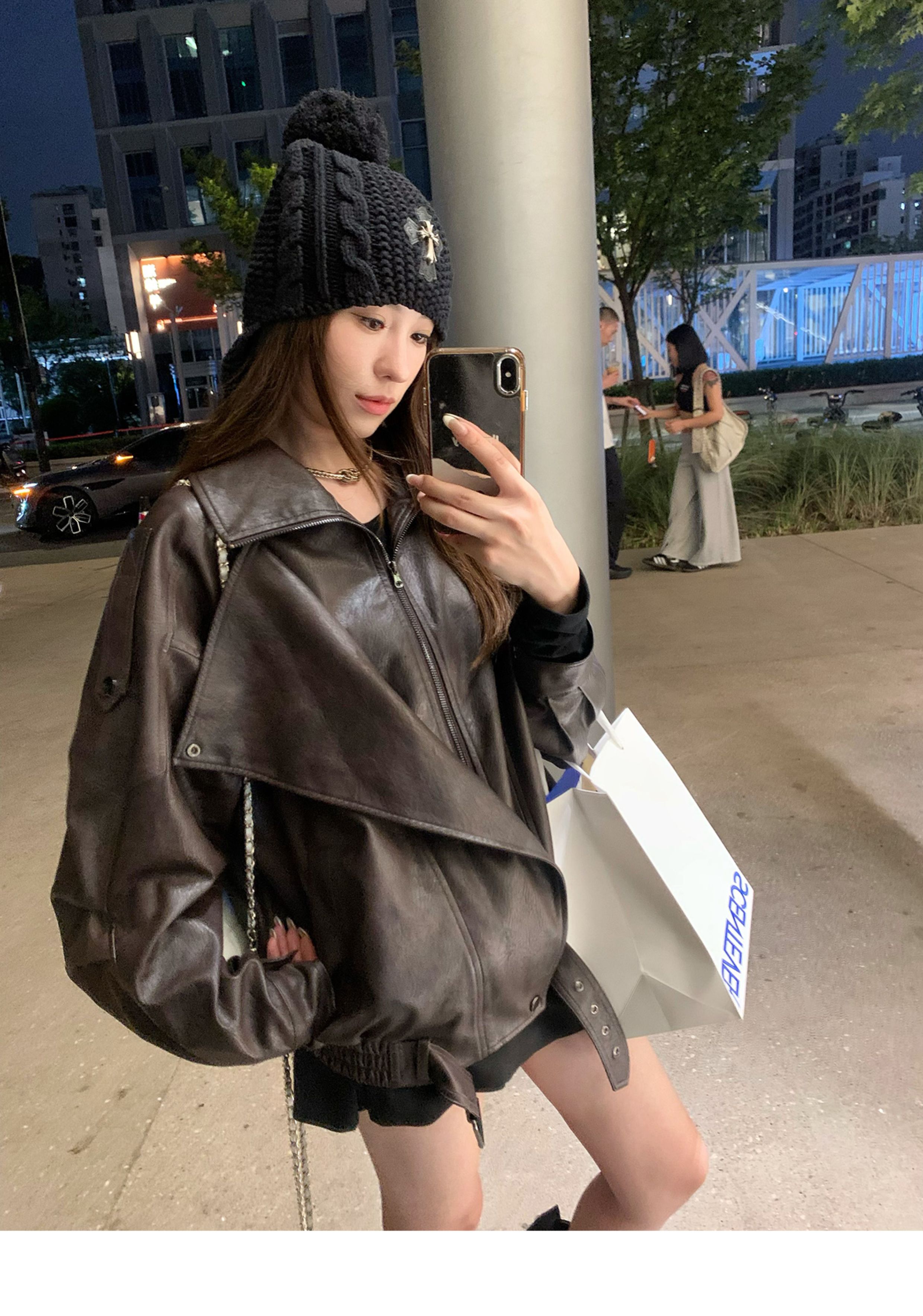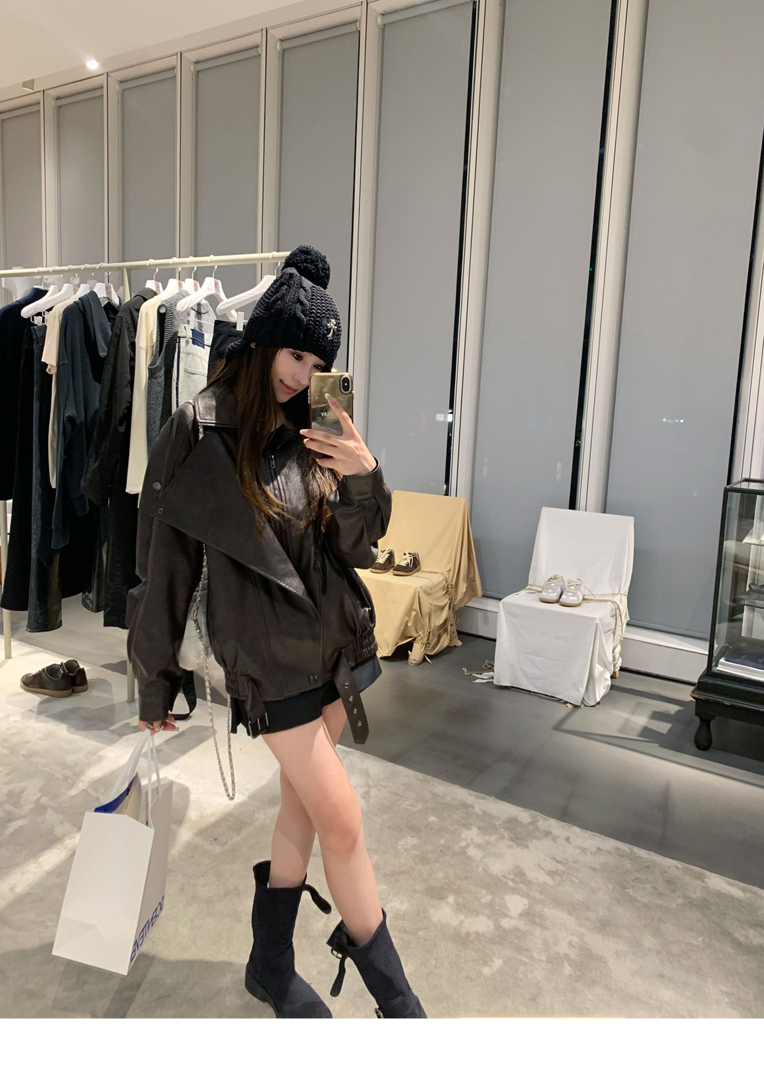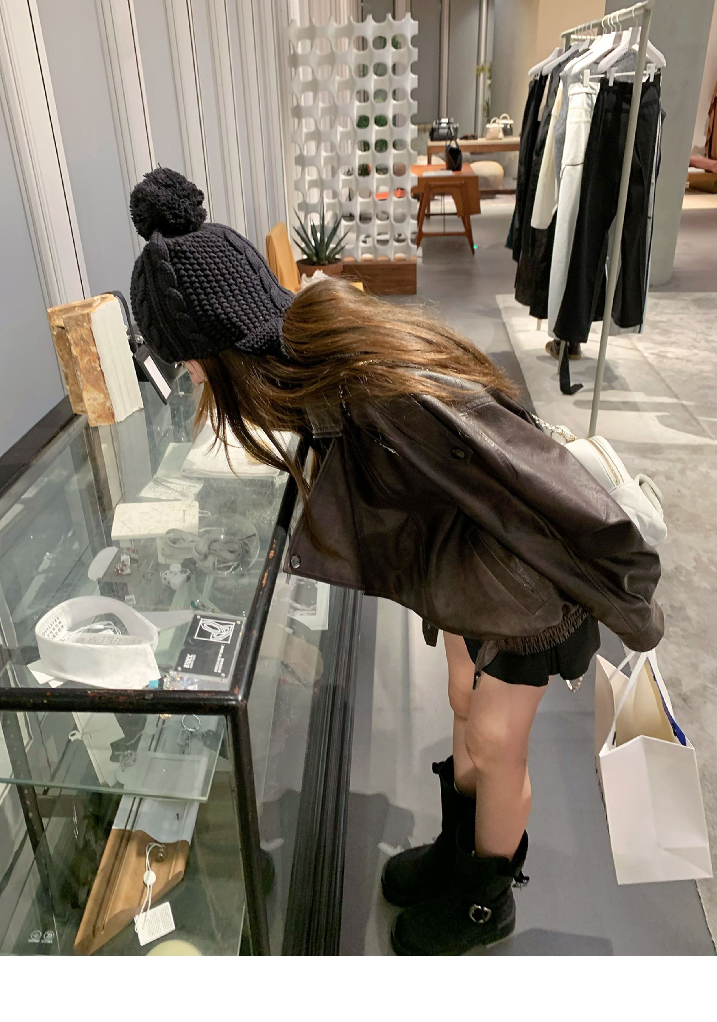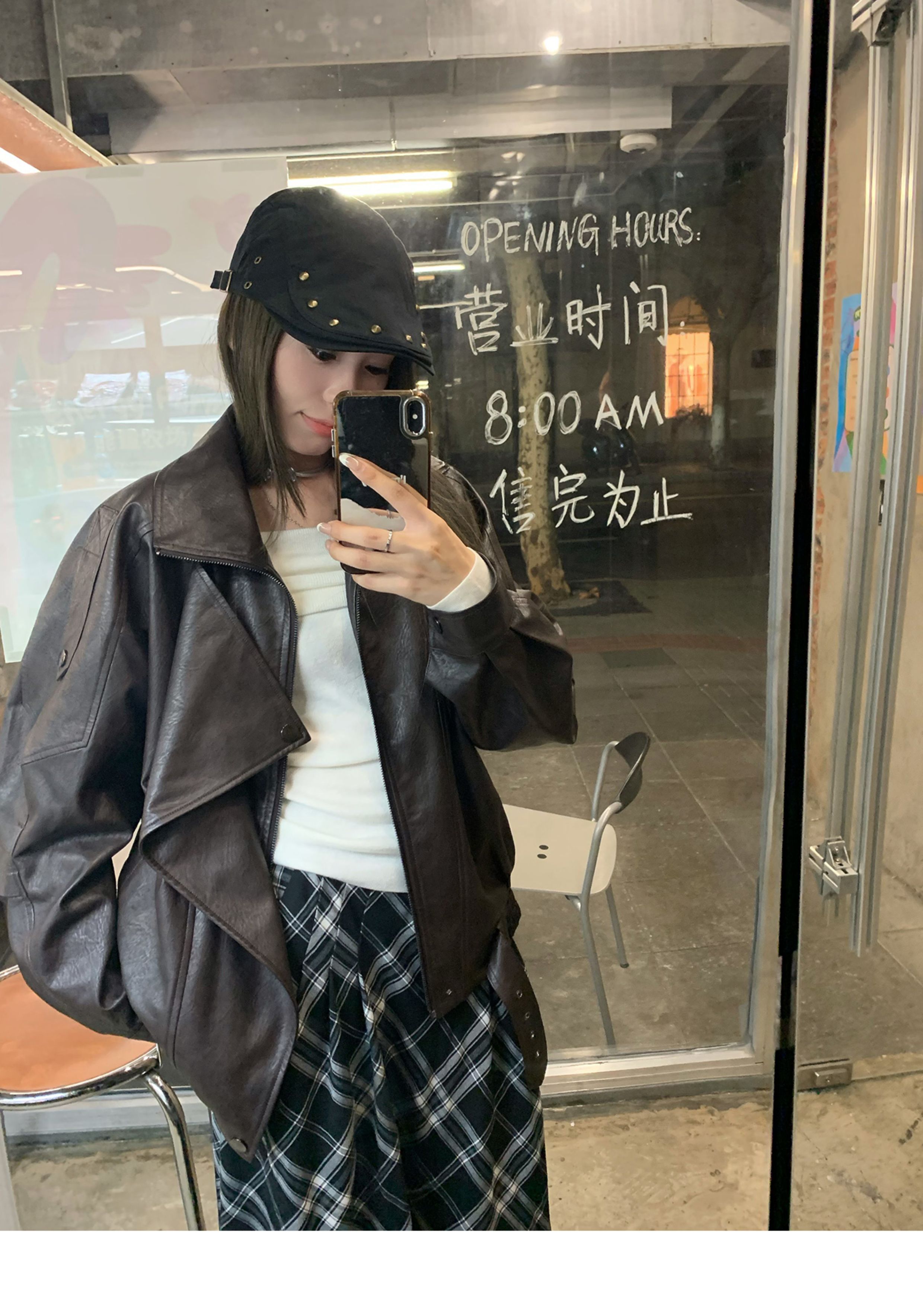 Hhyii Manhattan Brown Leather Jacket for Women, New Spring and Autumn American-Style Biker Jacket with a High-End Silhouette