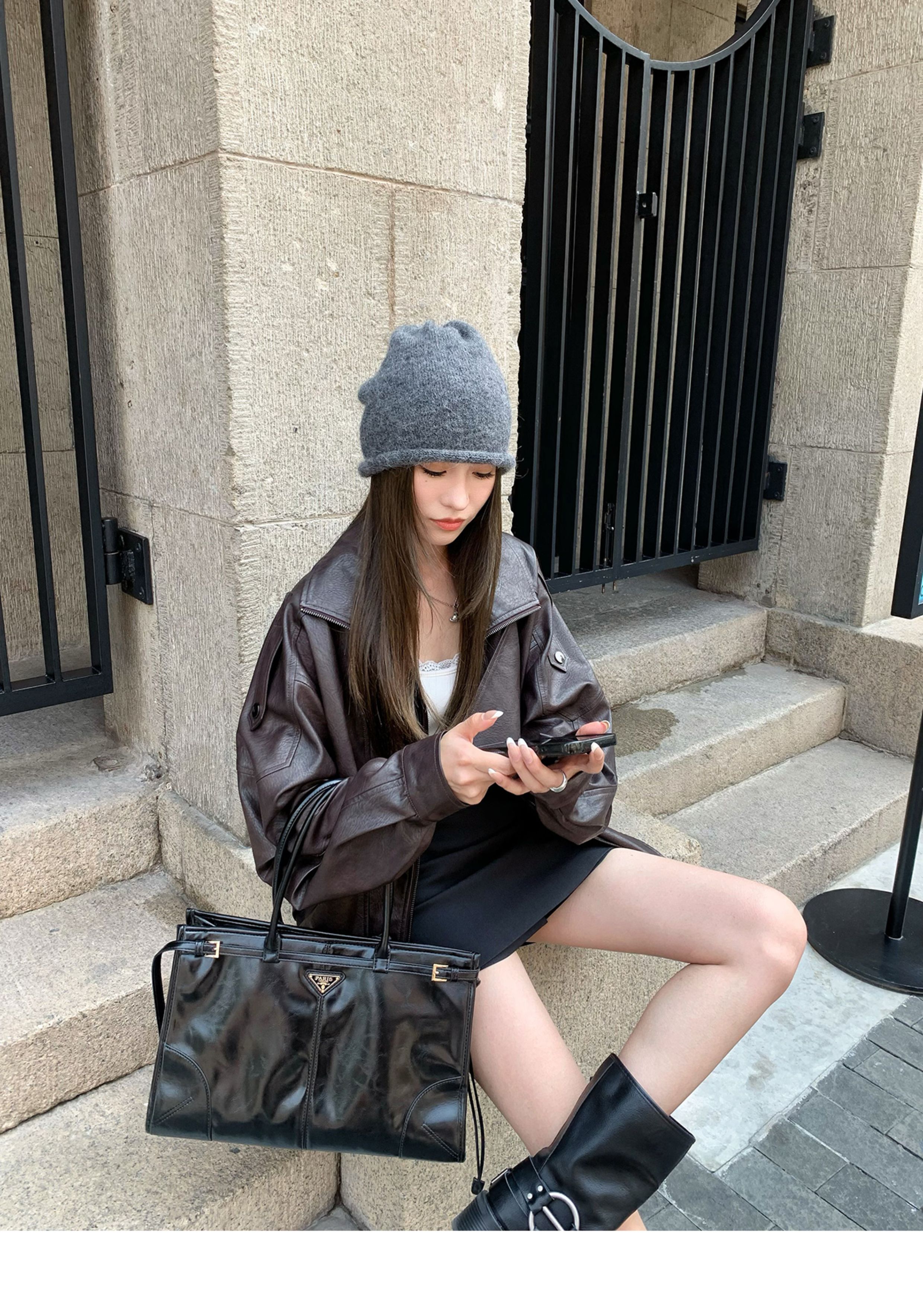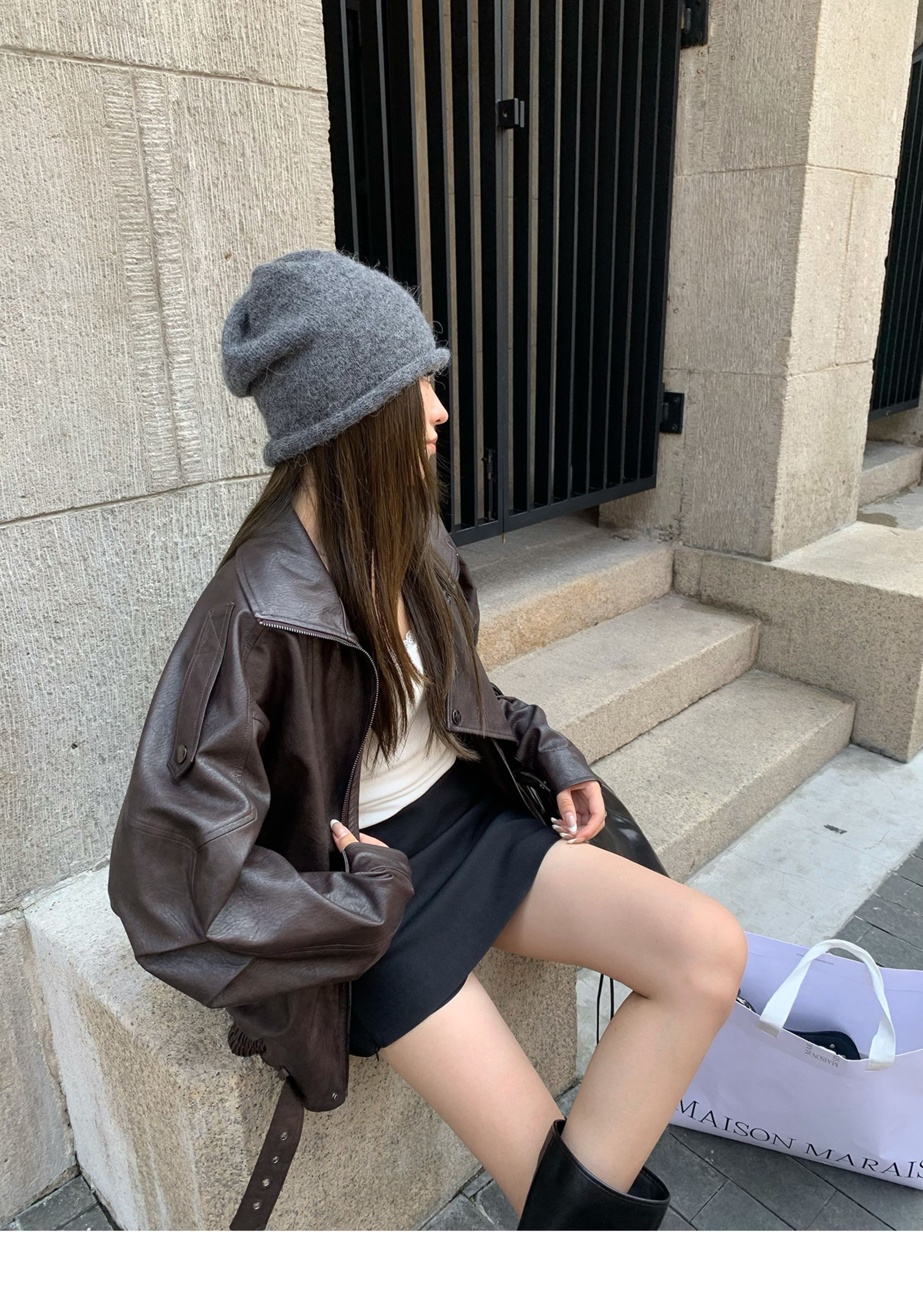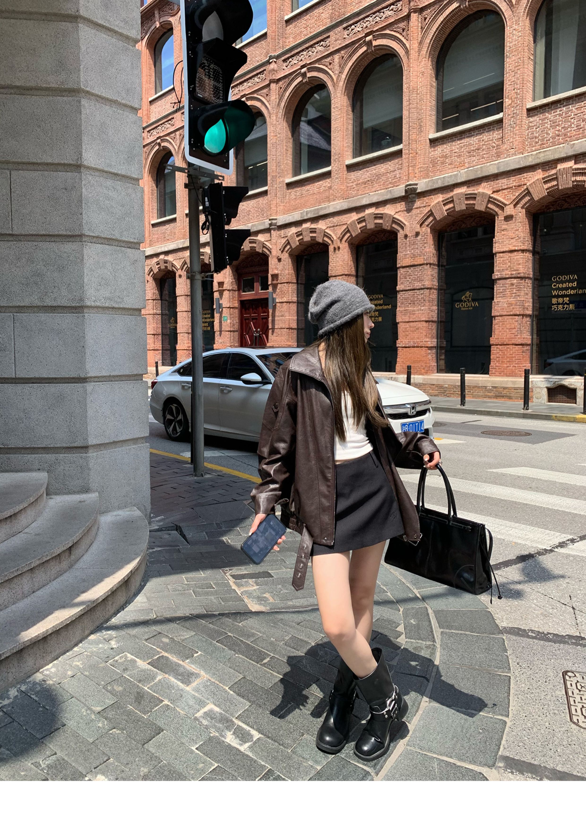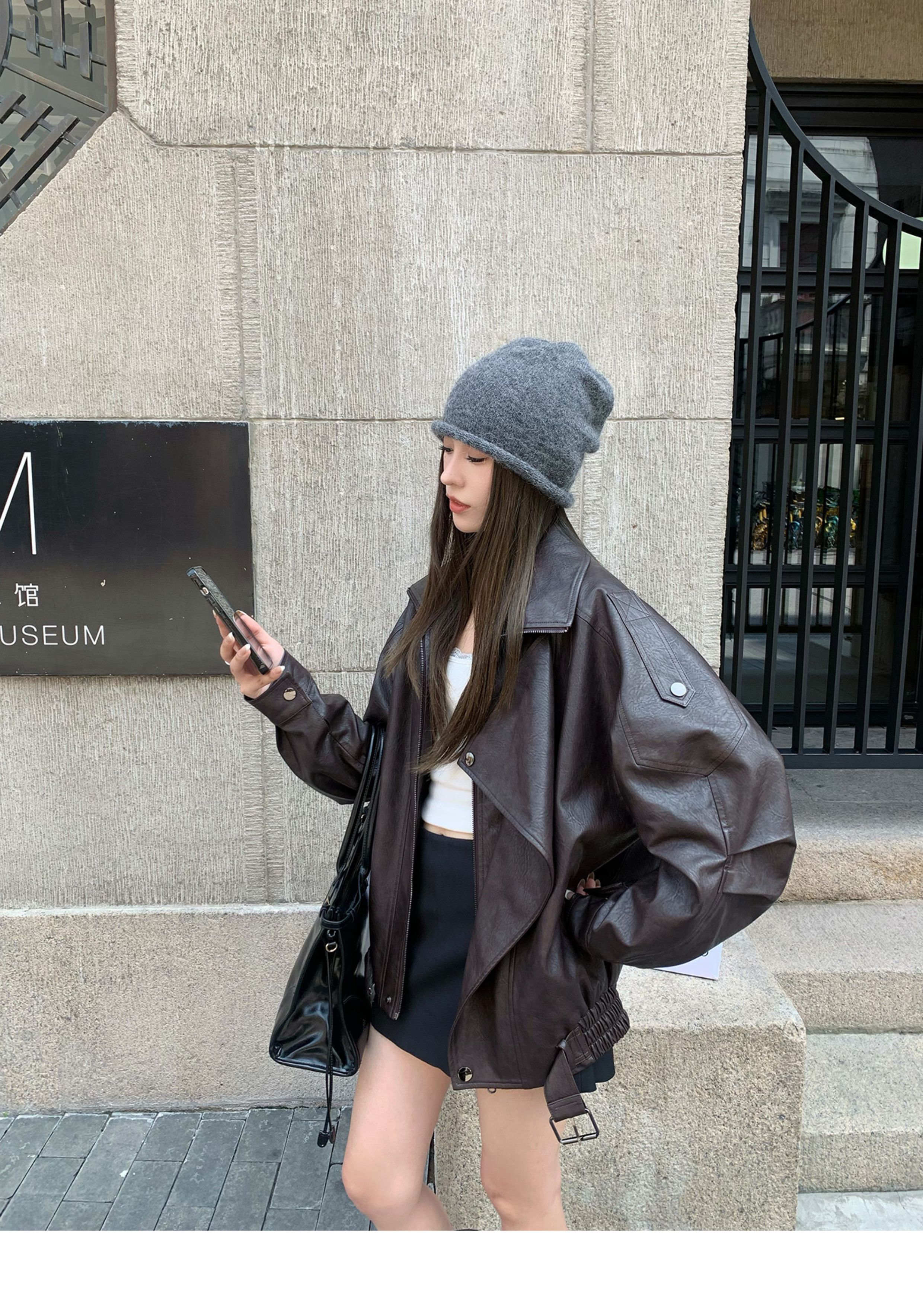 Hhyii Manhattan Brown Leather Jacket for Women, New Spring and Autumn American-Style Biker Jacket with a High-End Silhouette