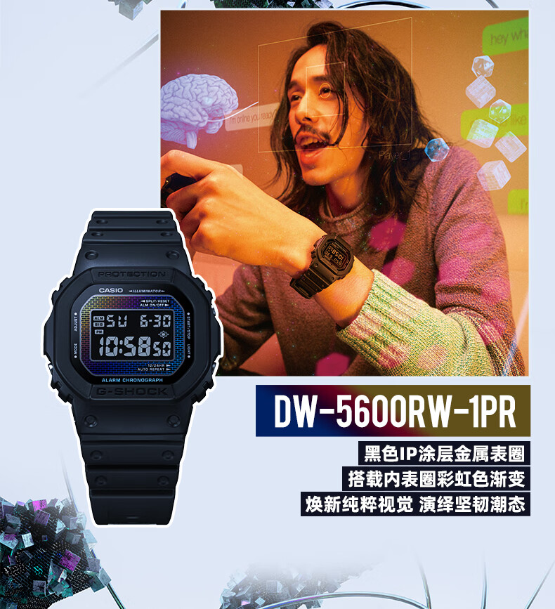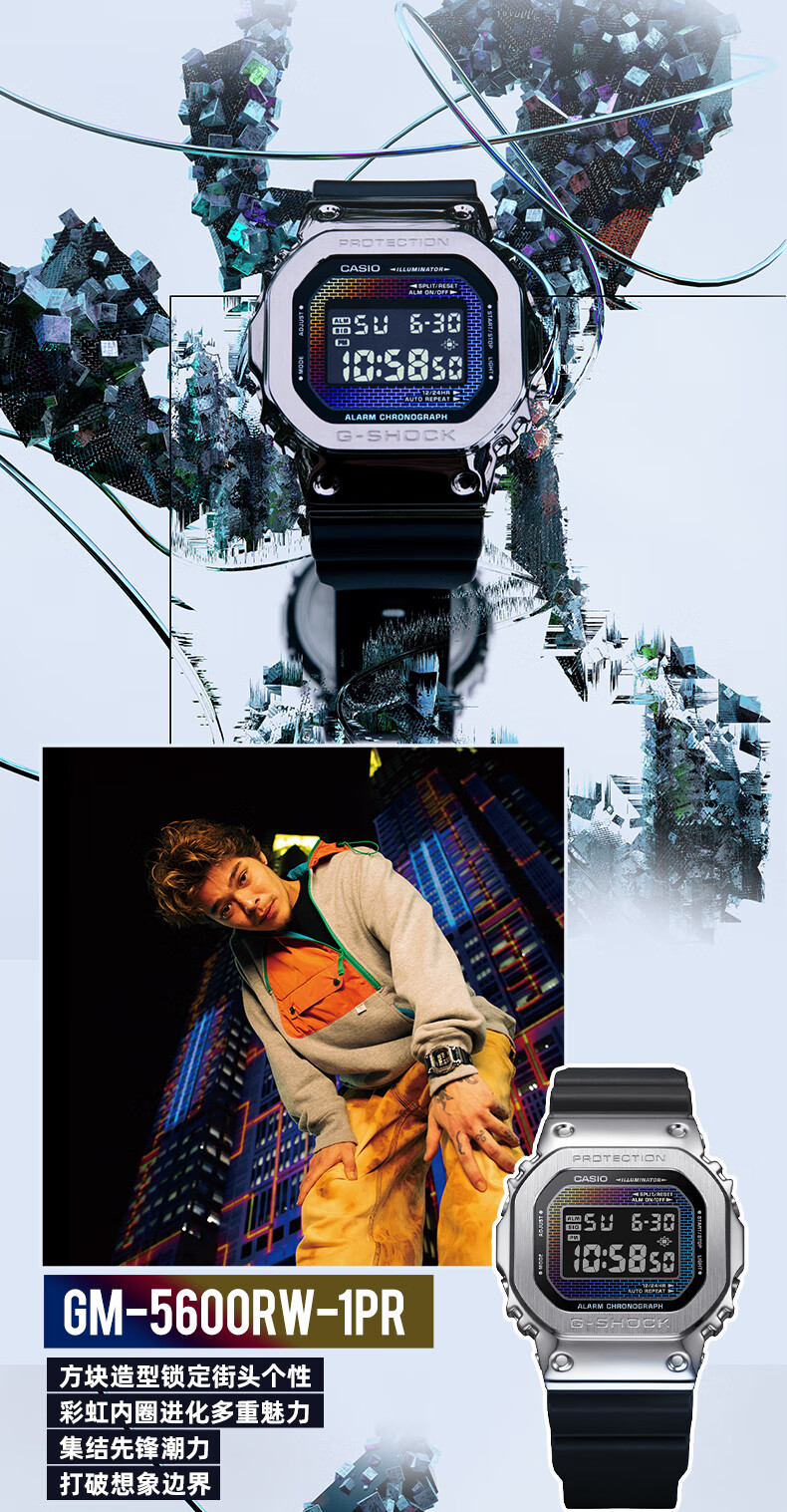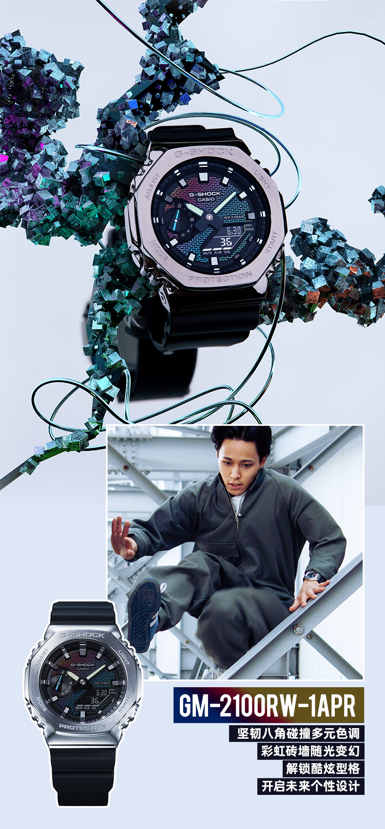 Casio Watch for Men, Rainbow Brick Series, Sports Small Square, Farmhouse Oak Ga-2100/Dw-5600Brw