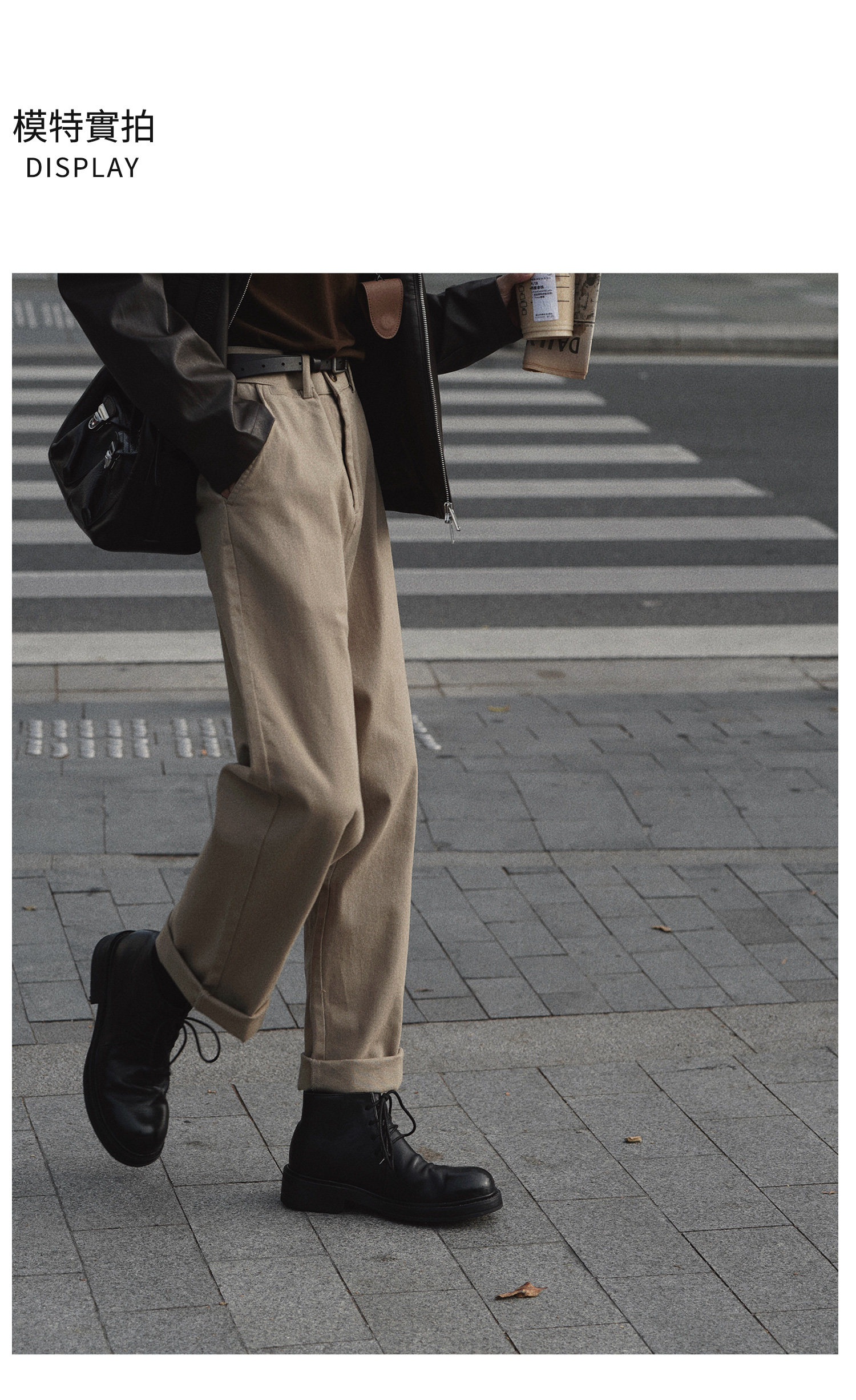 Eli【Old Street Light and Shadow】Spring and Summer Vintage Xinjiang Cotton Washed Twill Relaxed Simple Breathable Casual Straight Pants