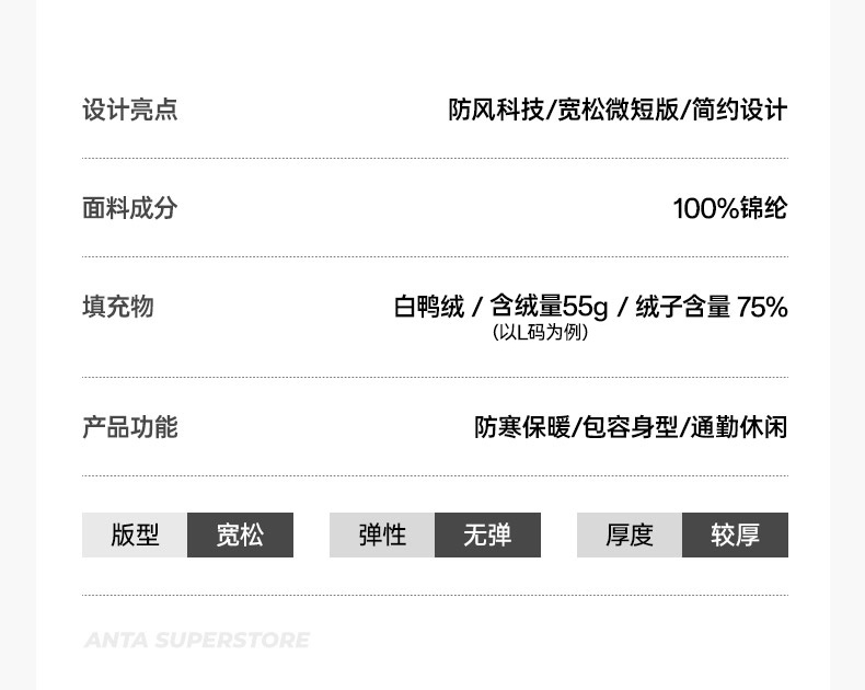 Super Anta down Jacket for Women, Autumn and Winter, Slightly Short Version, Stylish down Windbreaker, Warm Coat 162447952U