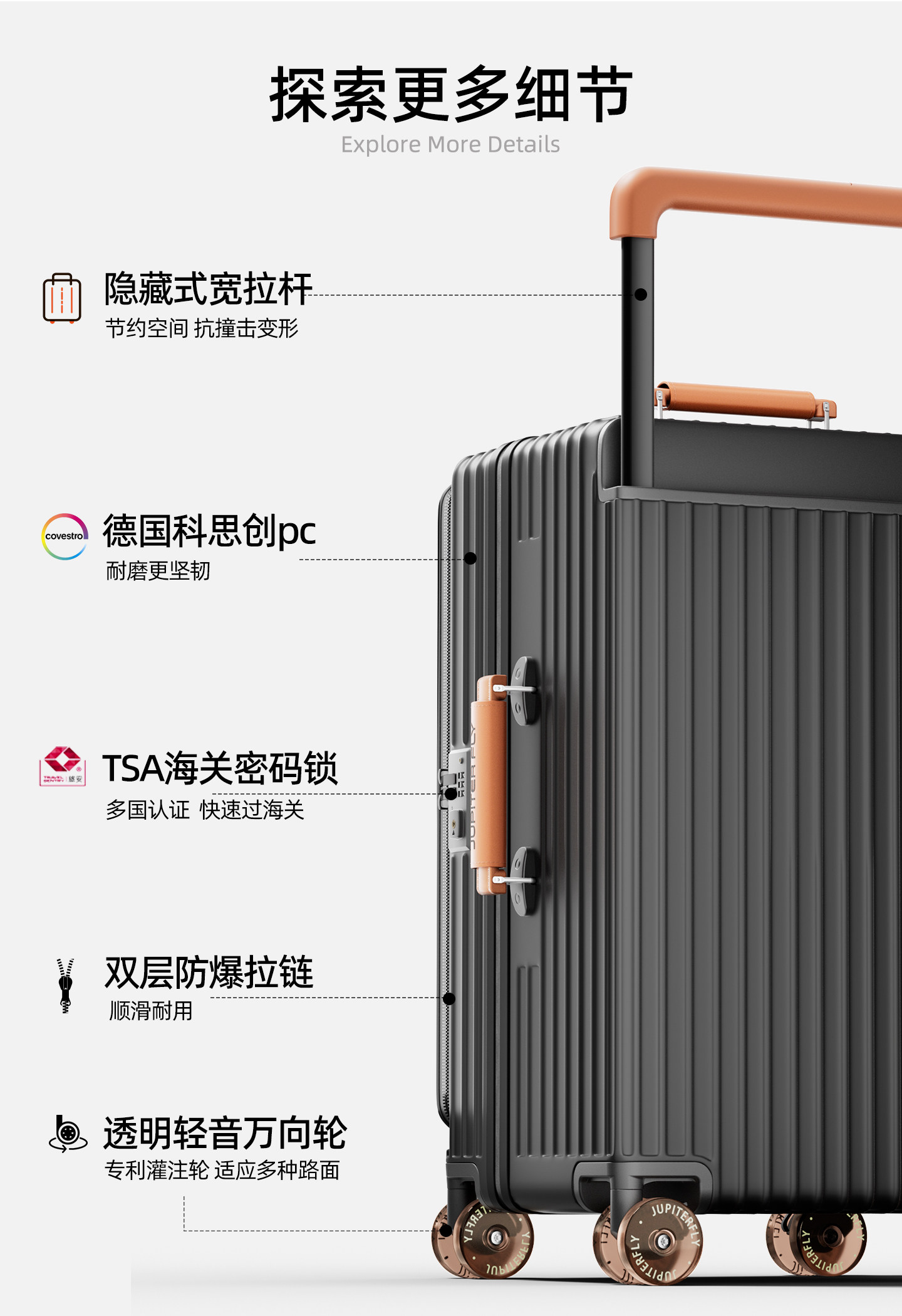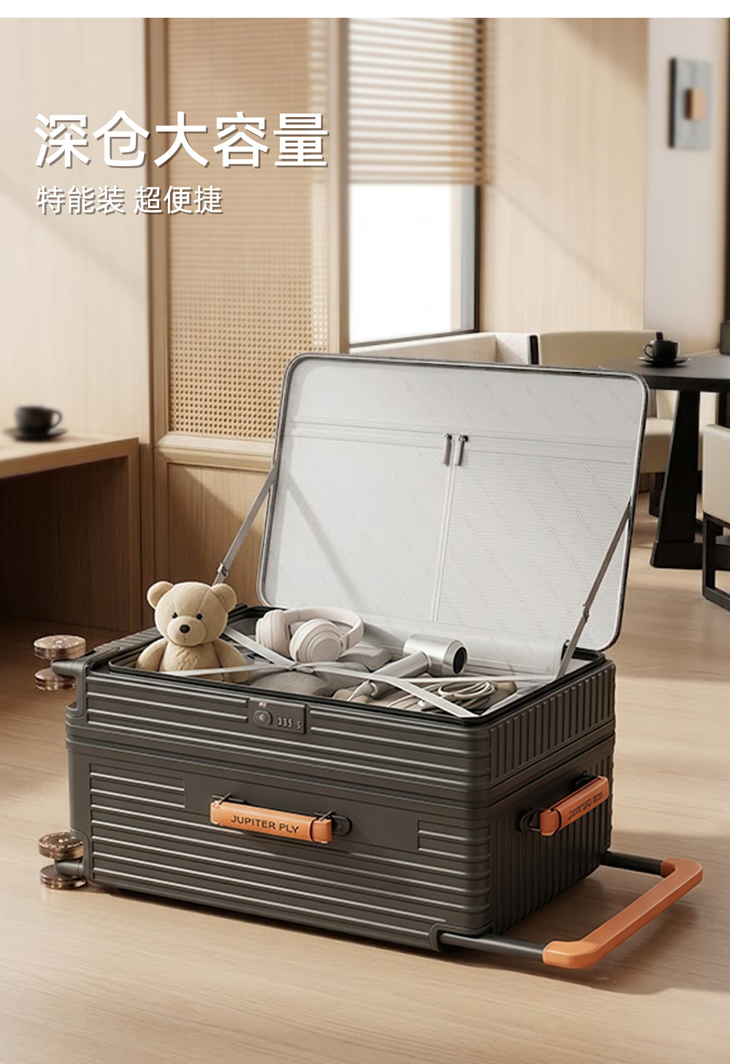 Side-Opening Suitcase with Wide Handle, Aluminum Frame, Large Capacity, Expandable, Combination Lock, Luggage for Women and Men