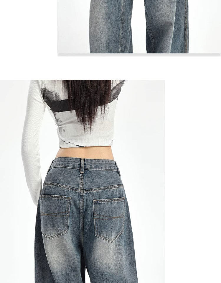 Casual and Relaxed Jeans for Women, Plus Size, Spring and Summer, Pear-Shaped Body, Slimming, High-Waisted, Straight-Leg, Wide-Leg, Floor-Length Pants