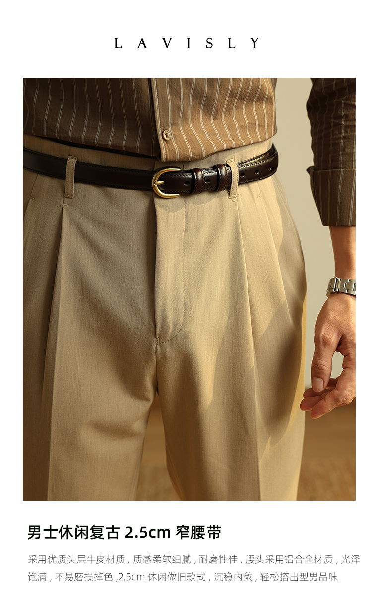 2.5cm Narrow Leather Belt, First Layer Cowhide, Men's Casual and Elegant Fashion Versatile Belt for Young People, Pin Buckle Genuine Leather Belt