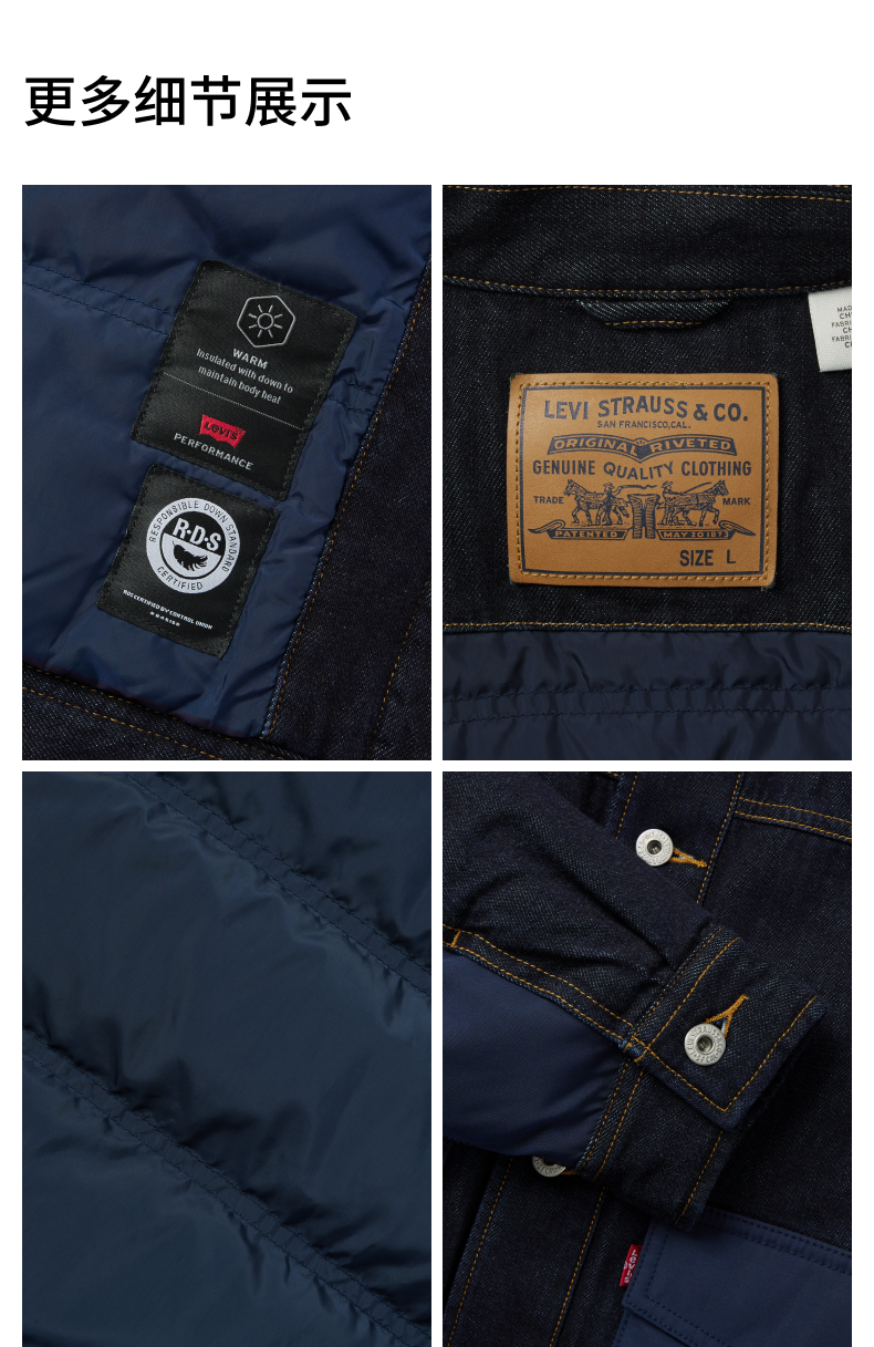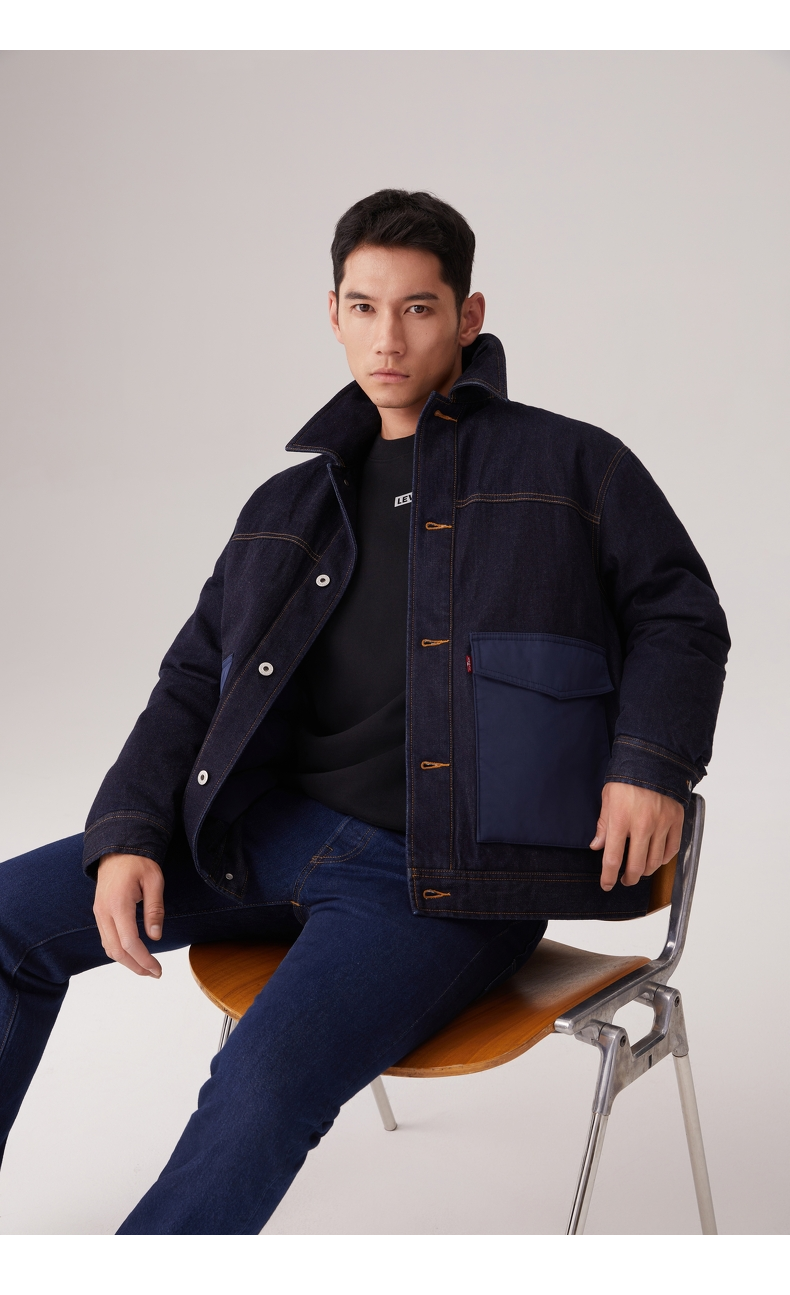 Levi's Couple's Matching American Retro Style Cold-Proof and Warm Outdoor Stand-Collar down Jacket Denim Coat