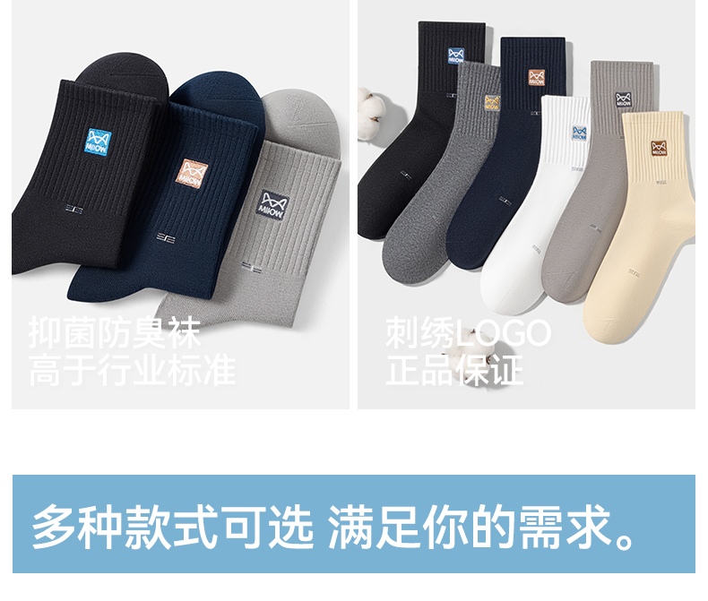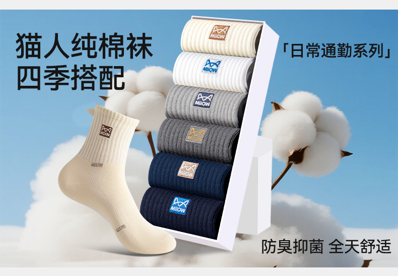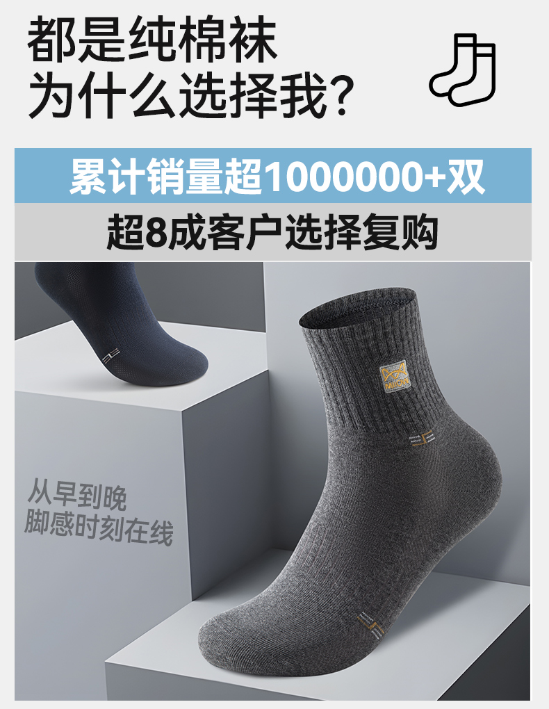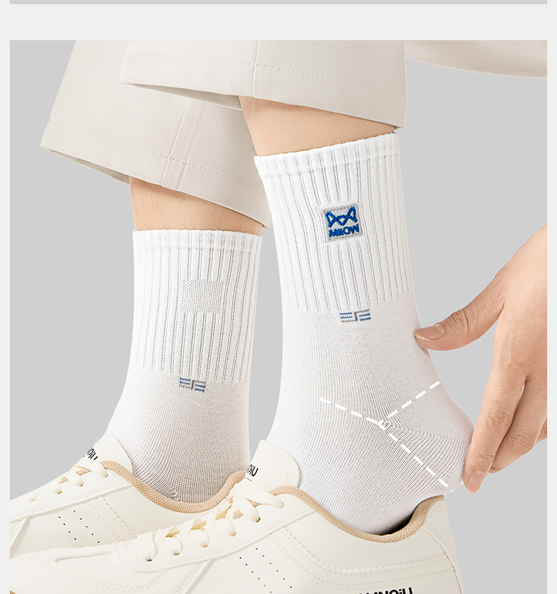【10A Antibacterial】Catman Men's Socks Autumn and Winter 100% Genuine Pure Cotton Mid-Calf Deodorant Sweat-Absorbing Sports Long Socks