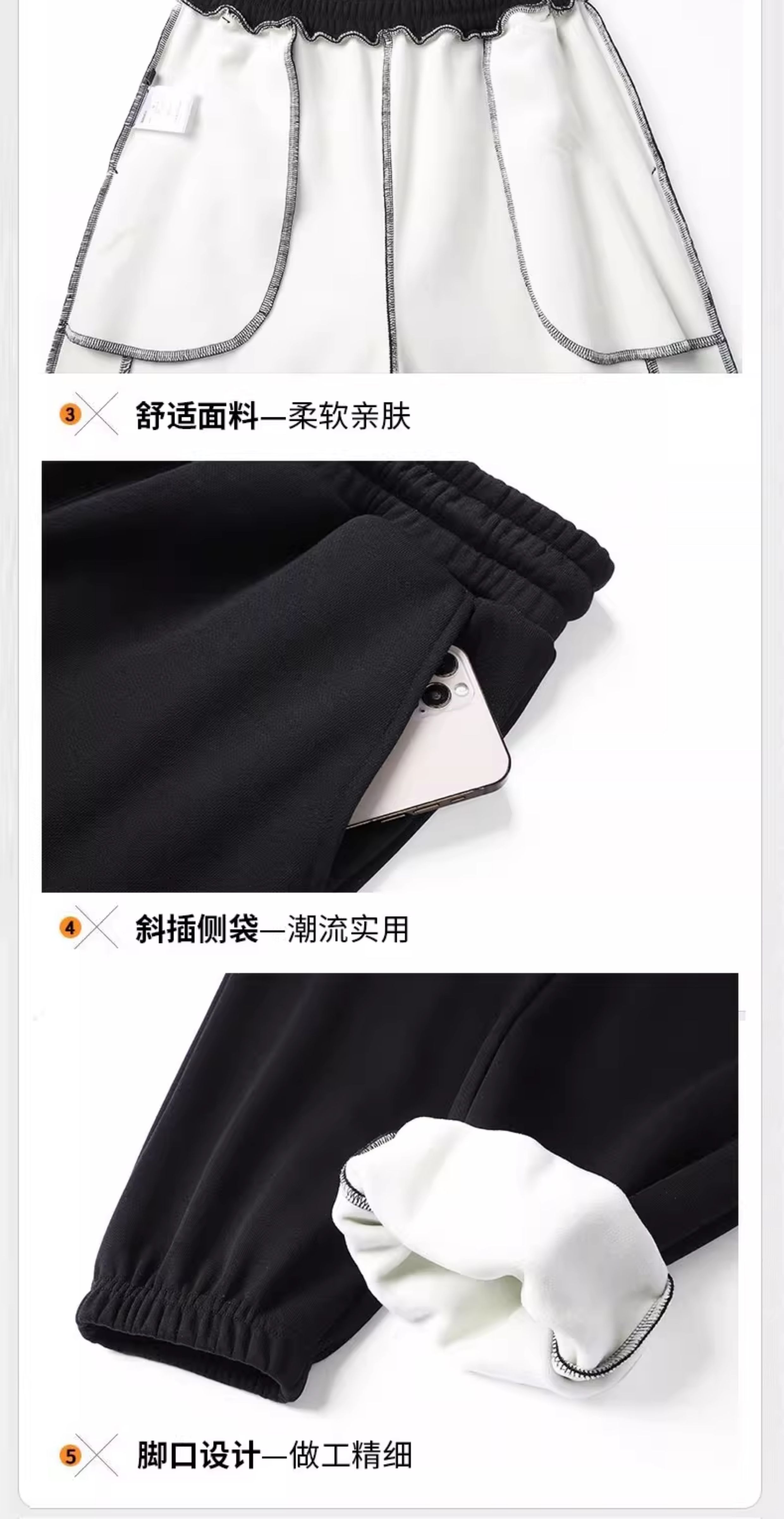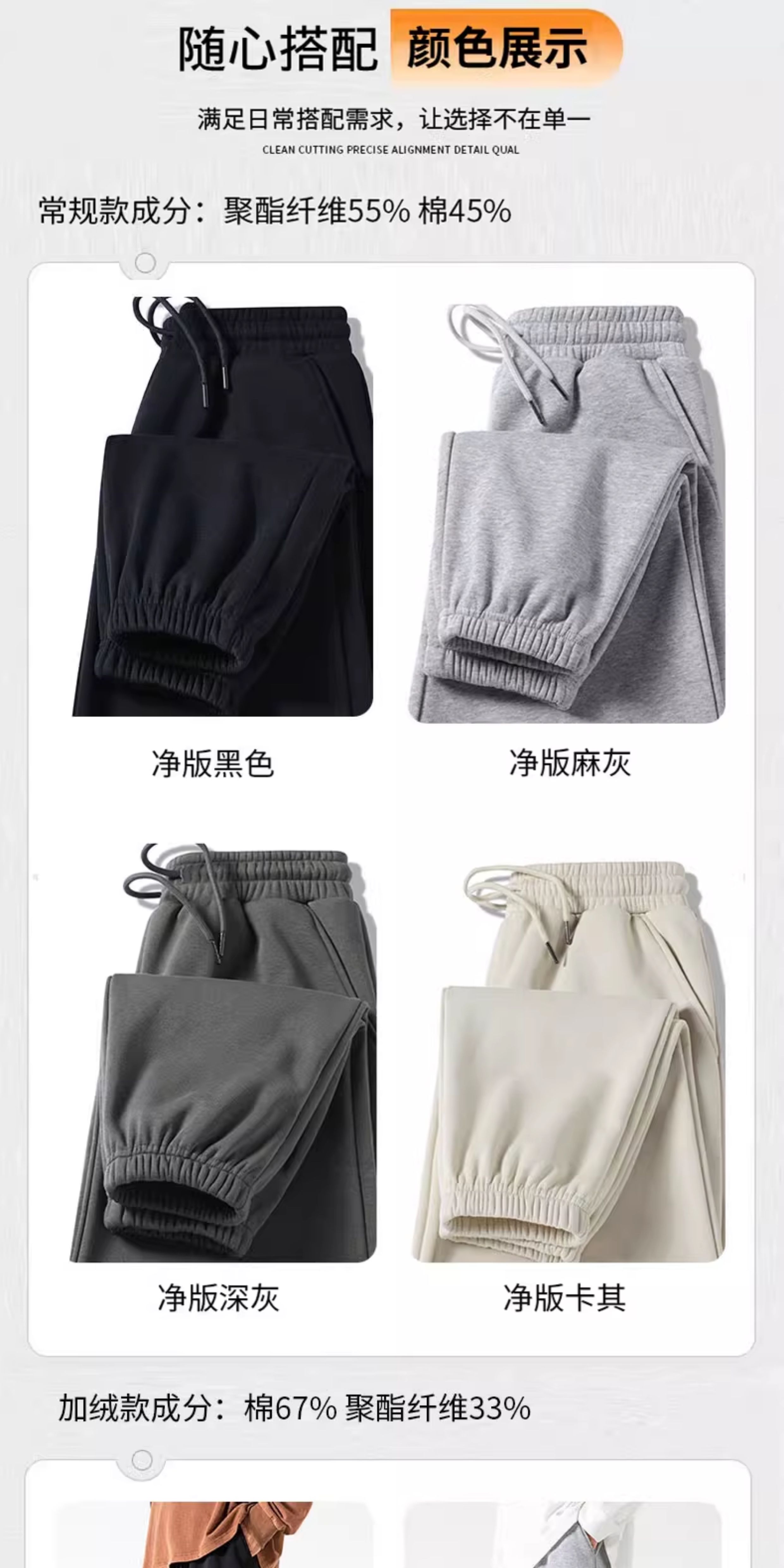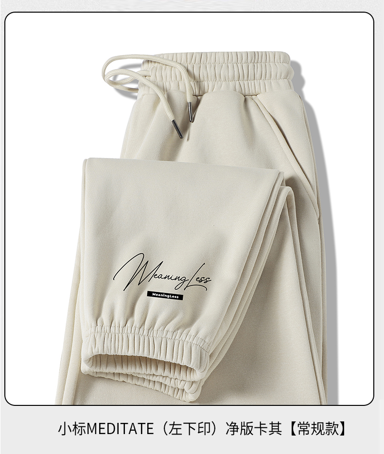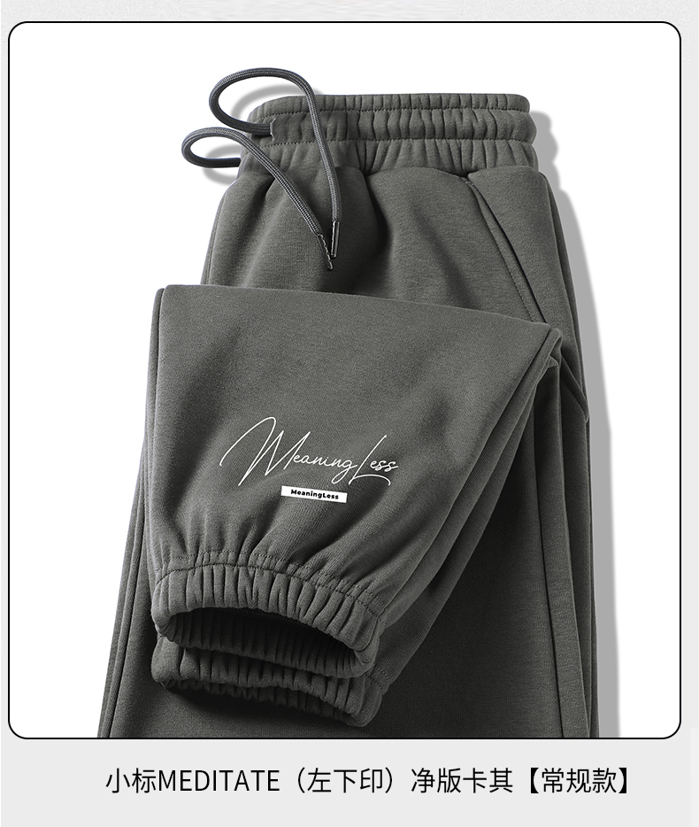 Jeanswest Trendy Casual Pants for Men, Autumn and Winter American-Style Loose Solid Color Sports Sweatpants, Versatile Fleece-Lined Pants for Young People