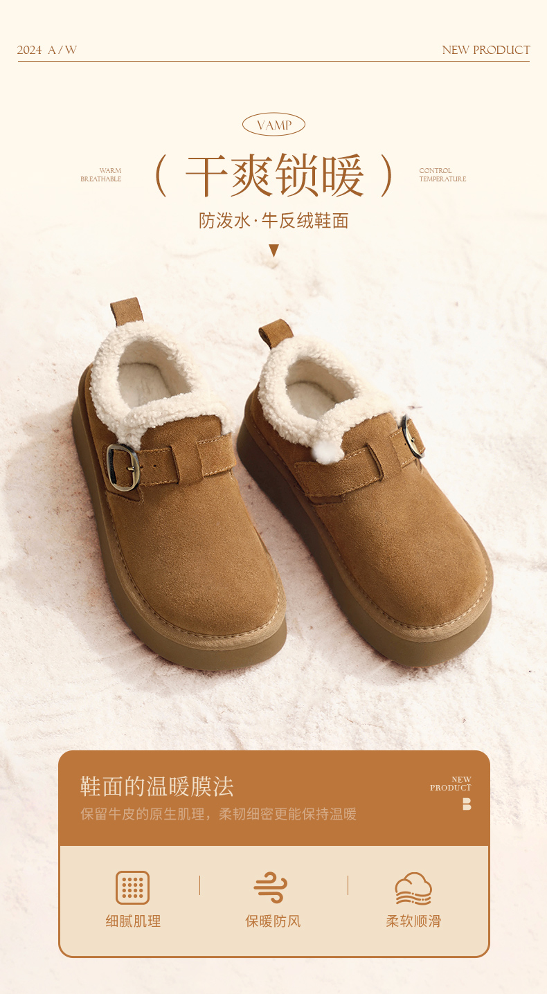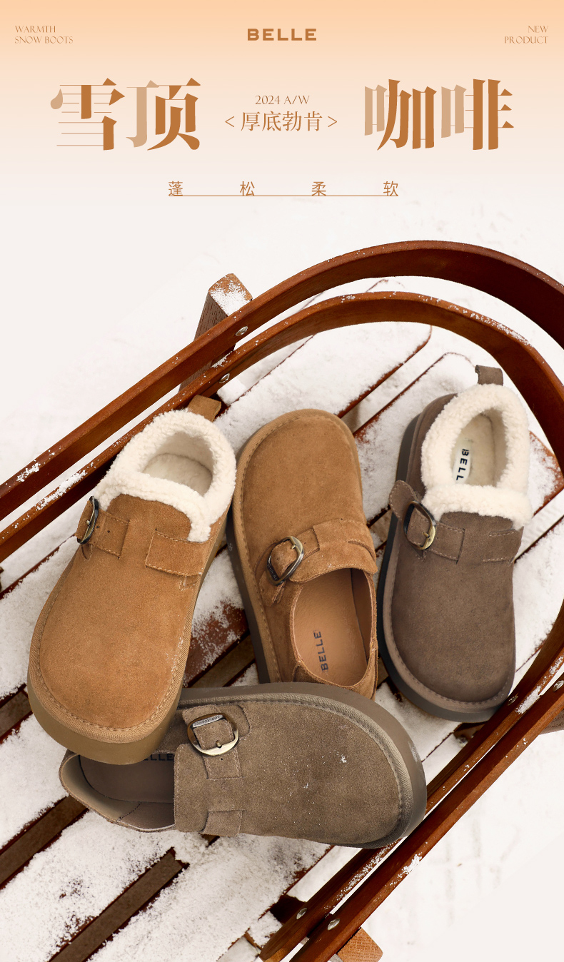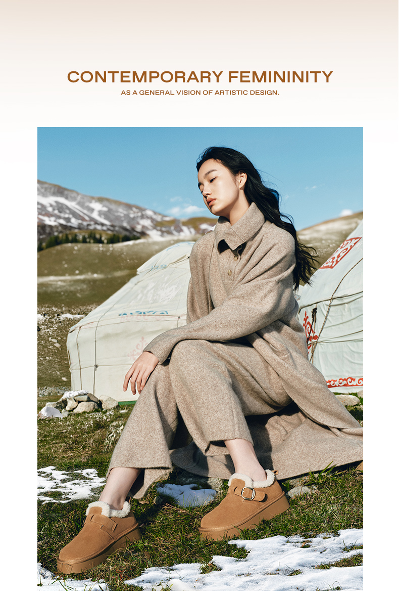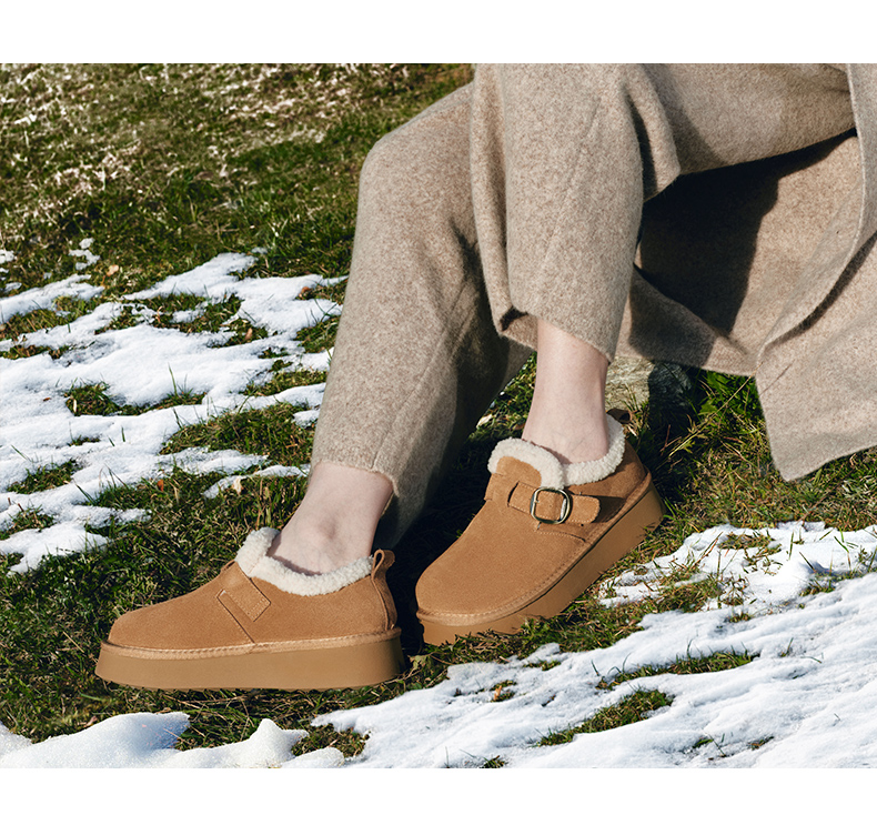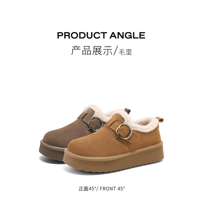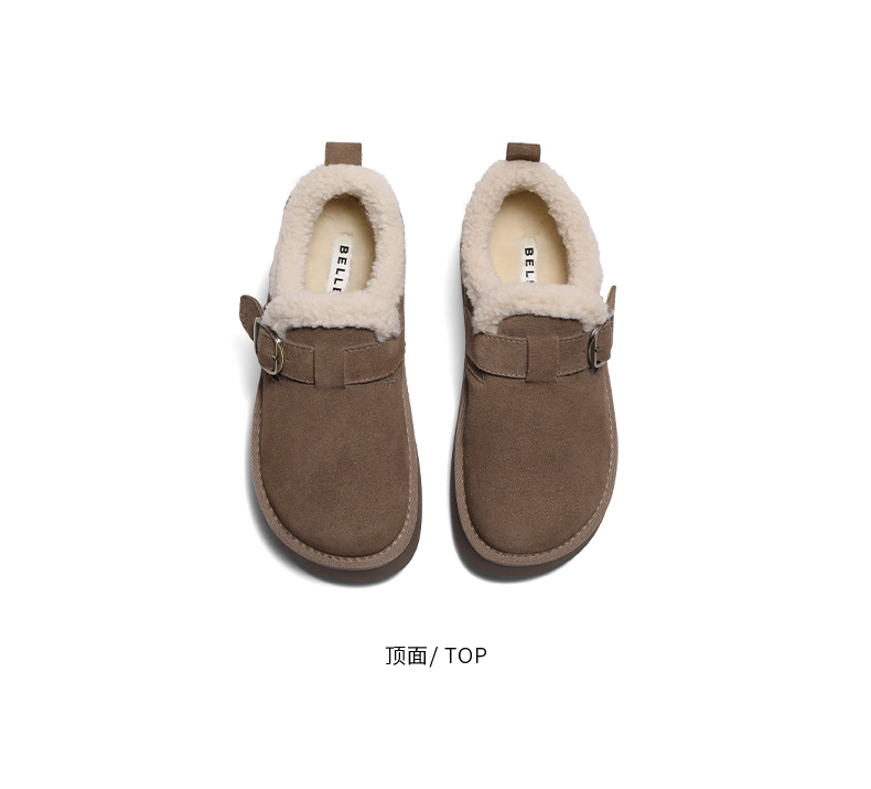 Zhao Jinmai's Same Style Belle Snow-Top Coffee-Colored New All-Inclusive Thick-Soled Birkenstock-Style Cotton Shoes, Snow Boots, Fleece-Lined Single Shoes D1V1
