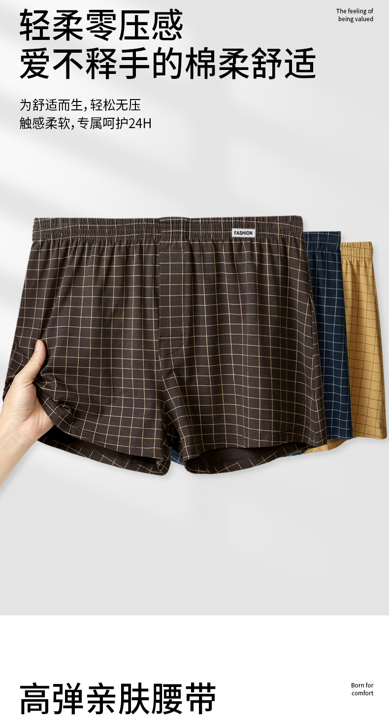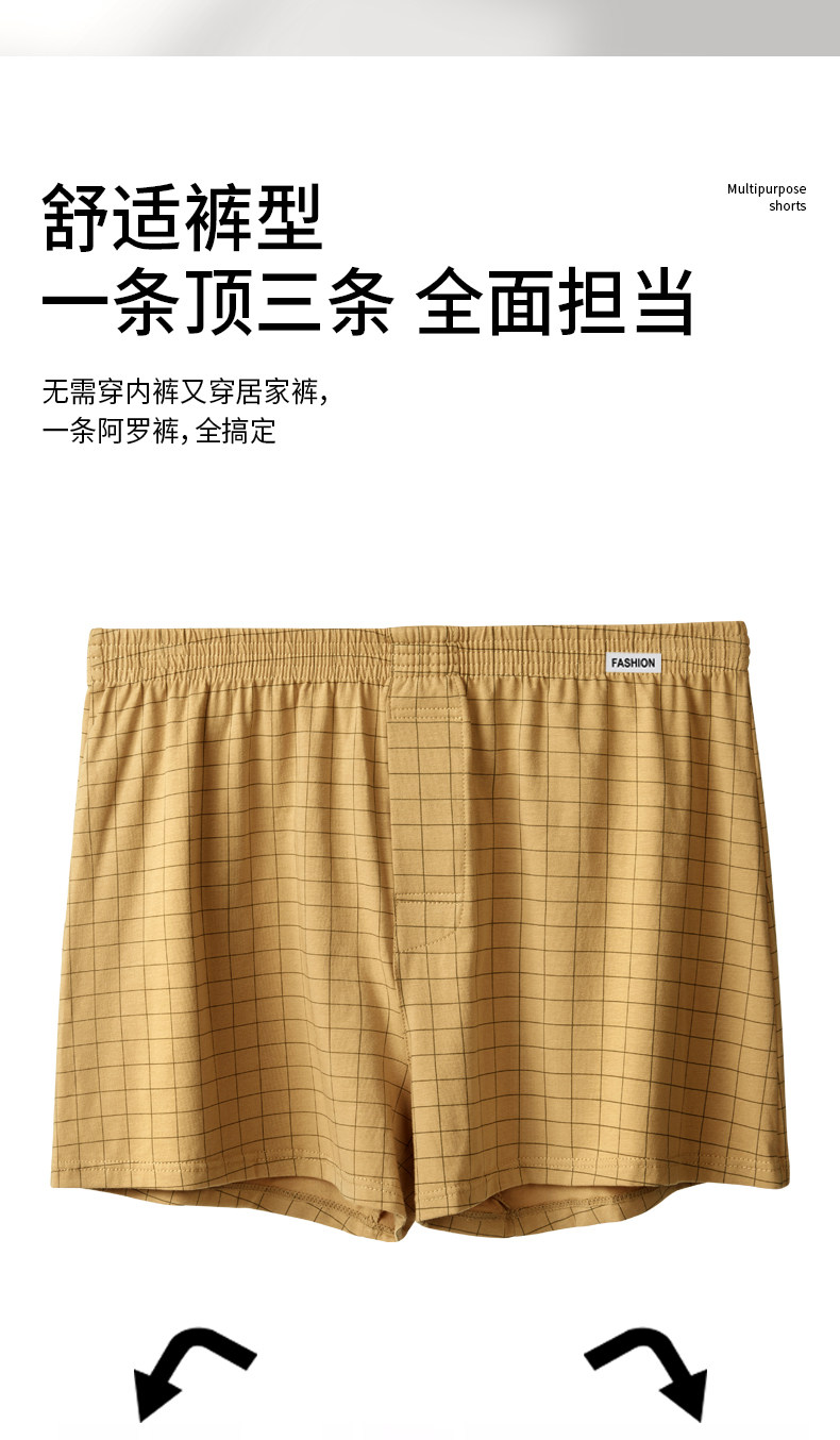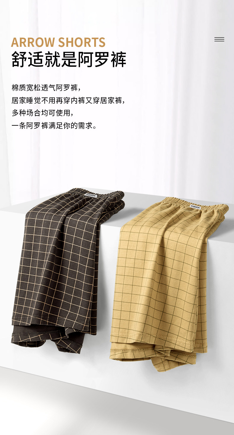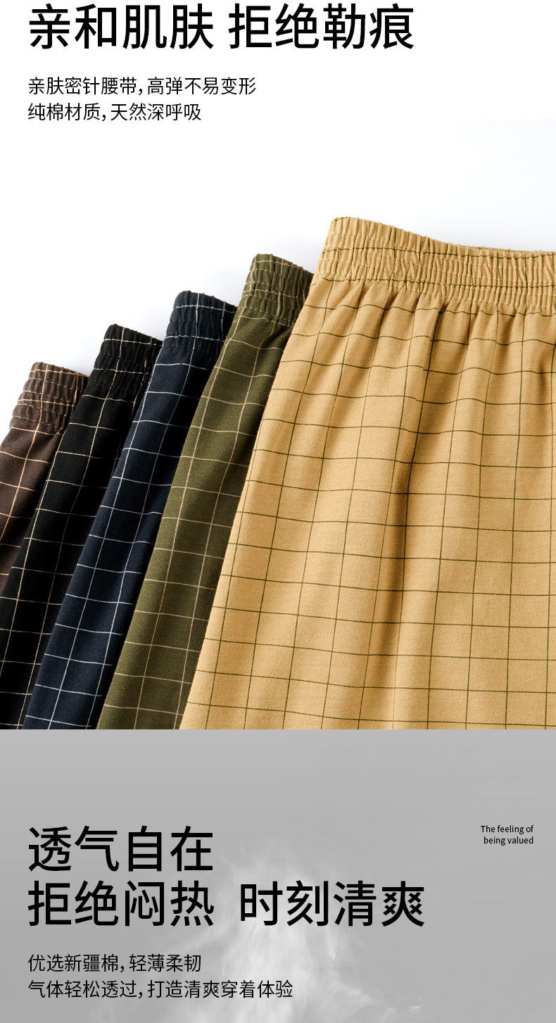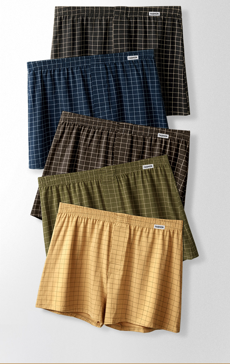 Men's Pure Cotton Boxer Briefs Plaid Aro Pants High-Waisted Loose Plus Size 150kg Home Pants Boxer Shorts