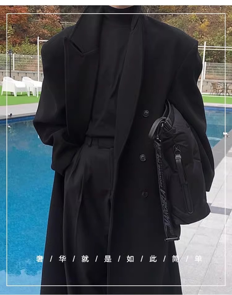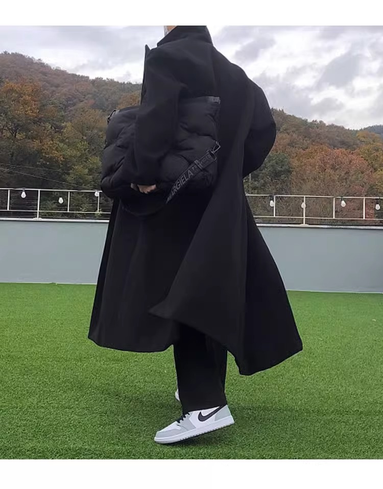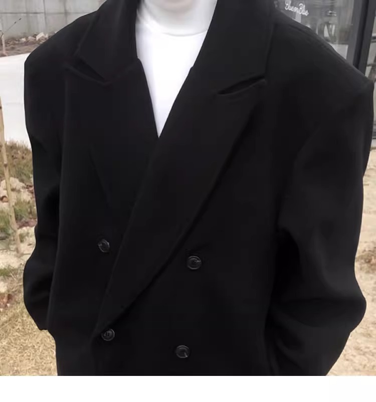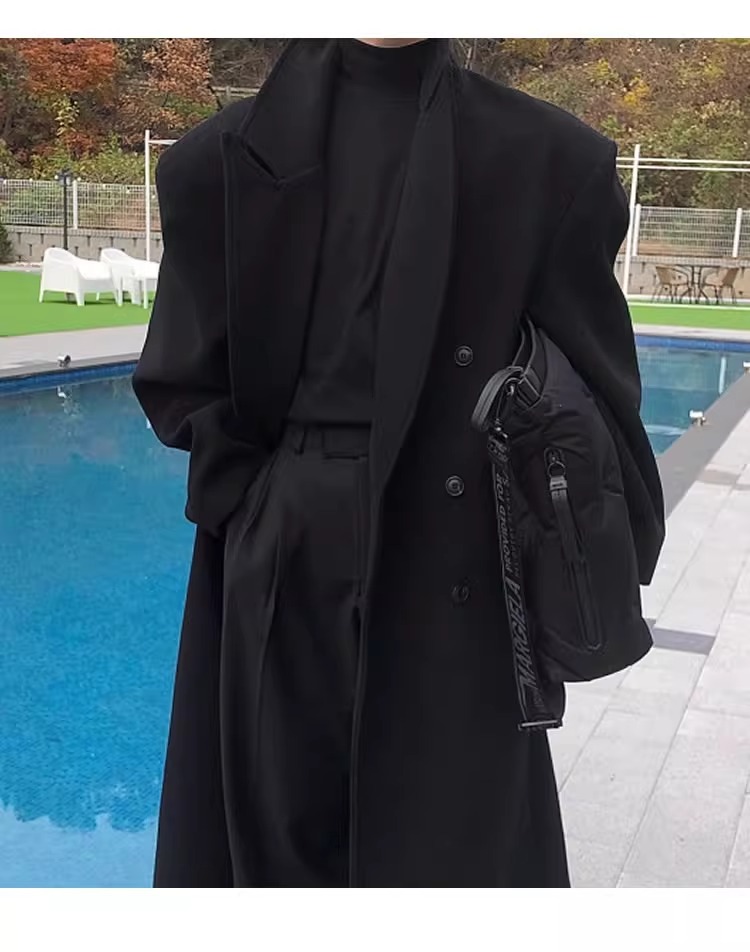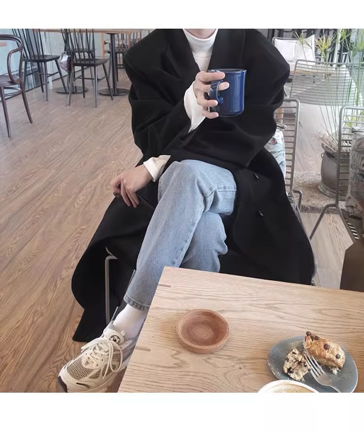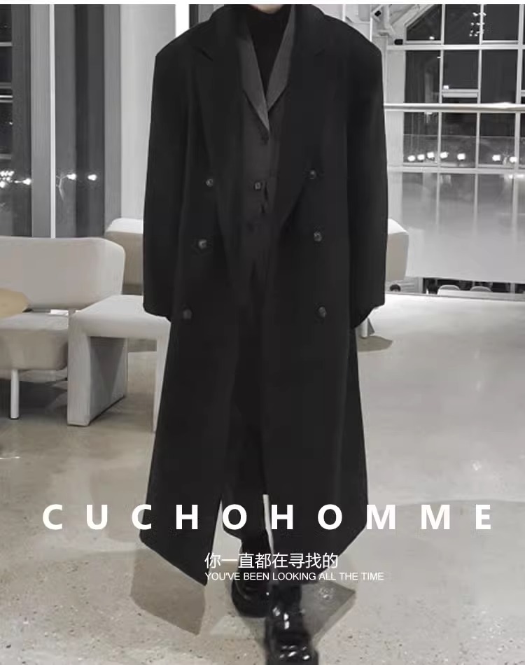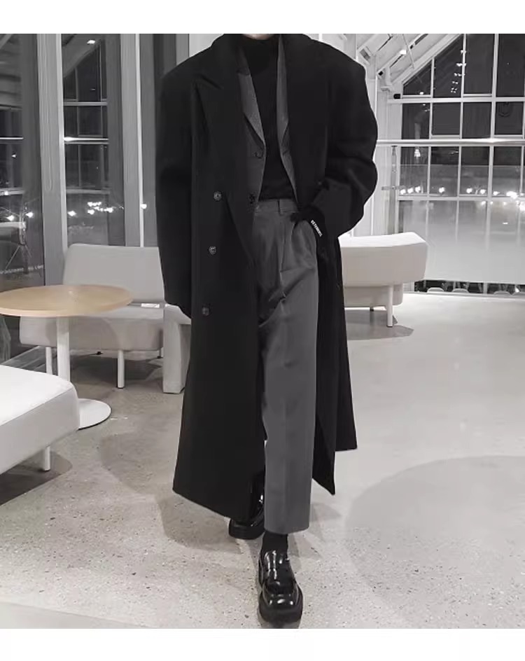 Double-Breasted British Style Woolen Coat for Men, Autumn and Winter Mid-Length Over-The-Knee Korean Style Woolen Trench Coat, Cool and High-End
