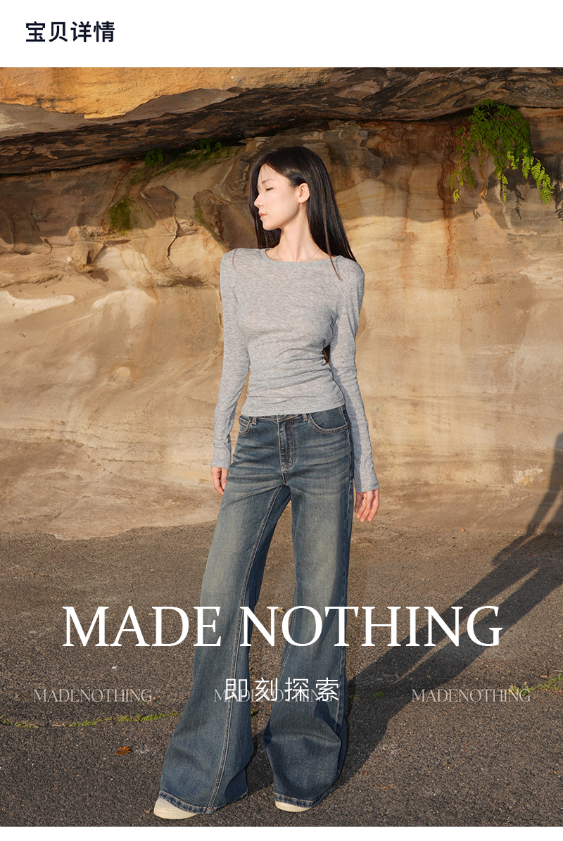 Made Nothing Mr012 Retro High-End Flare Stretch Washed Mid-Waist Slightly Flared Wide-Leg Jeans for Women