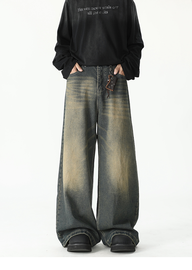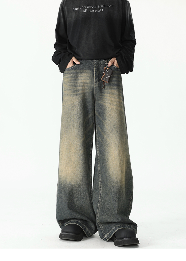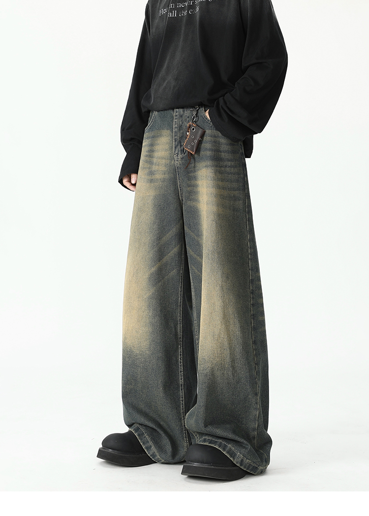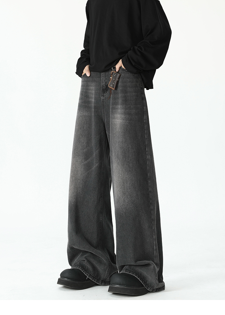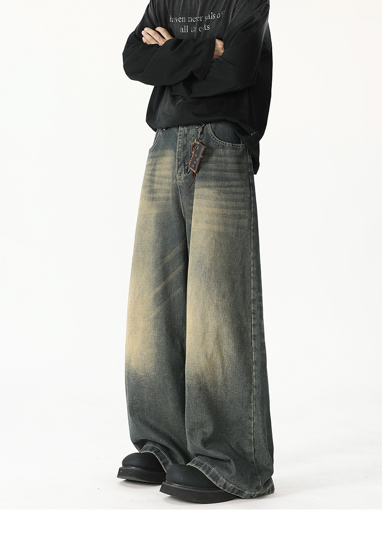 American Retro Flared Jeans for Men, New Trendy Brand, Loose Straight-Leg Cleanfit High Street Cool Wide-Leg Trousers