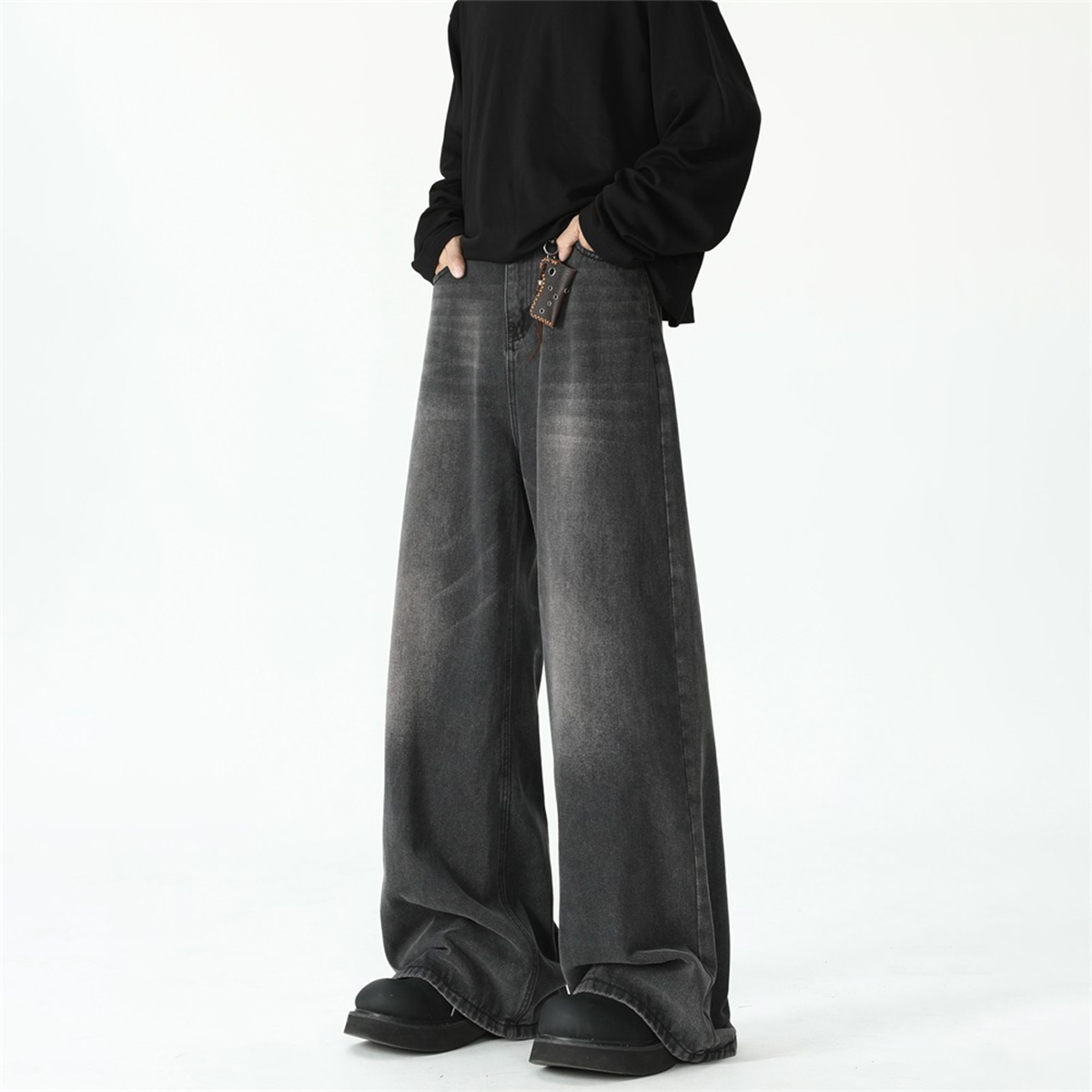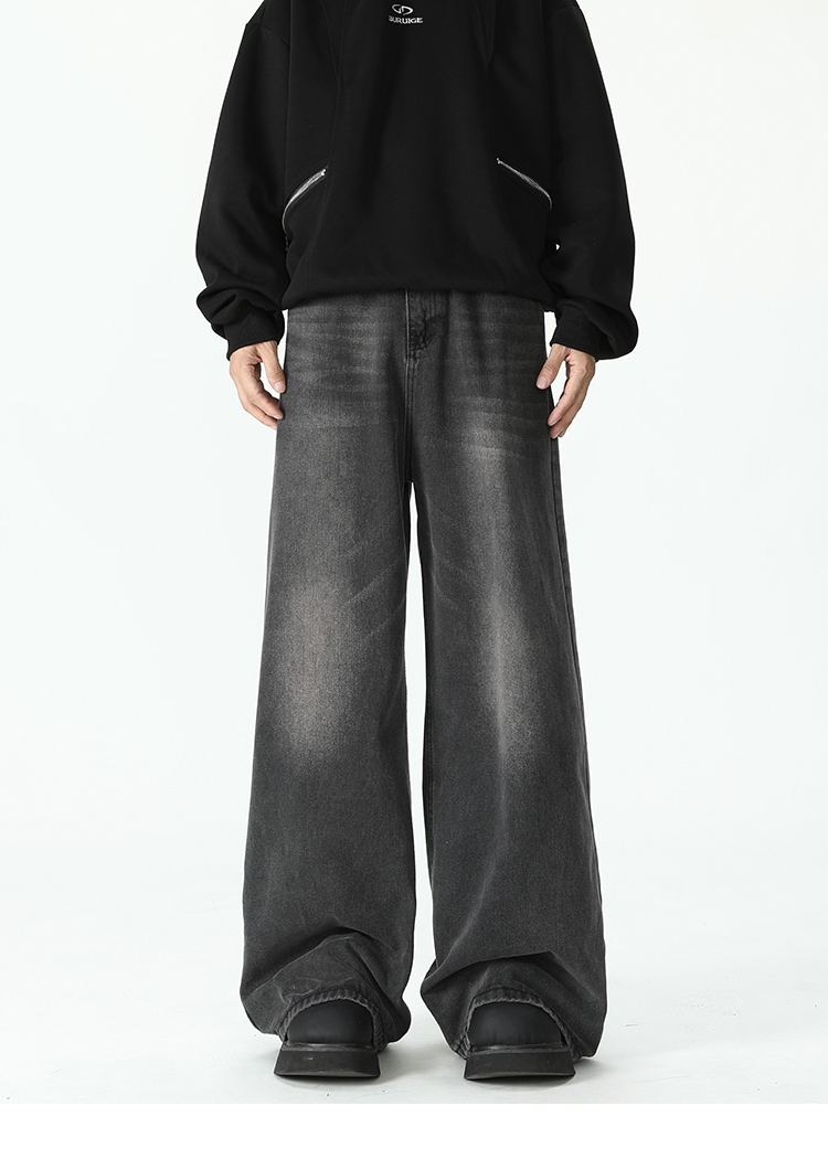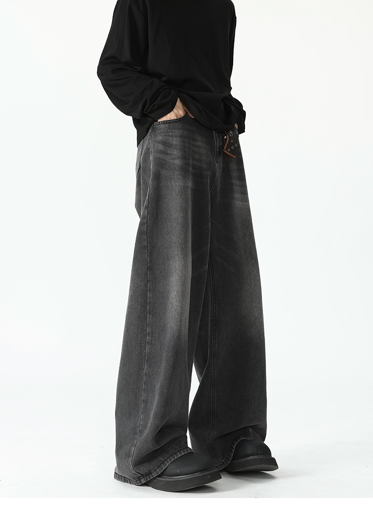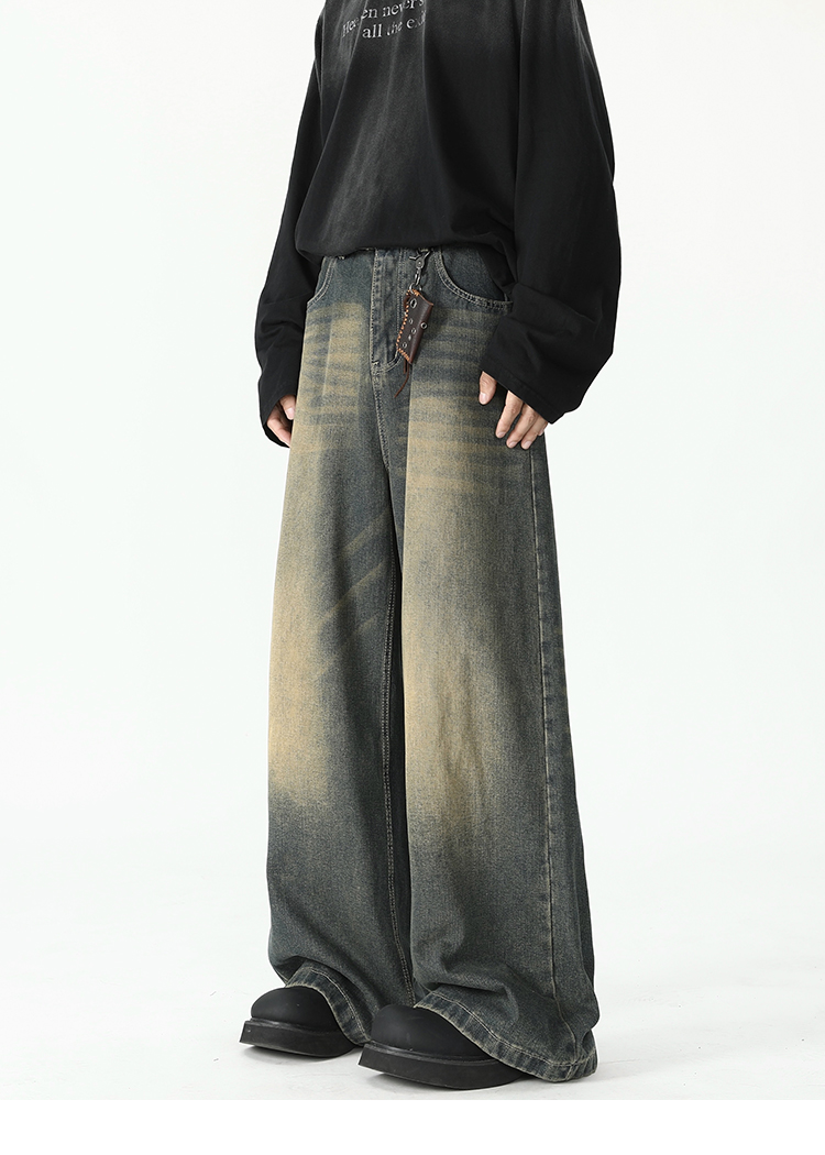 American Retro Flared Jeans for Men, New Trendy Brand, Loose Straight-Leg Cleanfit High Street Cool Wide-Leg Trousers