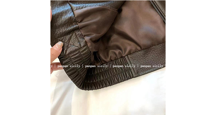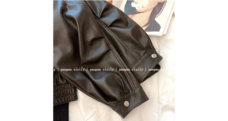 袖口双层皮料拼缝的,单颗金属按合扣系合