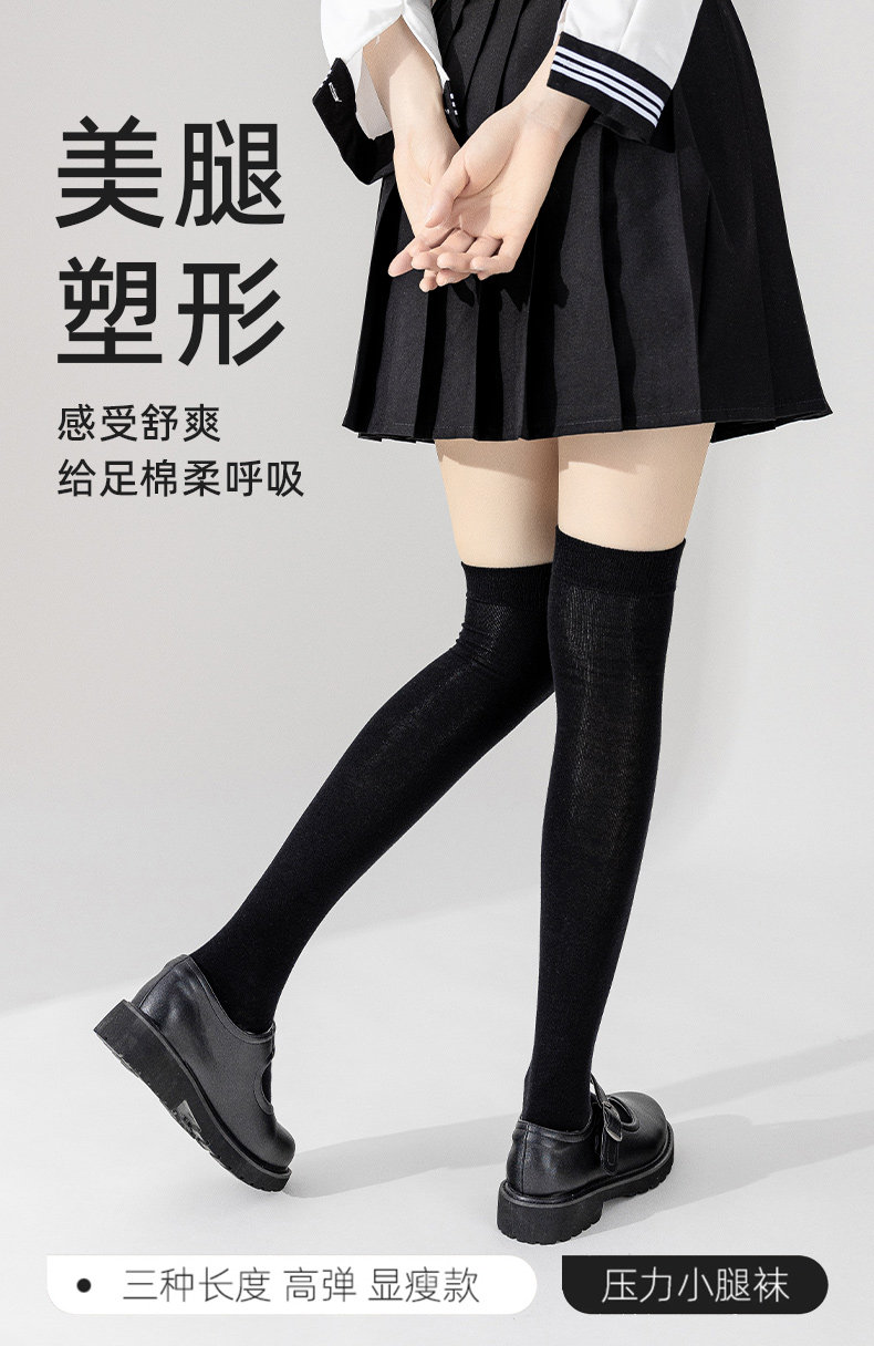 Cat-Themed Socks for Women, Spring and Autumn Style, Pressure Calf Socks, Slimming, Autumn Japanese Style Jk Black and White Over-The-Knee Long Half Socks
