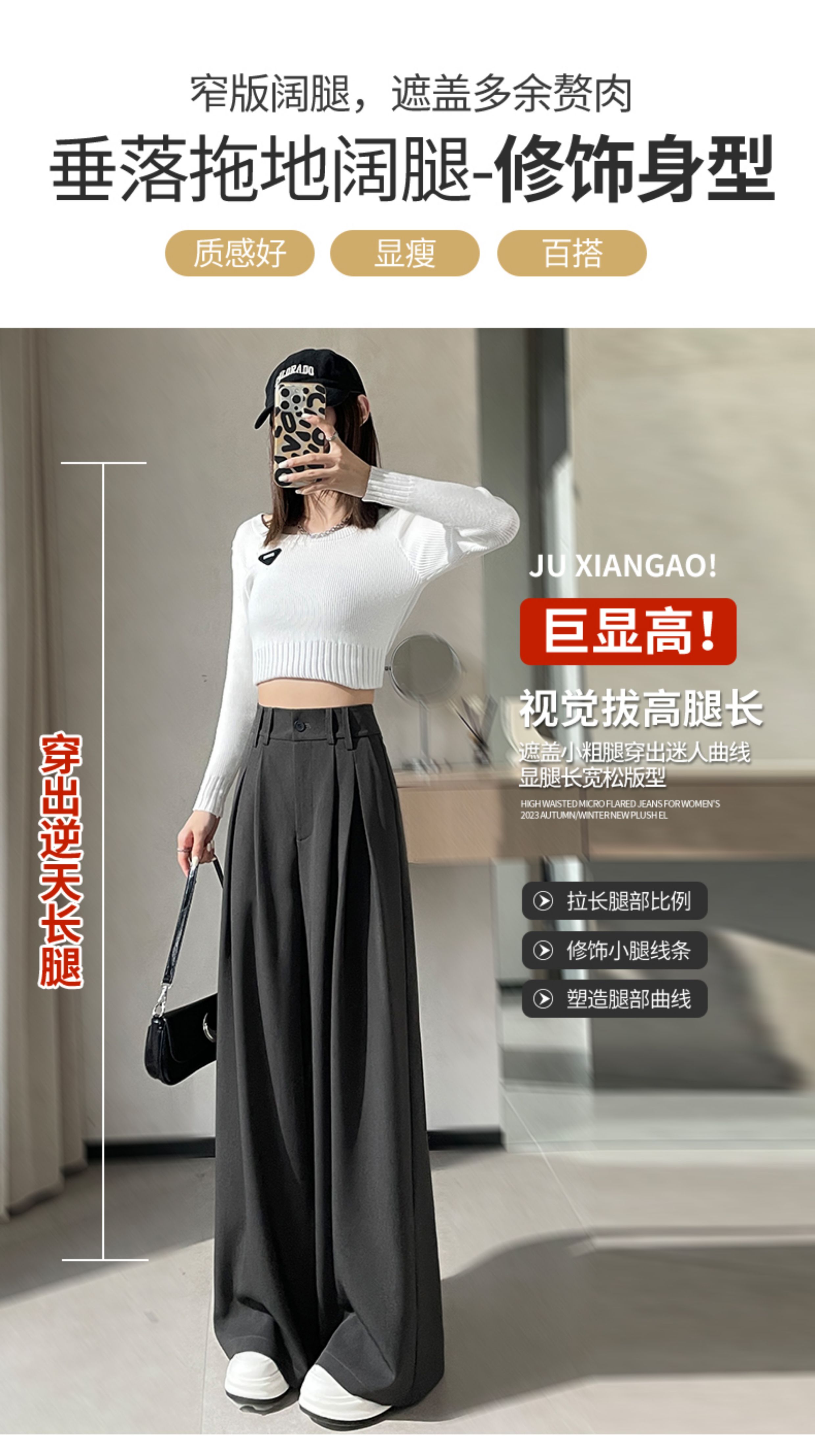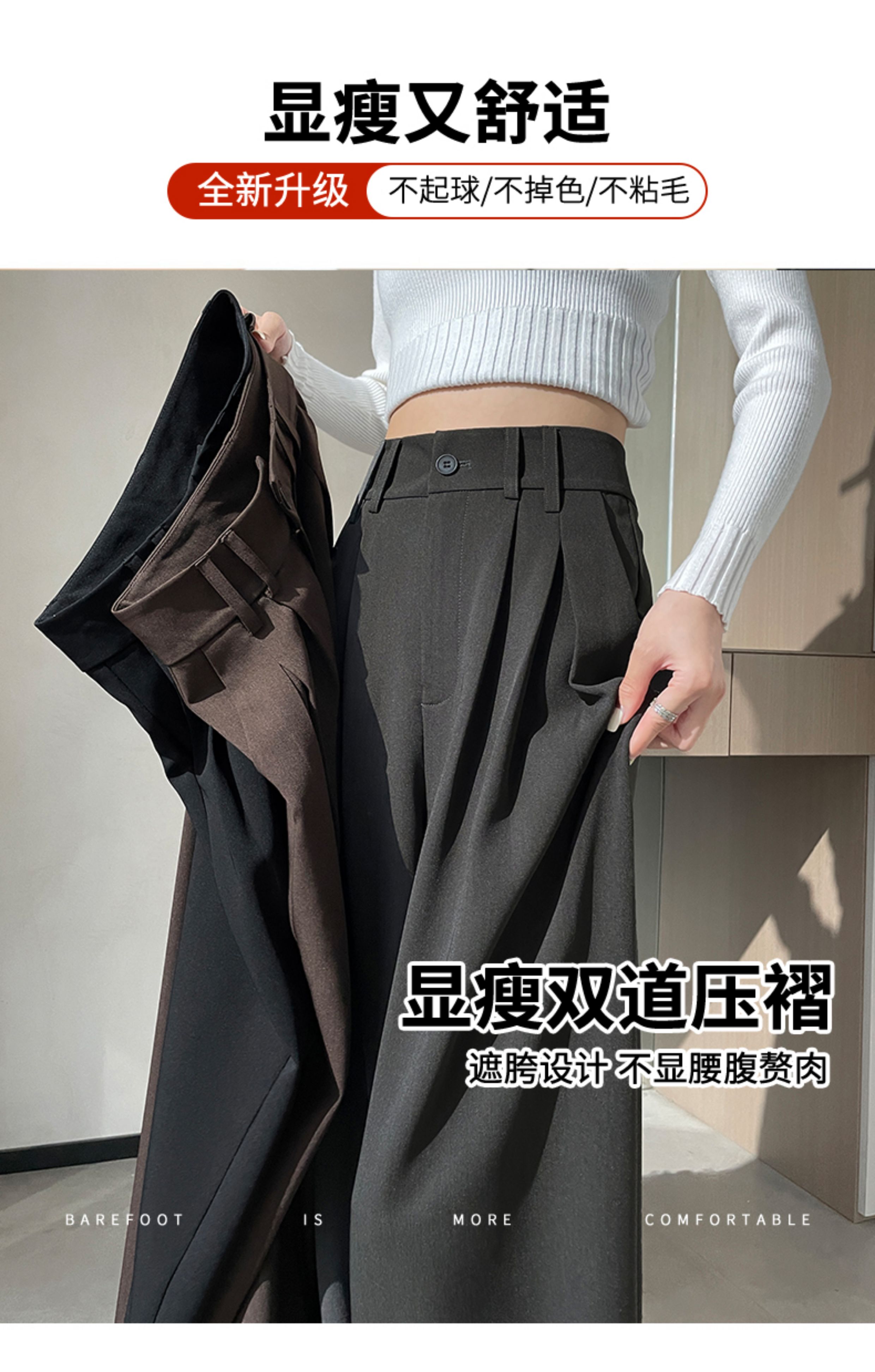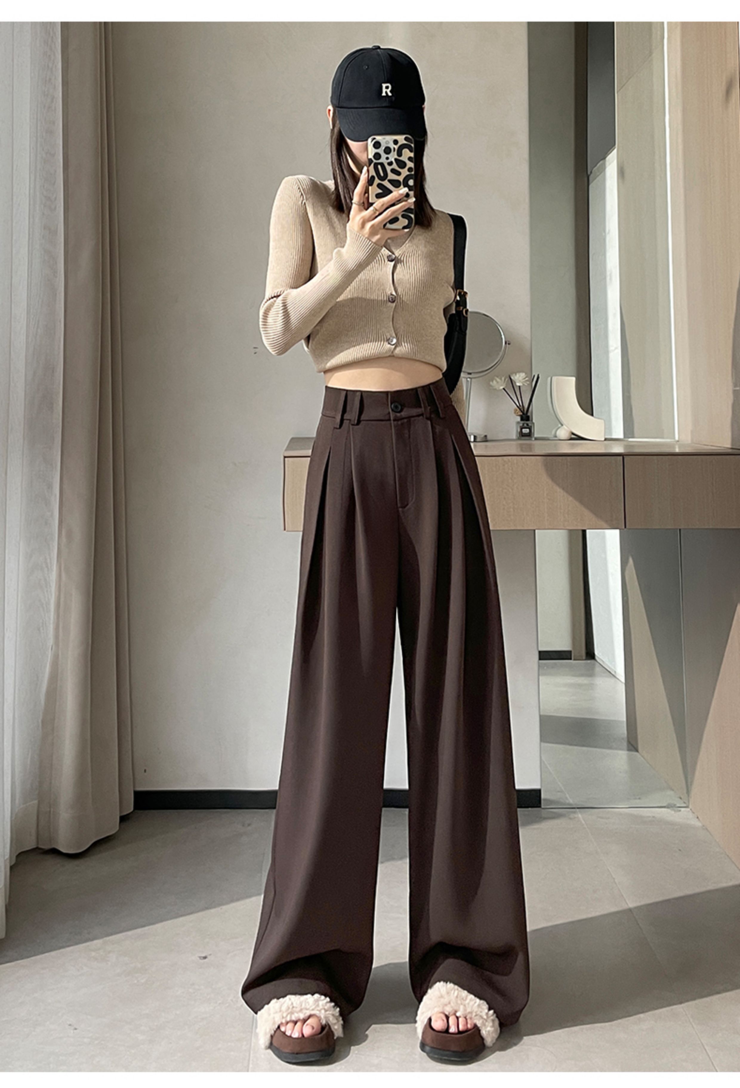 La Chapelle Black Suit Wide-Leg Pants for Women 2025 New Autumn and Winter Fleece-Lined Petite Loose Drape Straight-Leg Pants