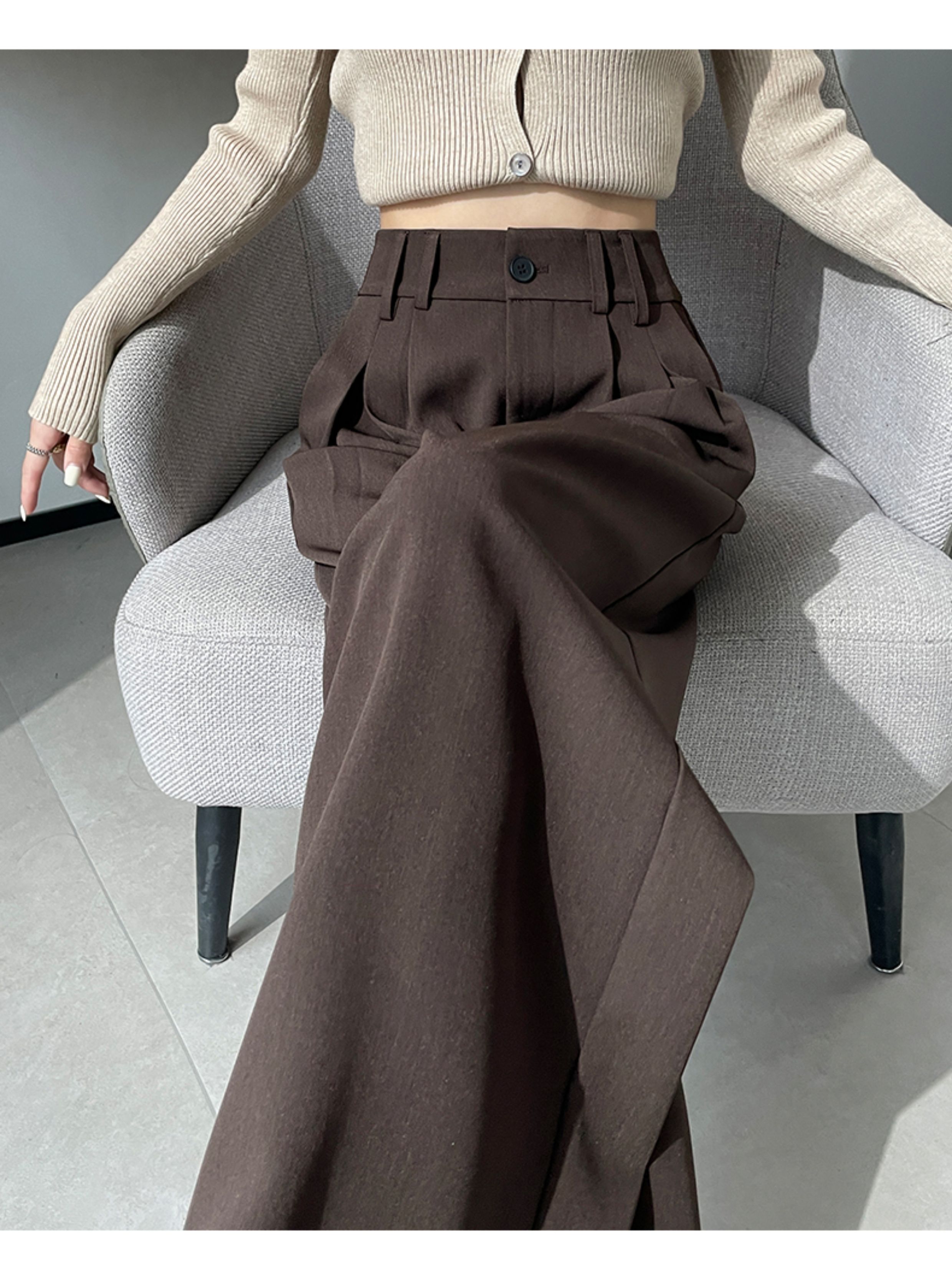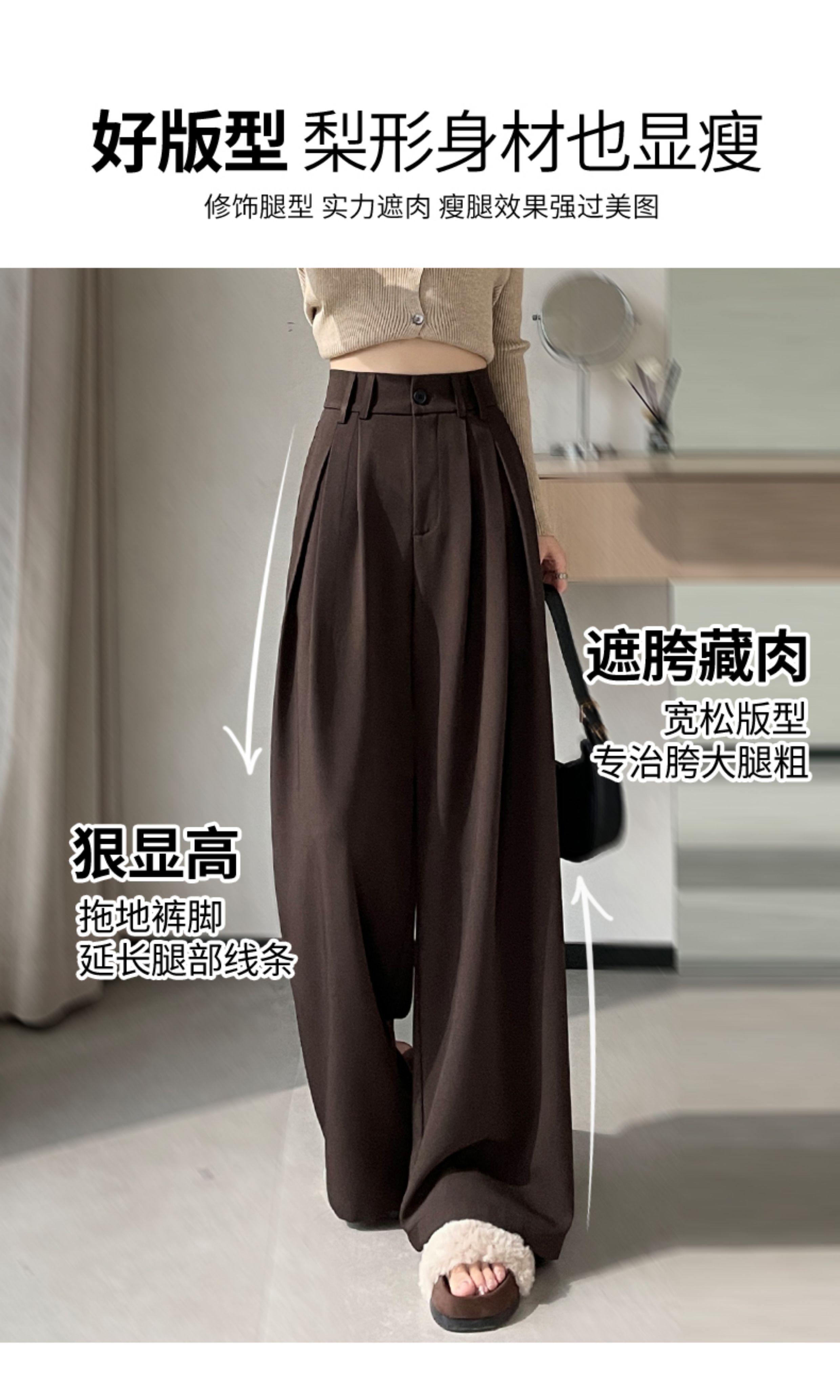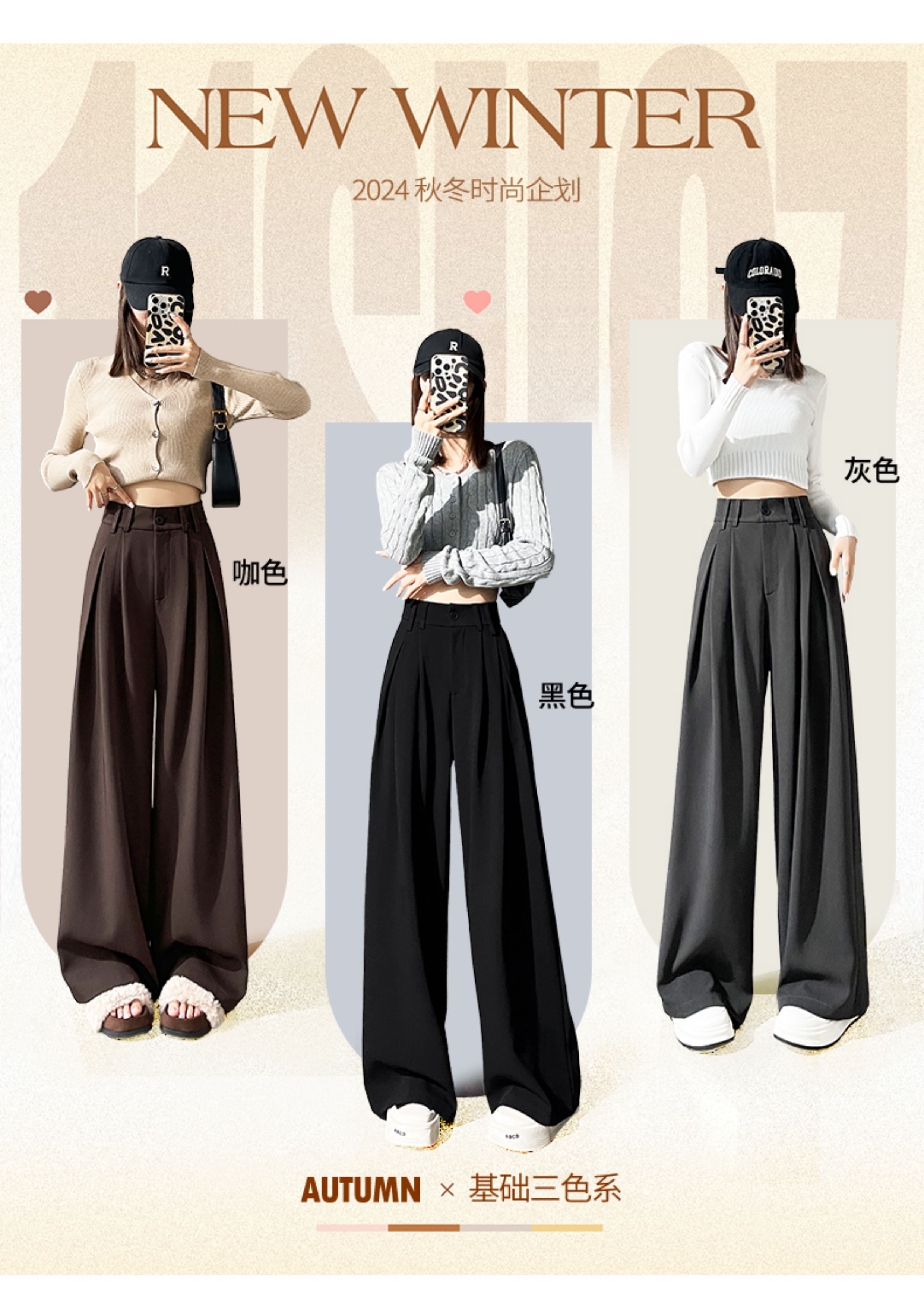 La Chapelle Black Suit Wide-Leg Pants for Women 2025 New Autumn and Winter Fleece-Lined Petite Loose Drape Straight-Leg Pants