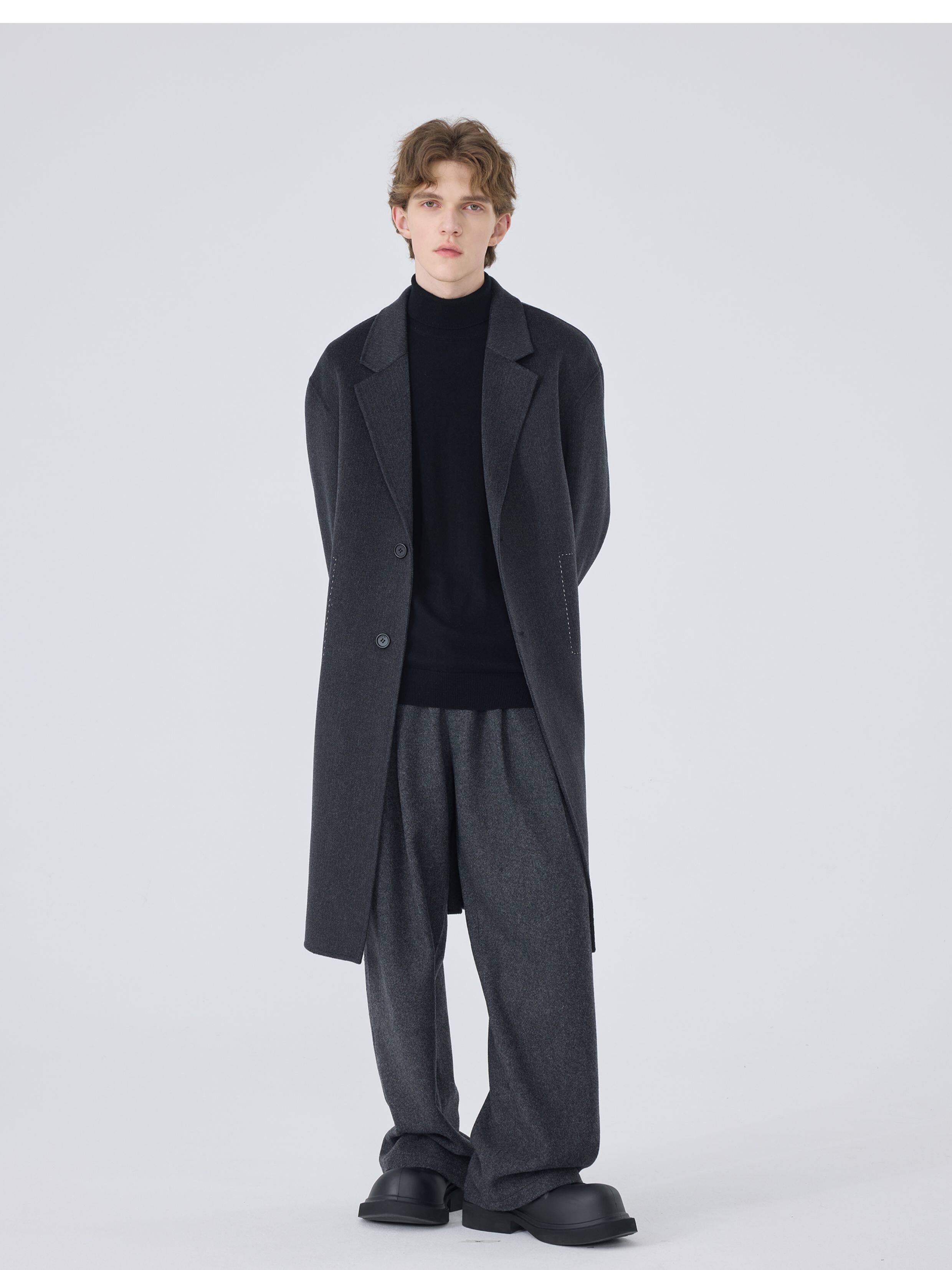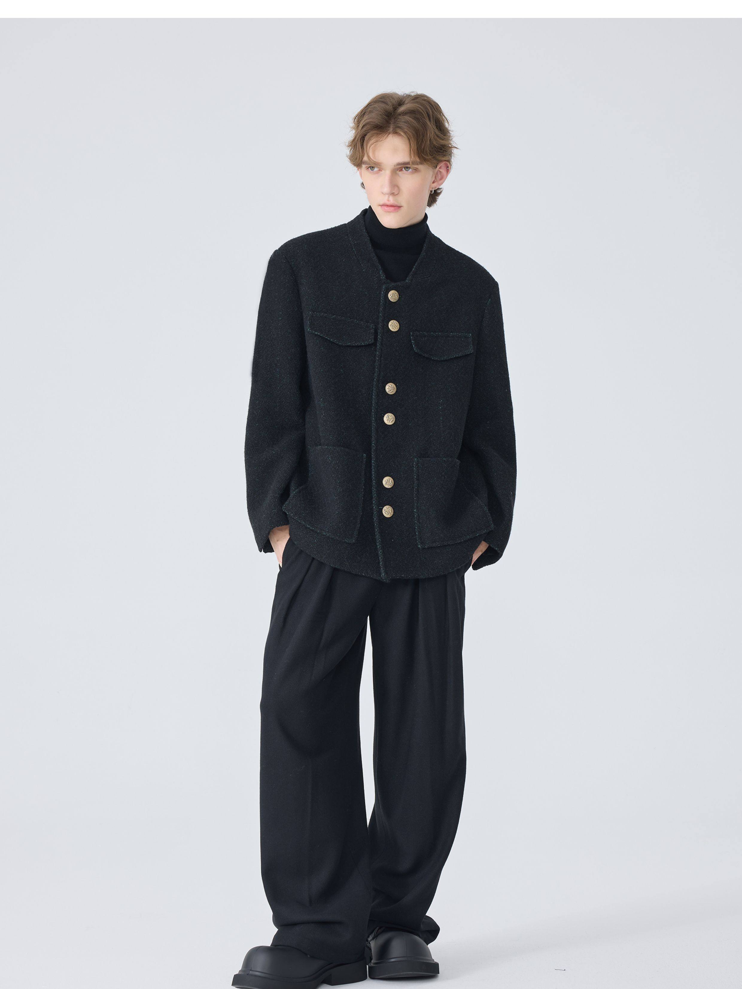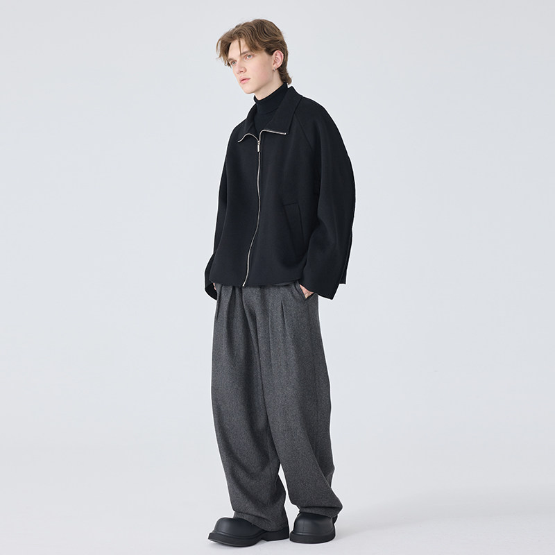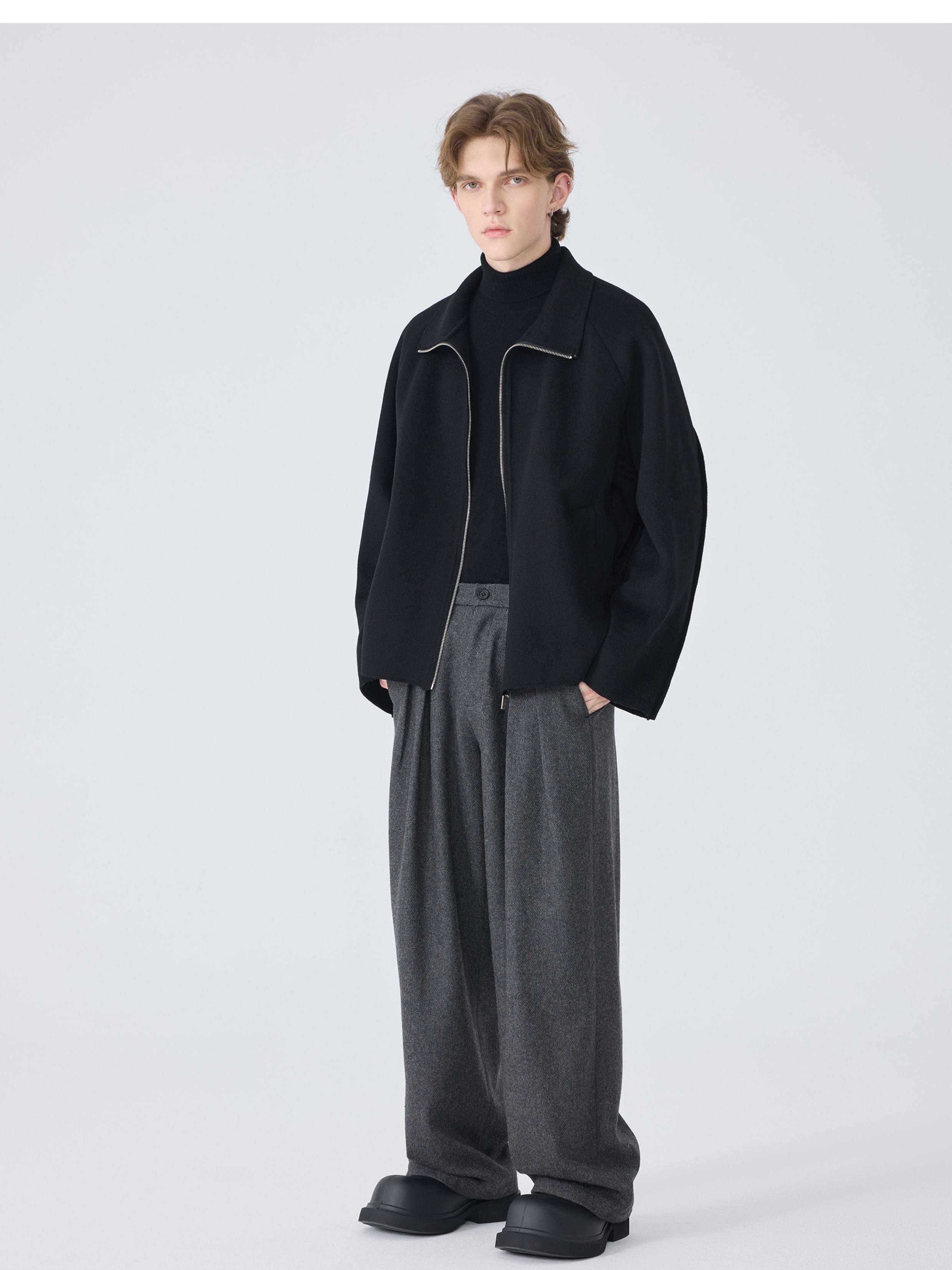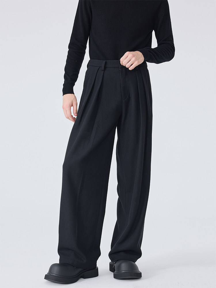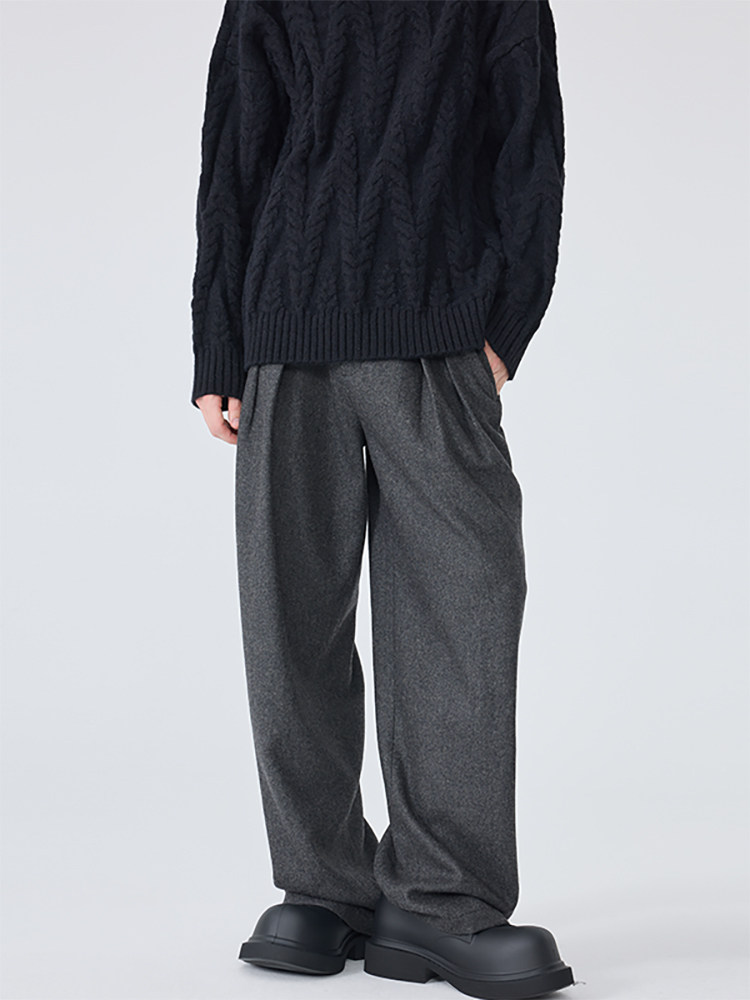 Autumn and Winter Casual Trousers for Men, Loose Straight-Leg Dress Pants, Gray Light Luxury Woolen Wide-Leg Suit Pants, Trendy Men's Fashion