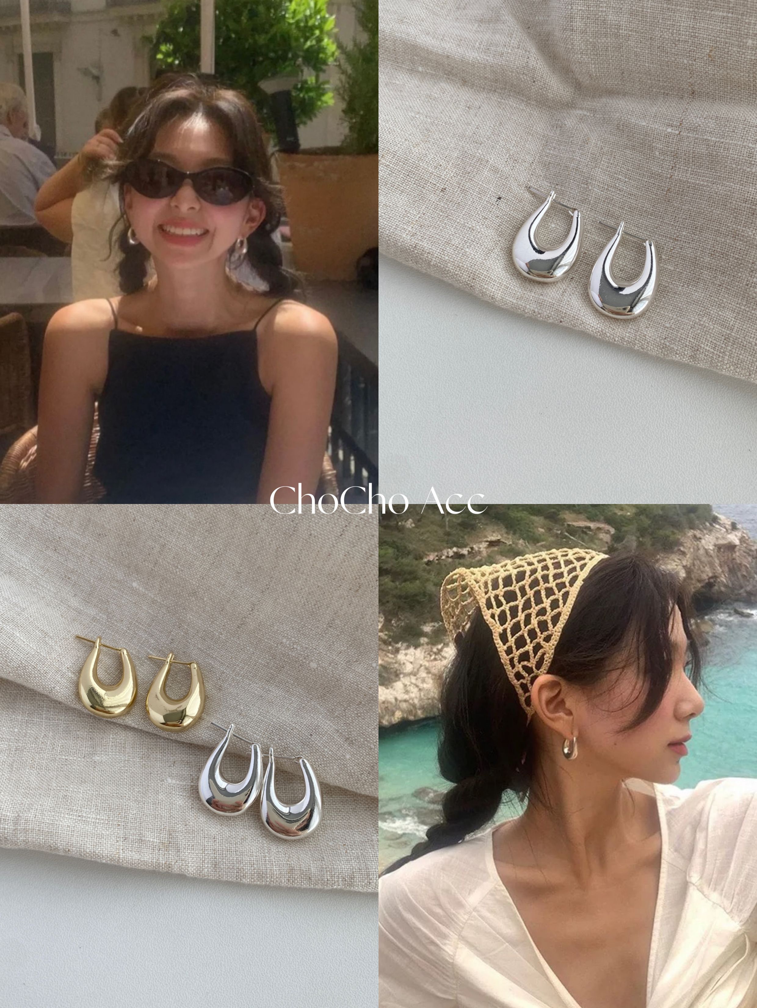 Chocho/Korean Blogger Fever's Same Style Geometric Water Drop Earrings, Niche Design, High-End Earrings