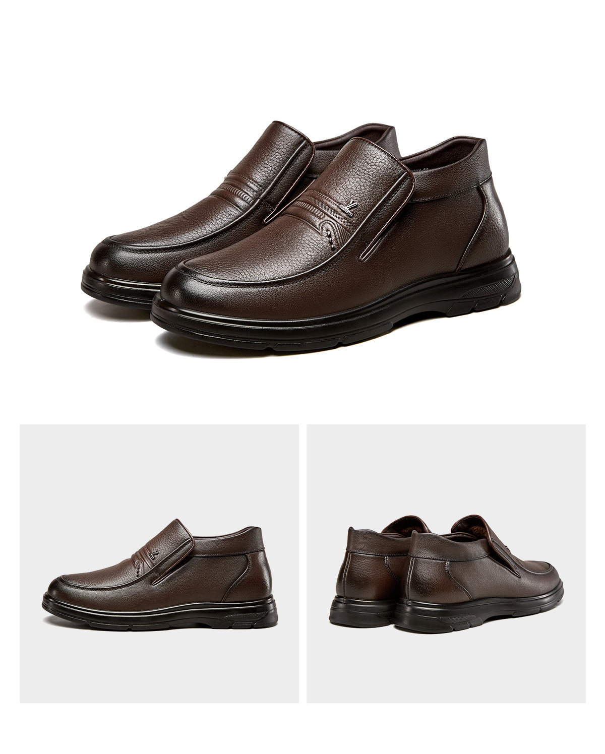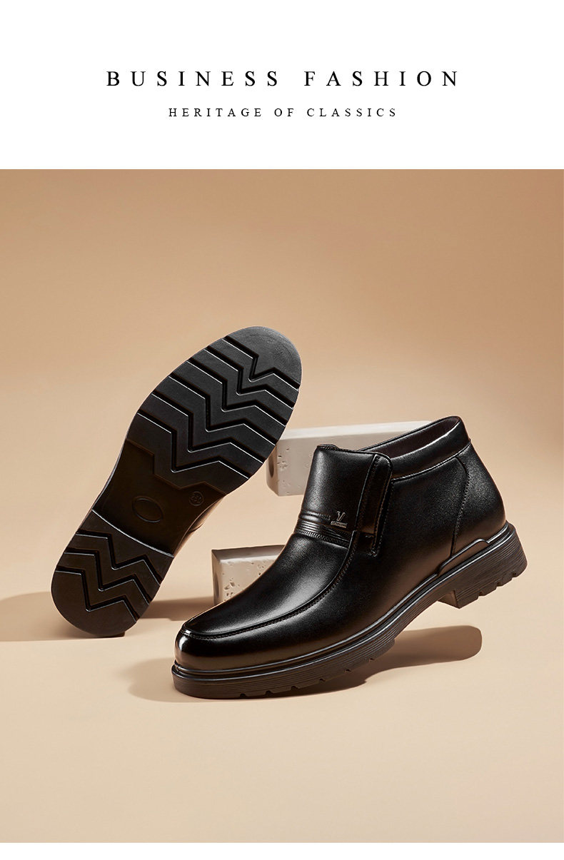 Yierkang Men's Shoes 2025 New Winter Genuine Leather Fleece-Lined Warm Men's High-Top Leather Shoes for Middle-Aged and Elderly Dads