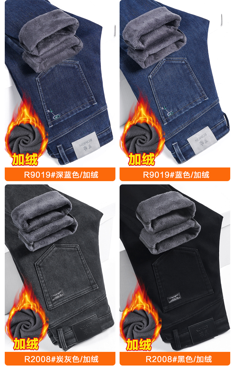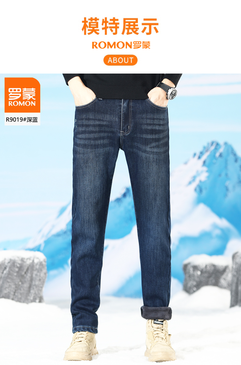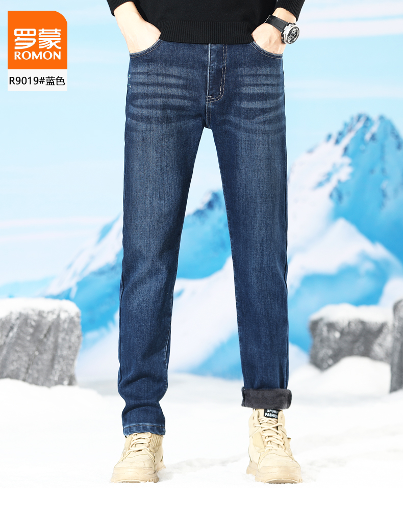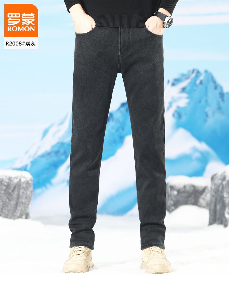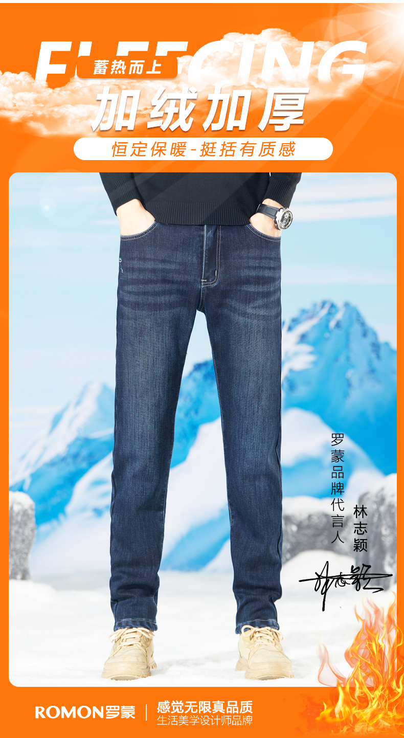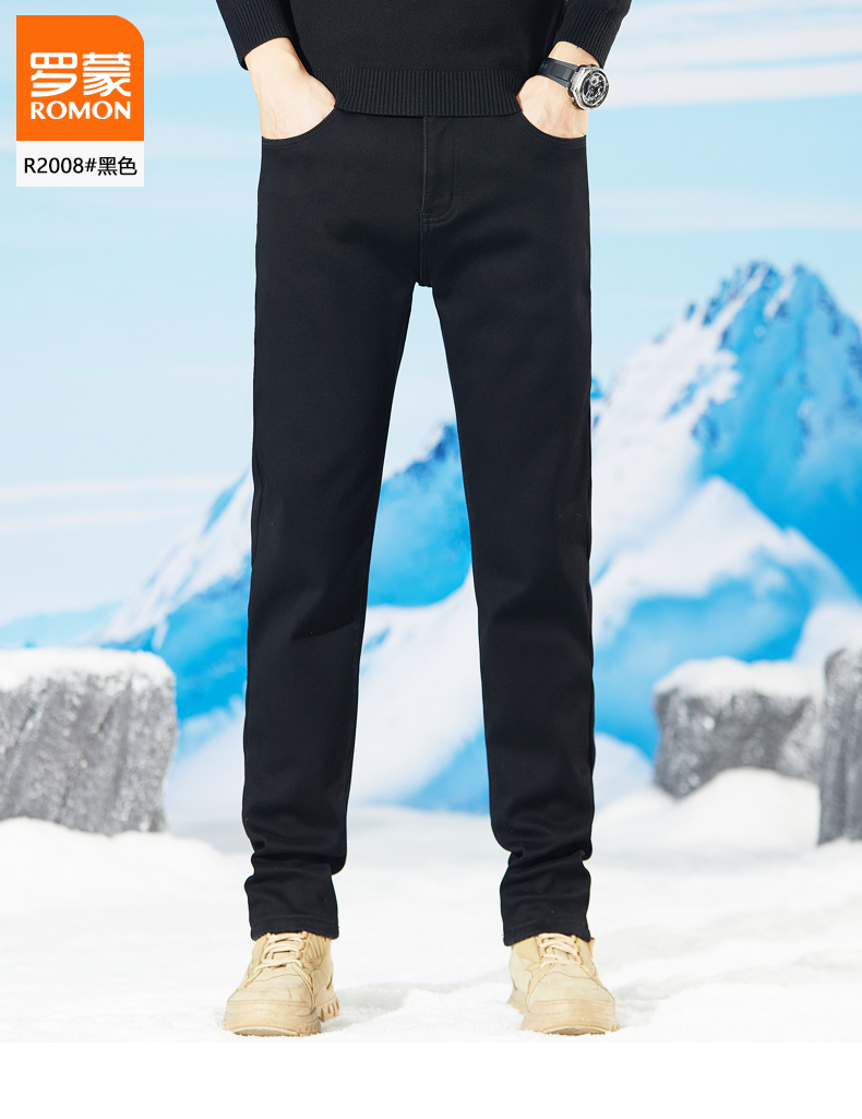 Romon Fleece-Lined Thickened Jeans for Men, Autumn and Winter Thick Stretchy Slim Straight-Leg Men's Pants, 2025 New Warm Long Pants