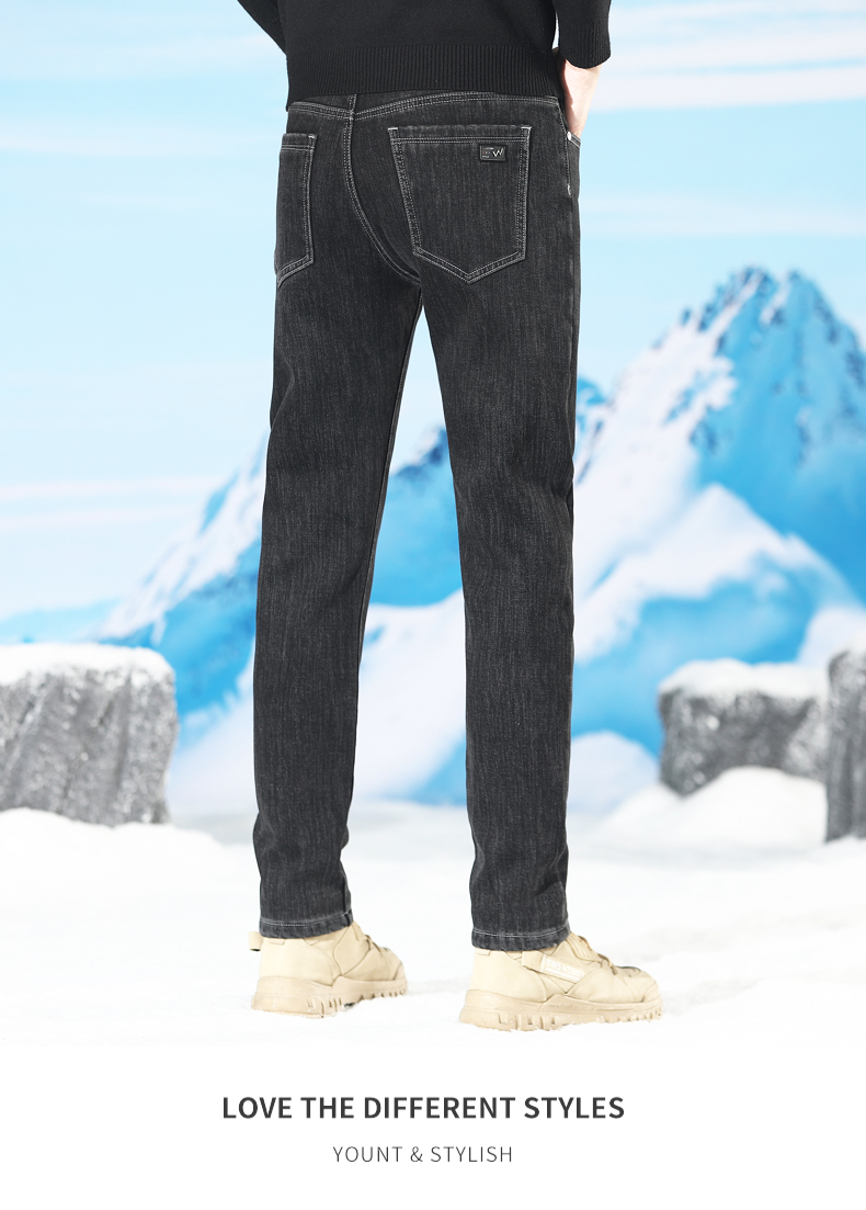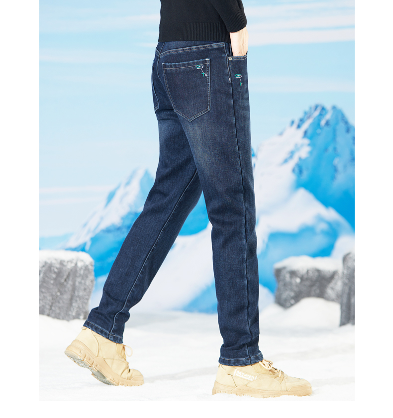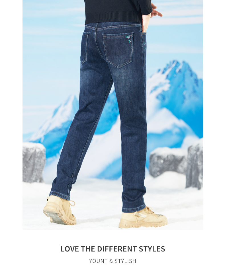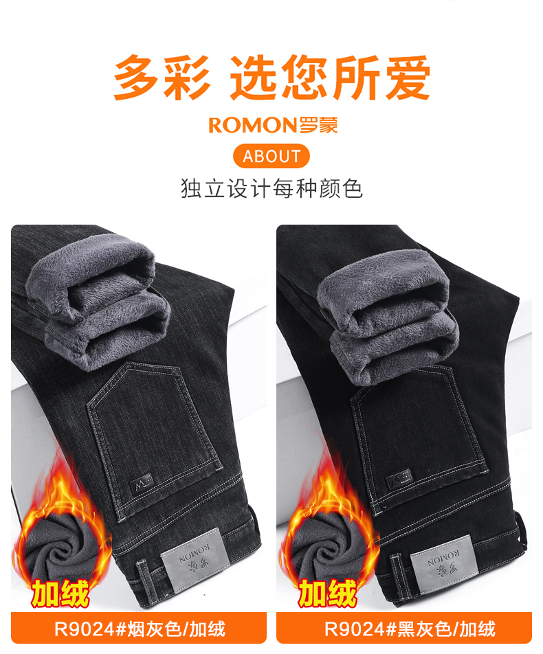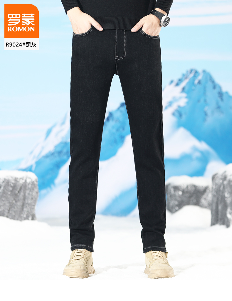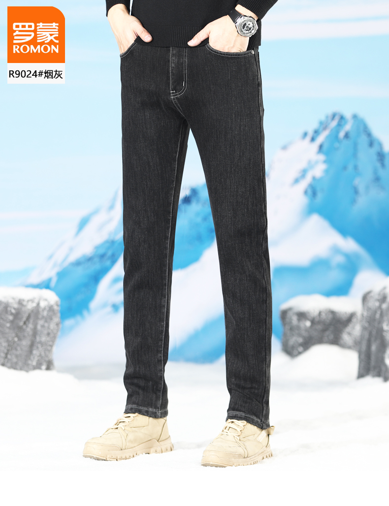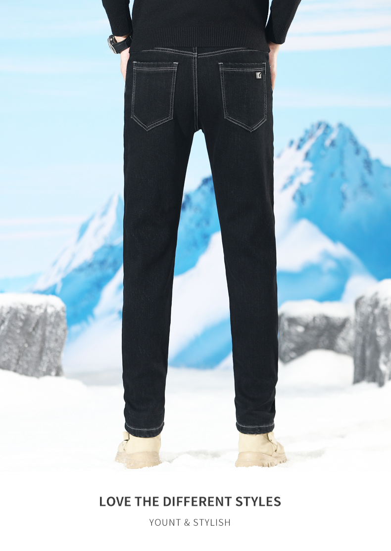 Romon Fleece-Lined Thickened Jeans for Men, Autumn and Winter Thick Stretchy Slim Straight-Leg Men's Pants, 2025 New Warm Long Pants