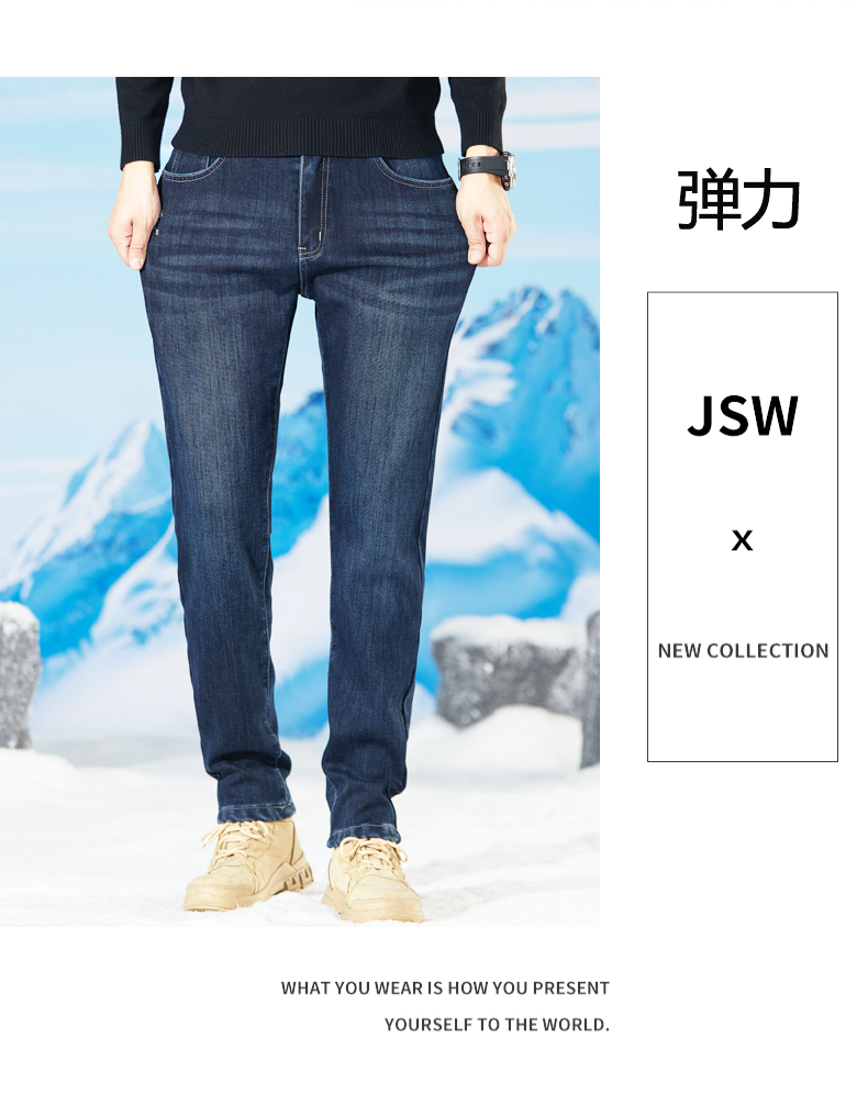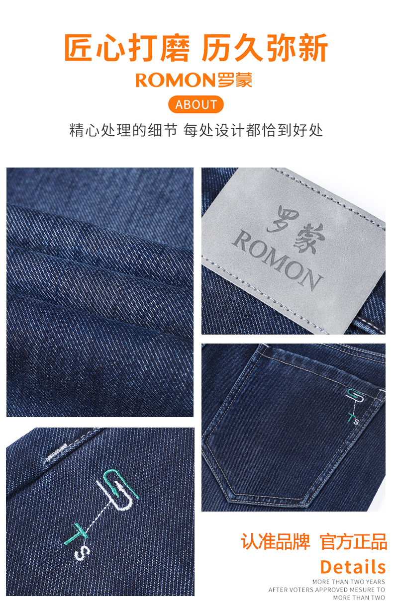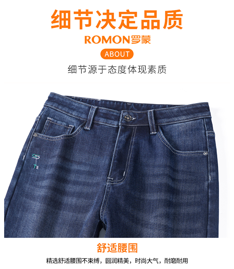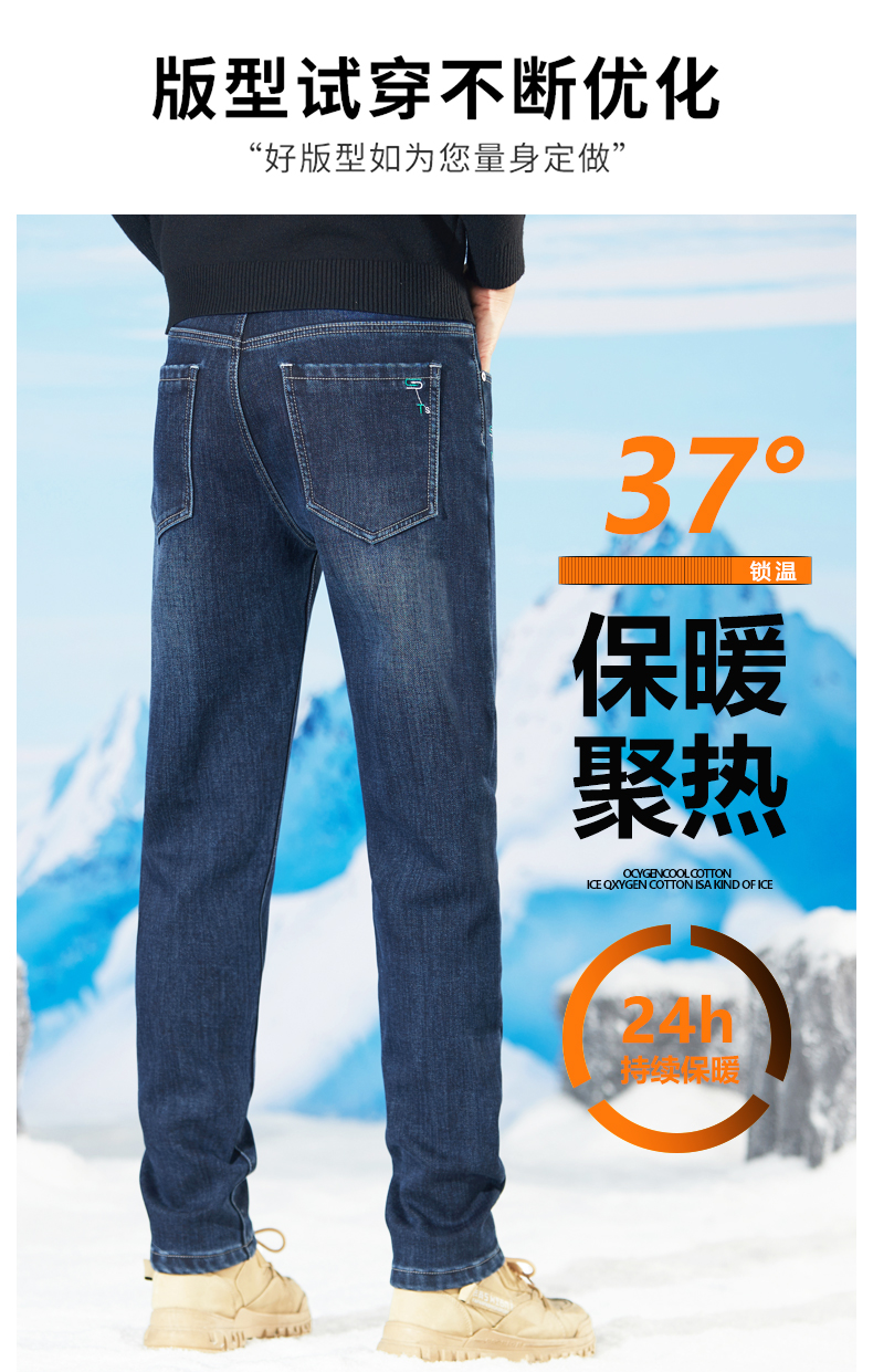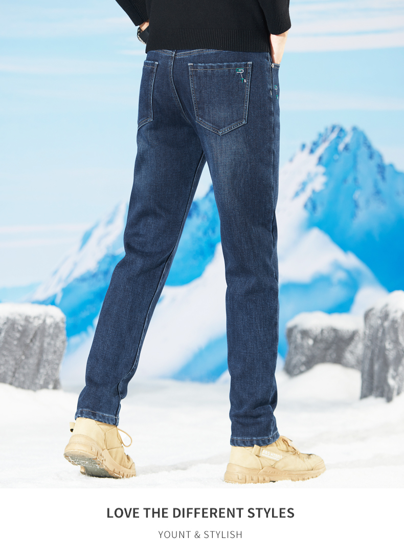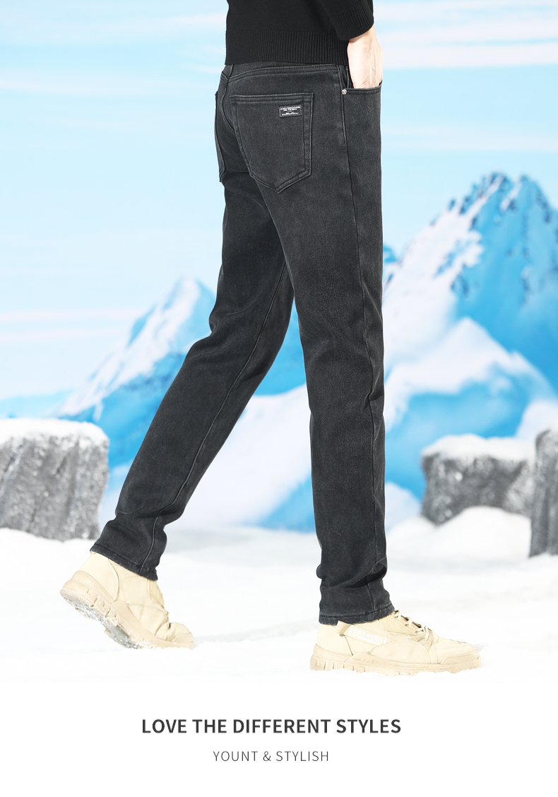 Romon Fleece-Lined Thickened Jeans for Men, Autumn and Winter Thick Stretchy Slim Straight-Leg Men's Pants, 2025 New Warm Long Pants
