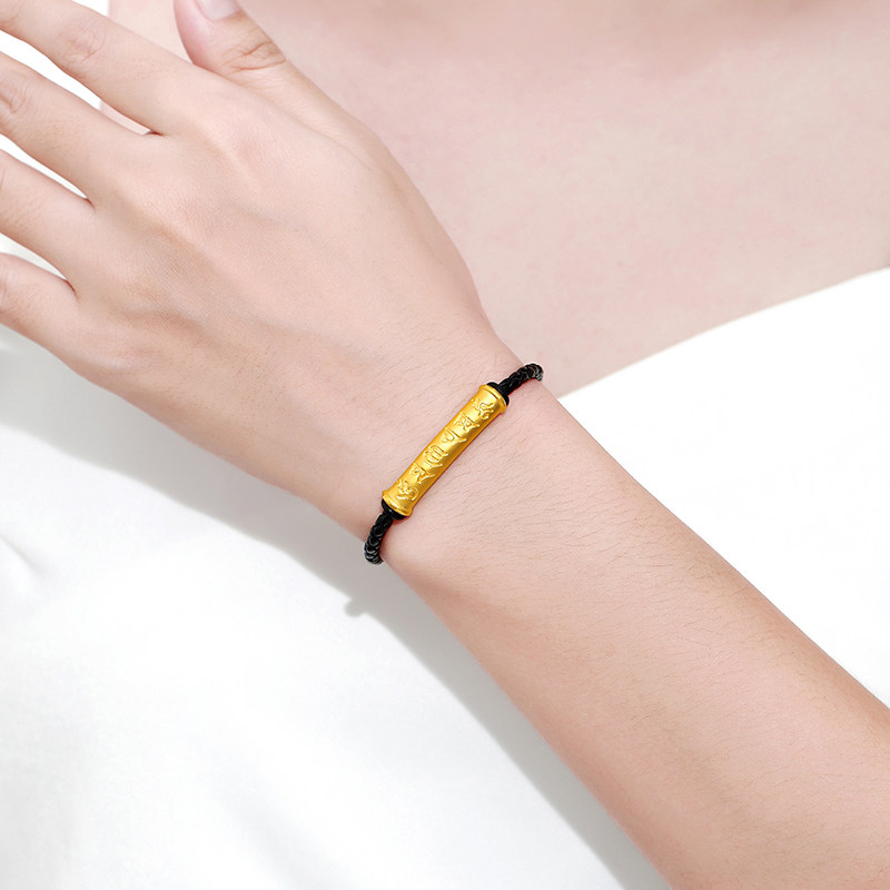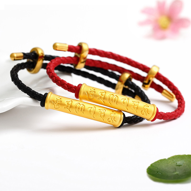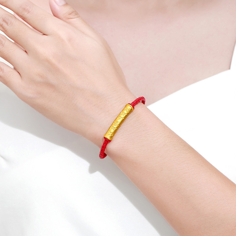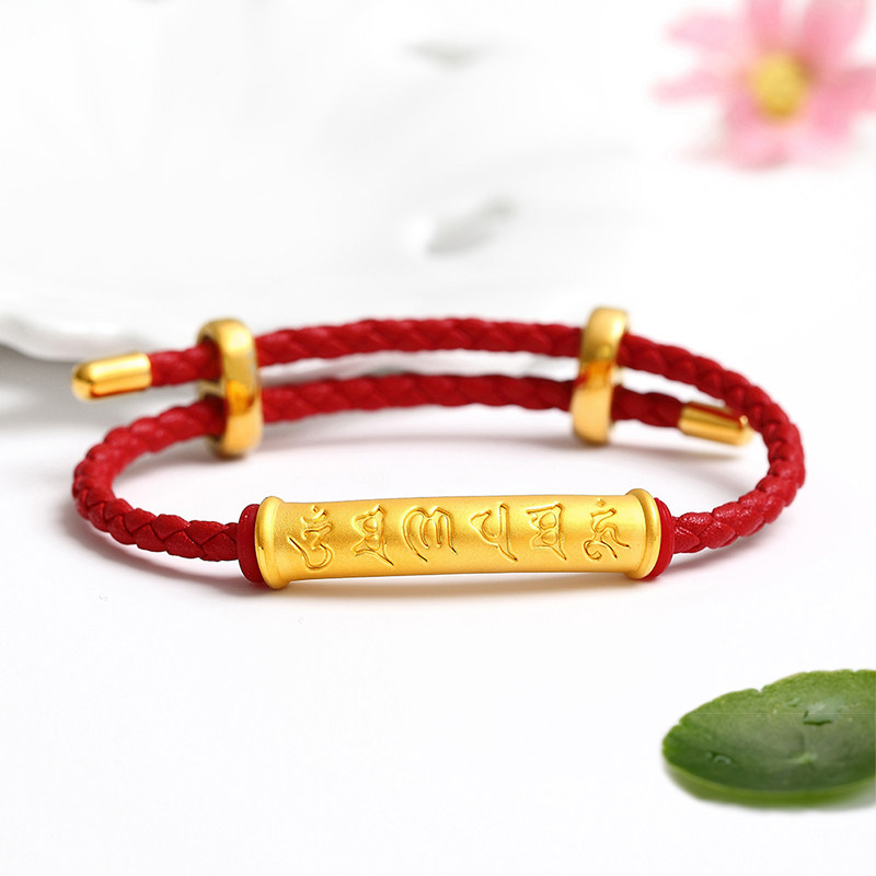Gold Six-Character Mantra Tube Bracelet, Pure Gold 999 Six-Character Mantra Curved Tube Bracelet, Red String Bracelet for the Year of Birth