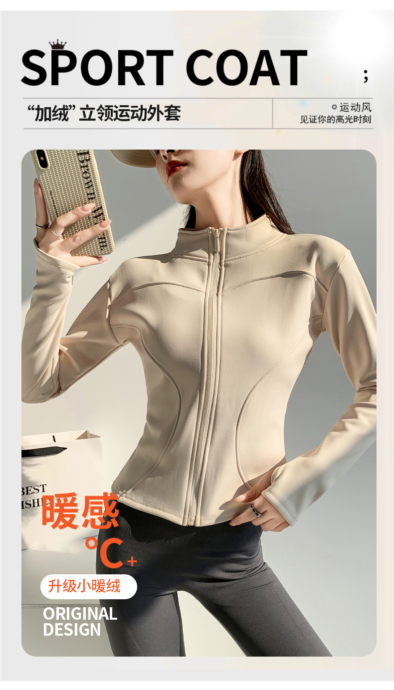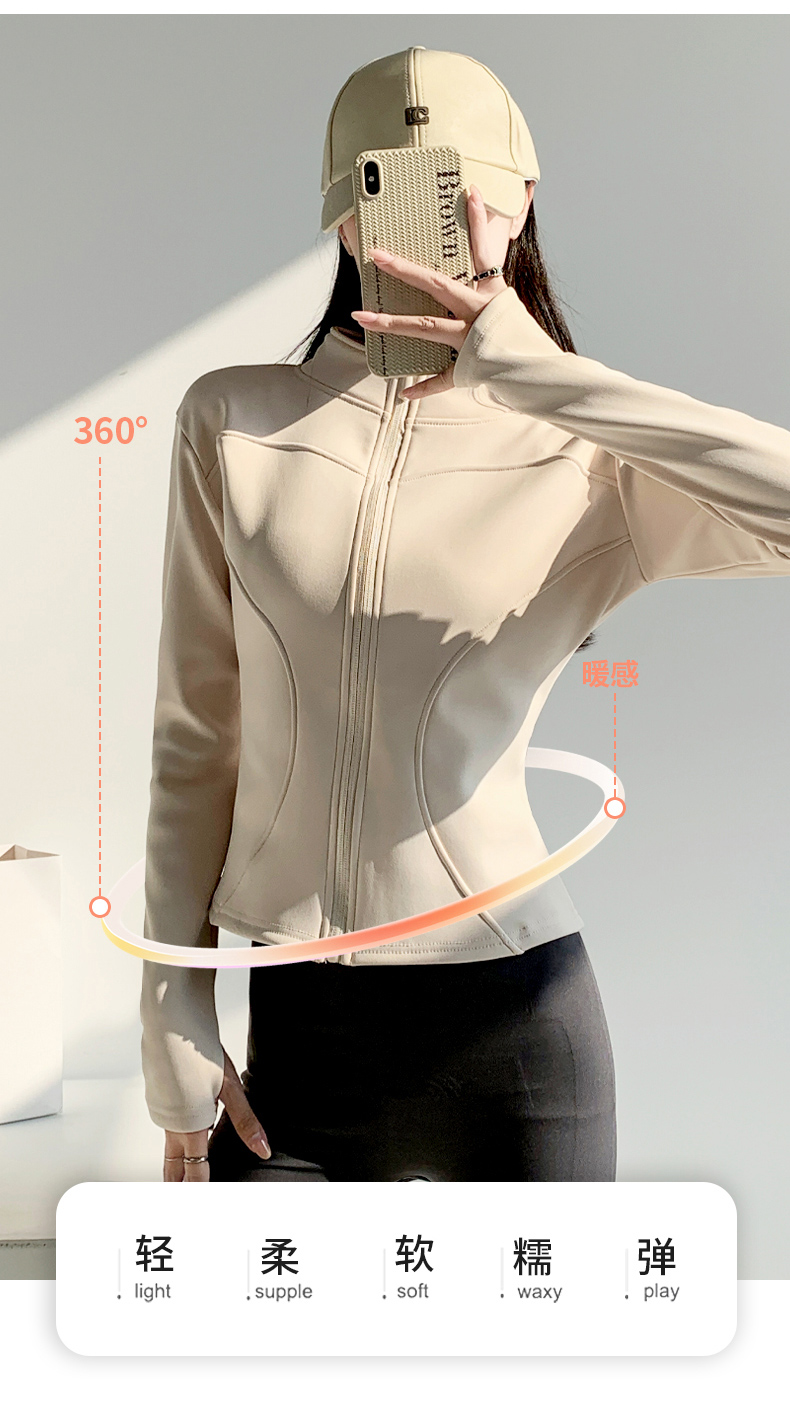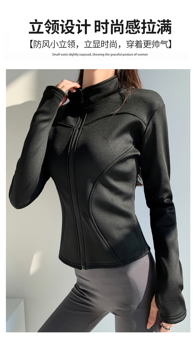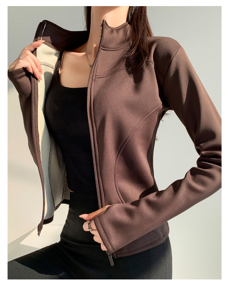 Fleece-Lined and Thickened Yoga Clothes for Women, Autumn and Winter 2024 New Slim-Fit Stand-Up Collar Sports Jacket, Long-Sleeved Zipper Warm Top
