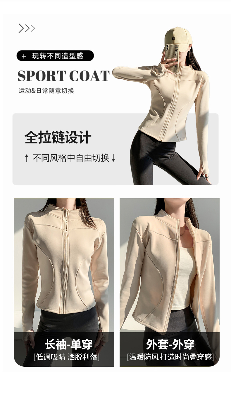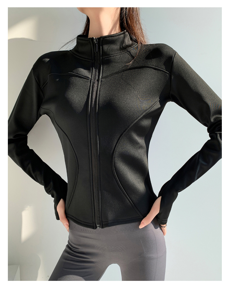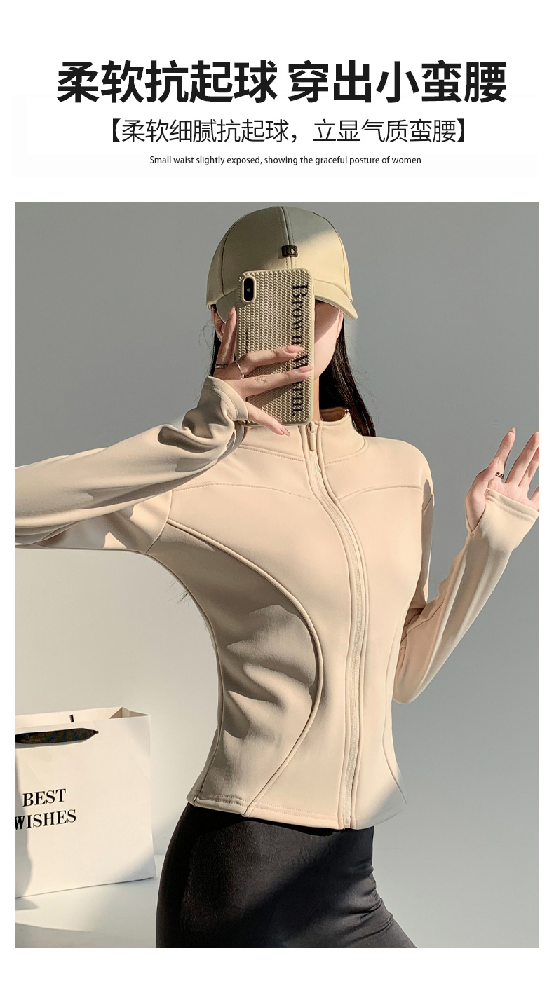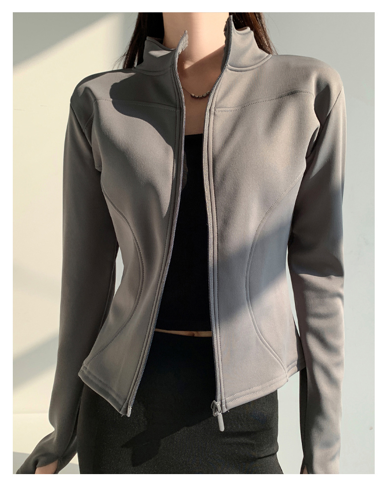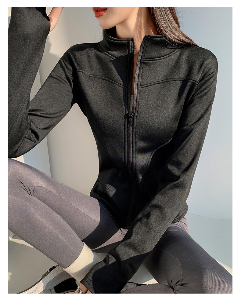 Fleece-Lined and Thickened Yoga Clothes for Women, Autumn and Winter 2024 New Slim-Fit Stand-Up Collar Sports Jacket, Long-Sleeved Zipper Warm Top