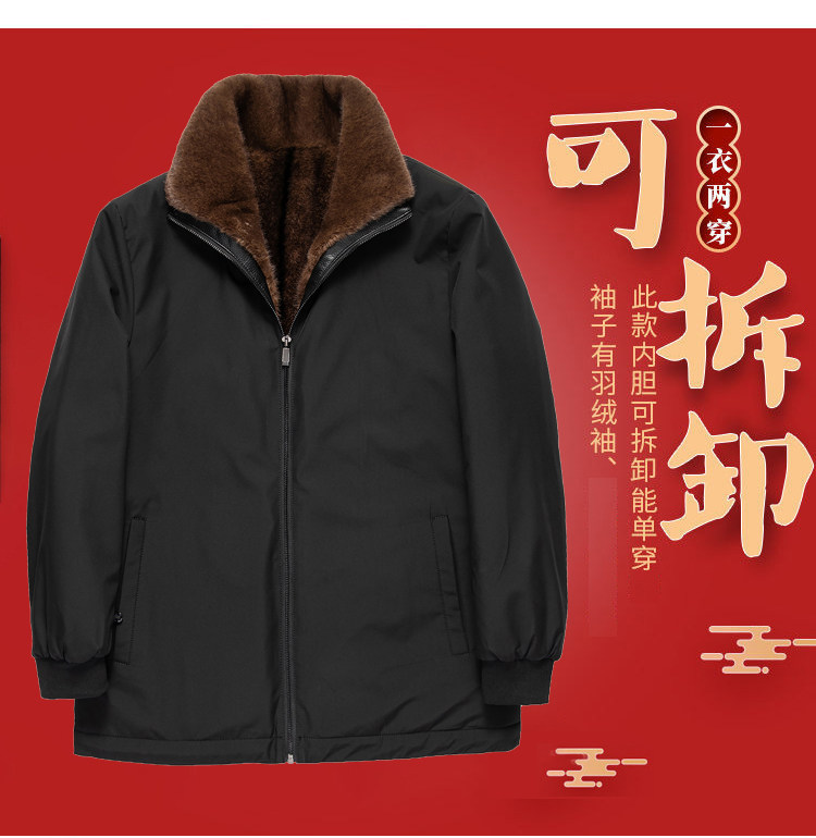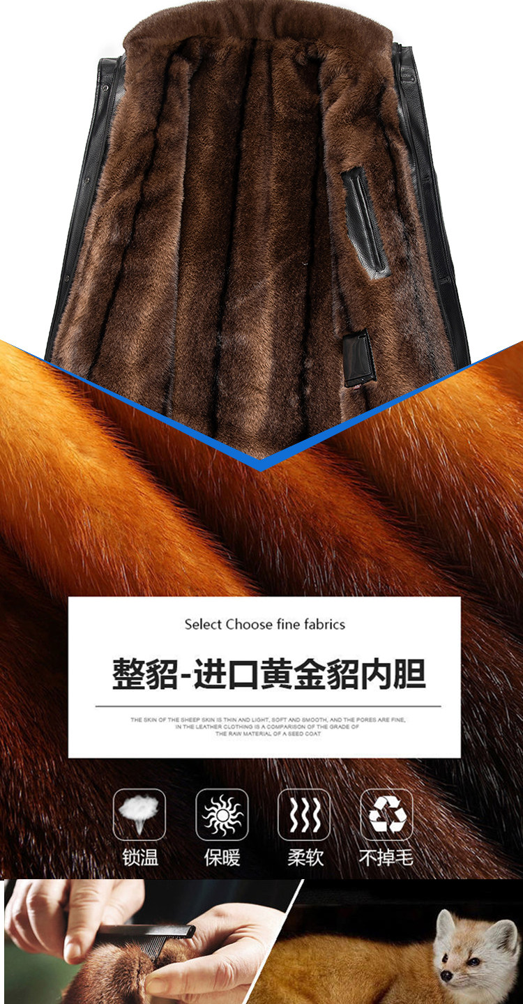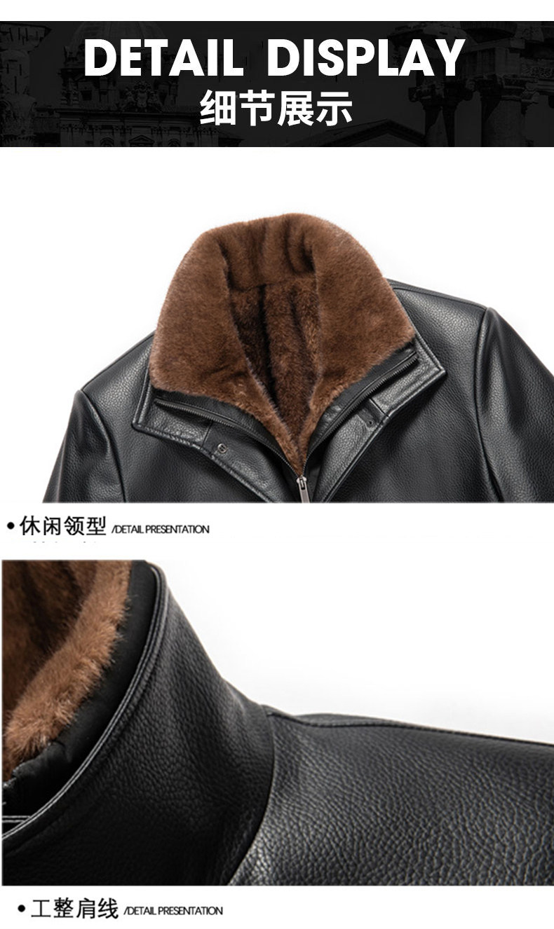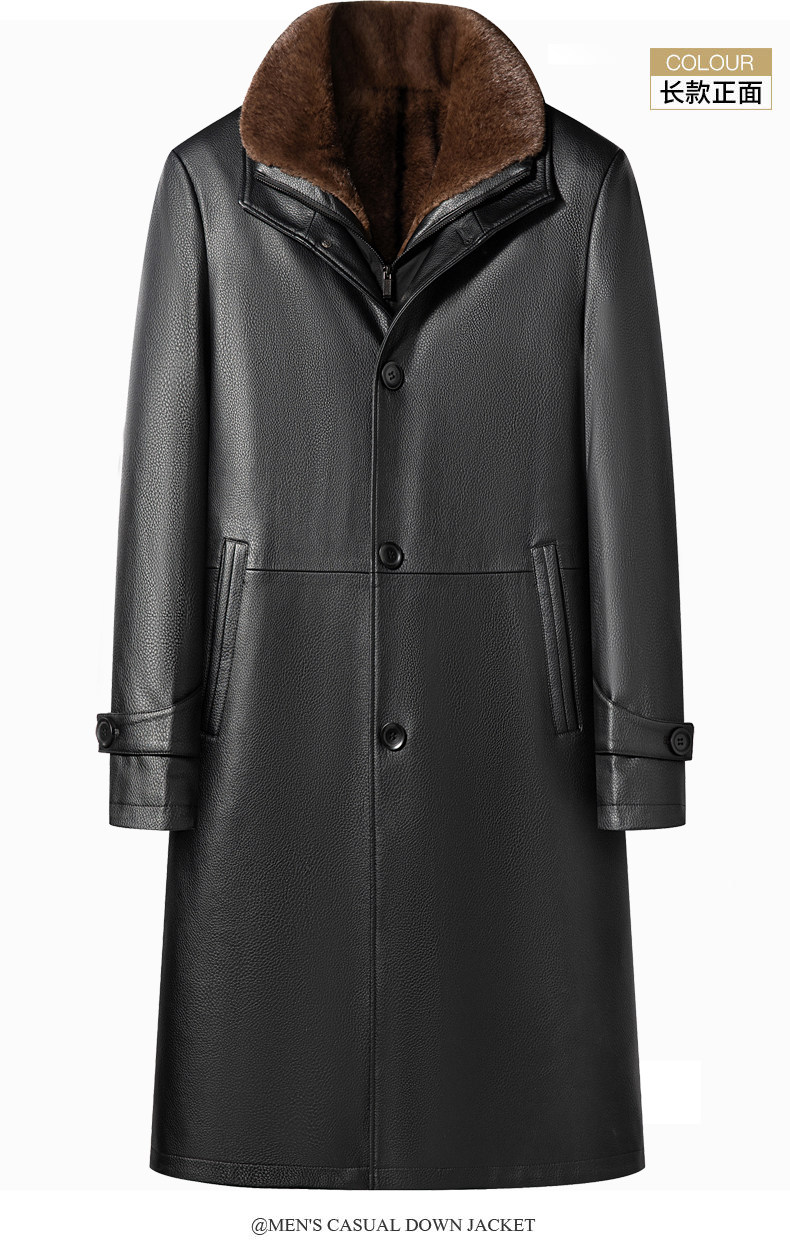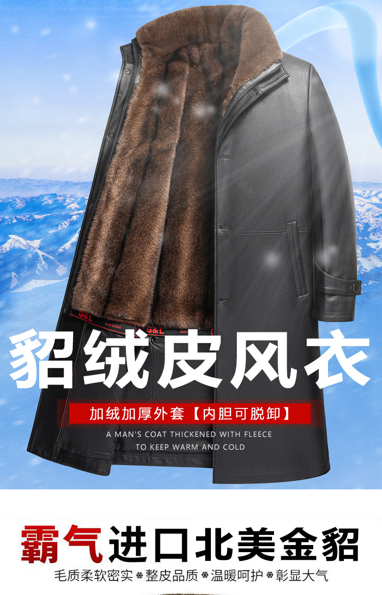 Winter Haining Genuine Leather Jacket for Men, Leather Trench Coat, Mink Fur Coat, Deerskin Leather, Middle-Aged and Elderly Fur-Lined, Thickened, Dad's Style